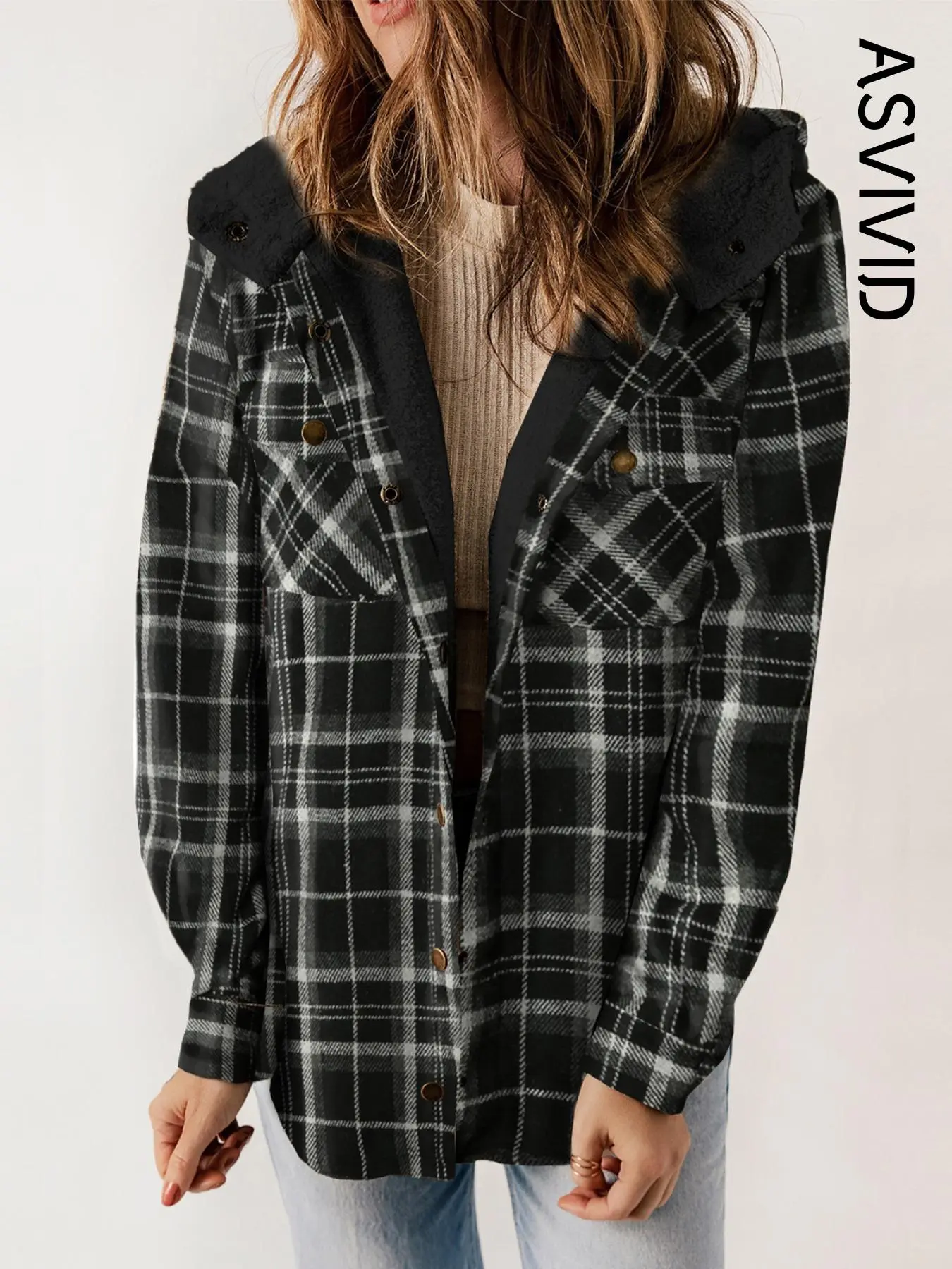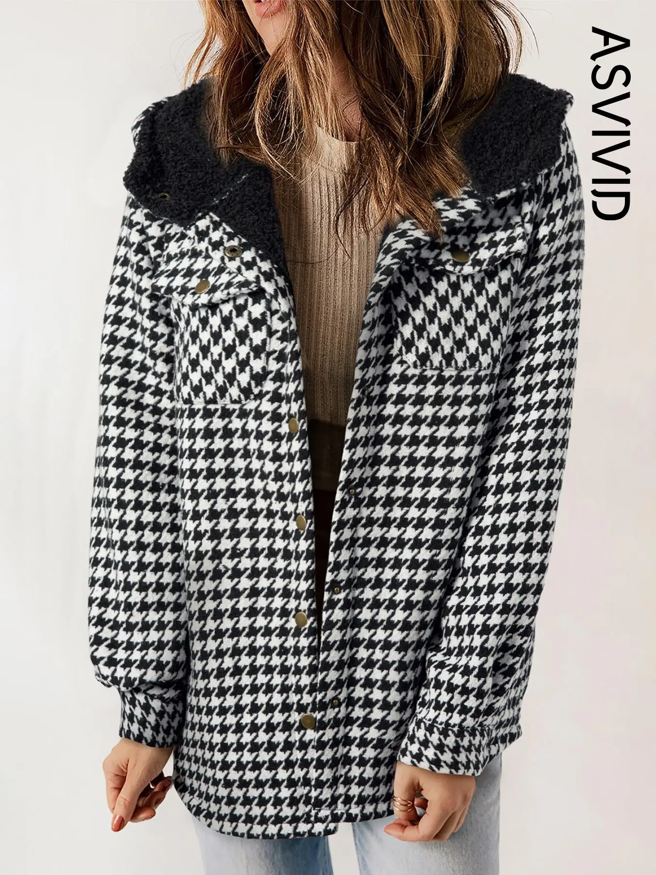 Stay stylish and cosy throughout the colder seasons with this classic hooded coat. Designed in a timeless plaid or houndstooth print, it brings a sophisticated touch to your everyday wardrobe.