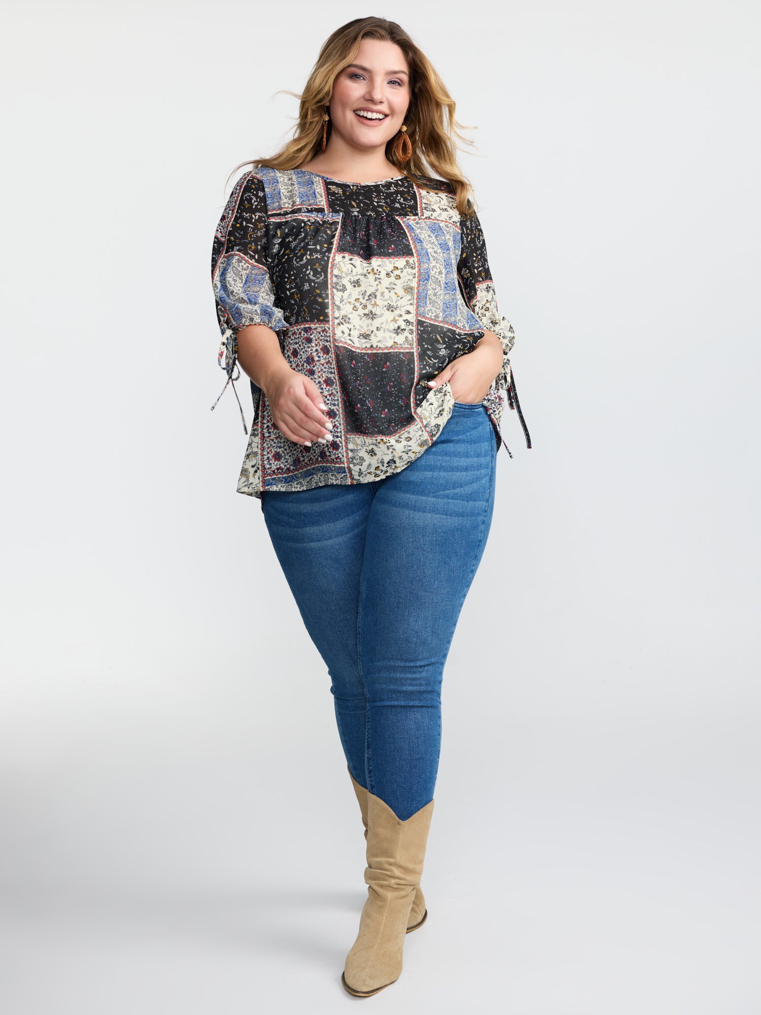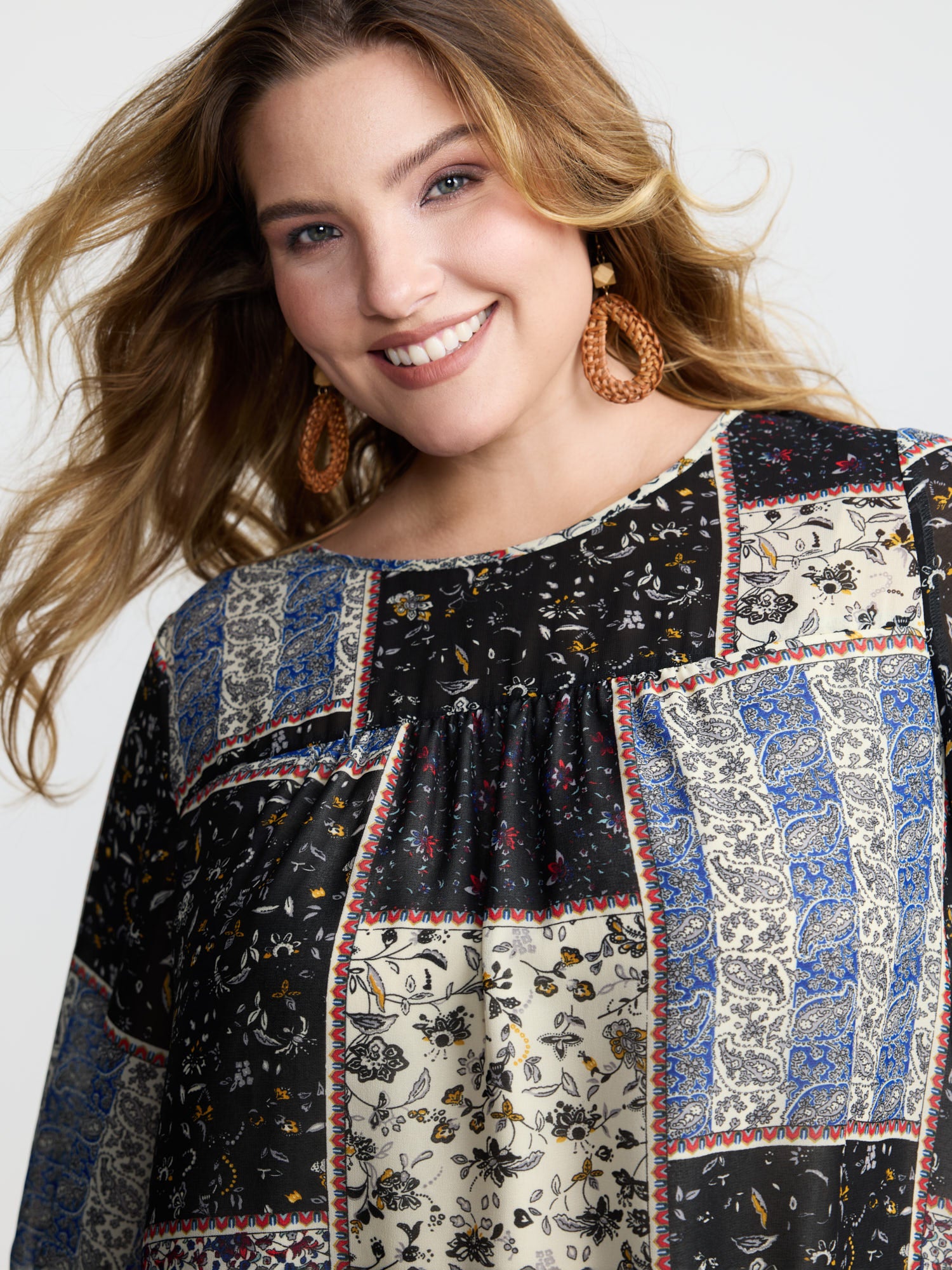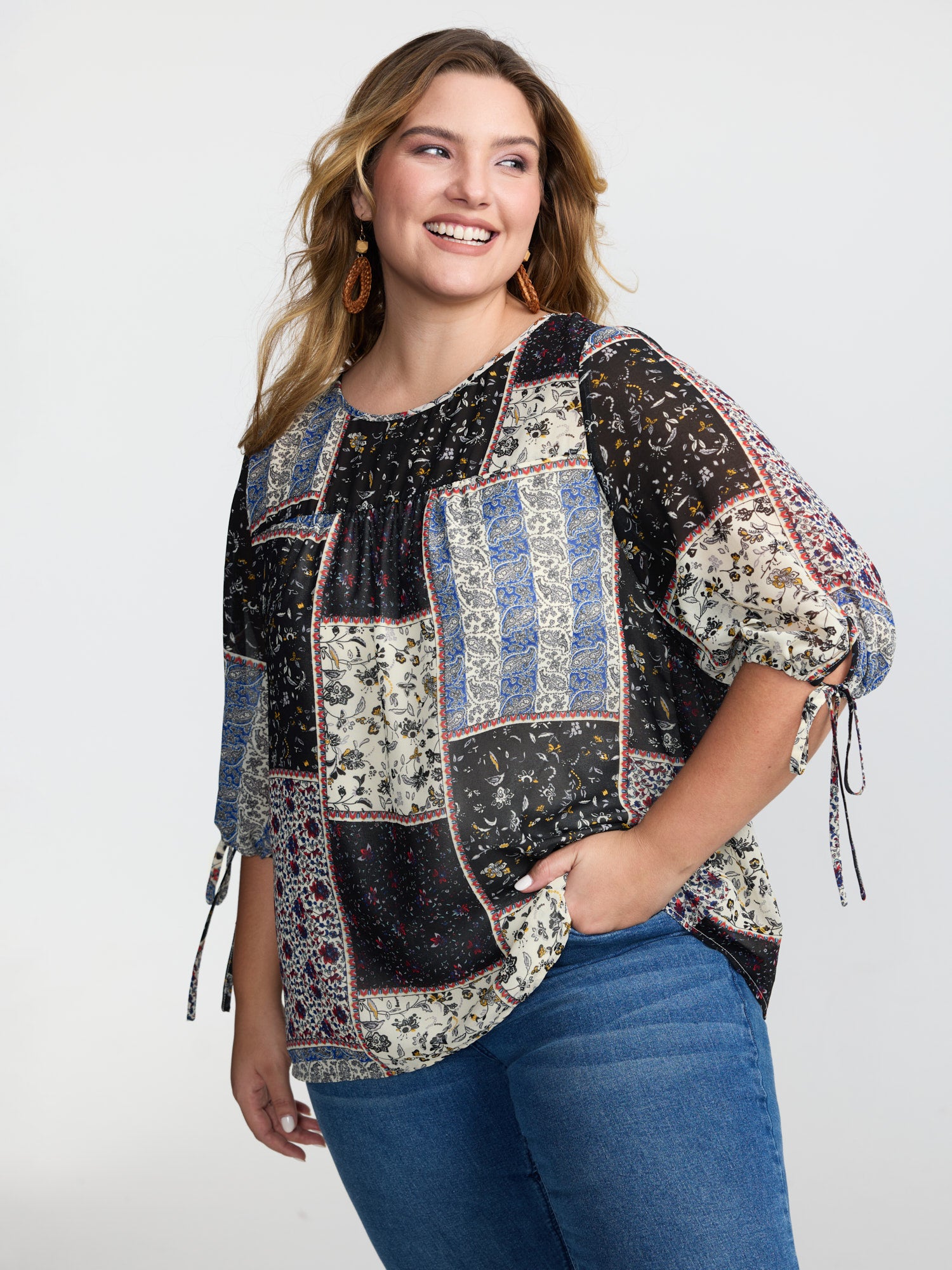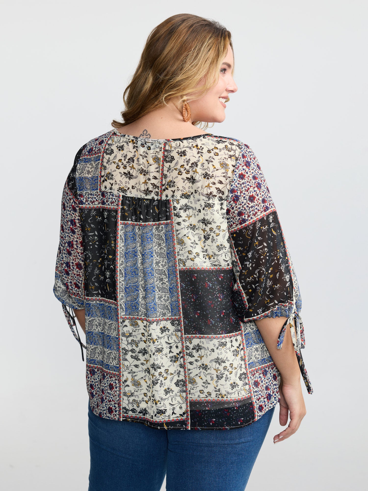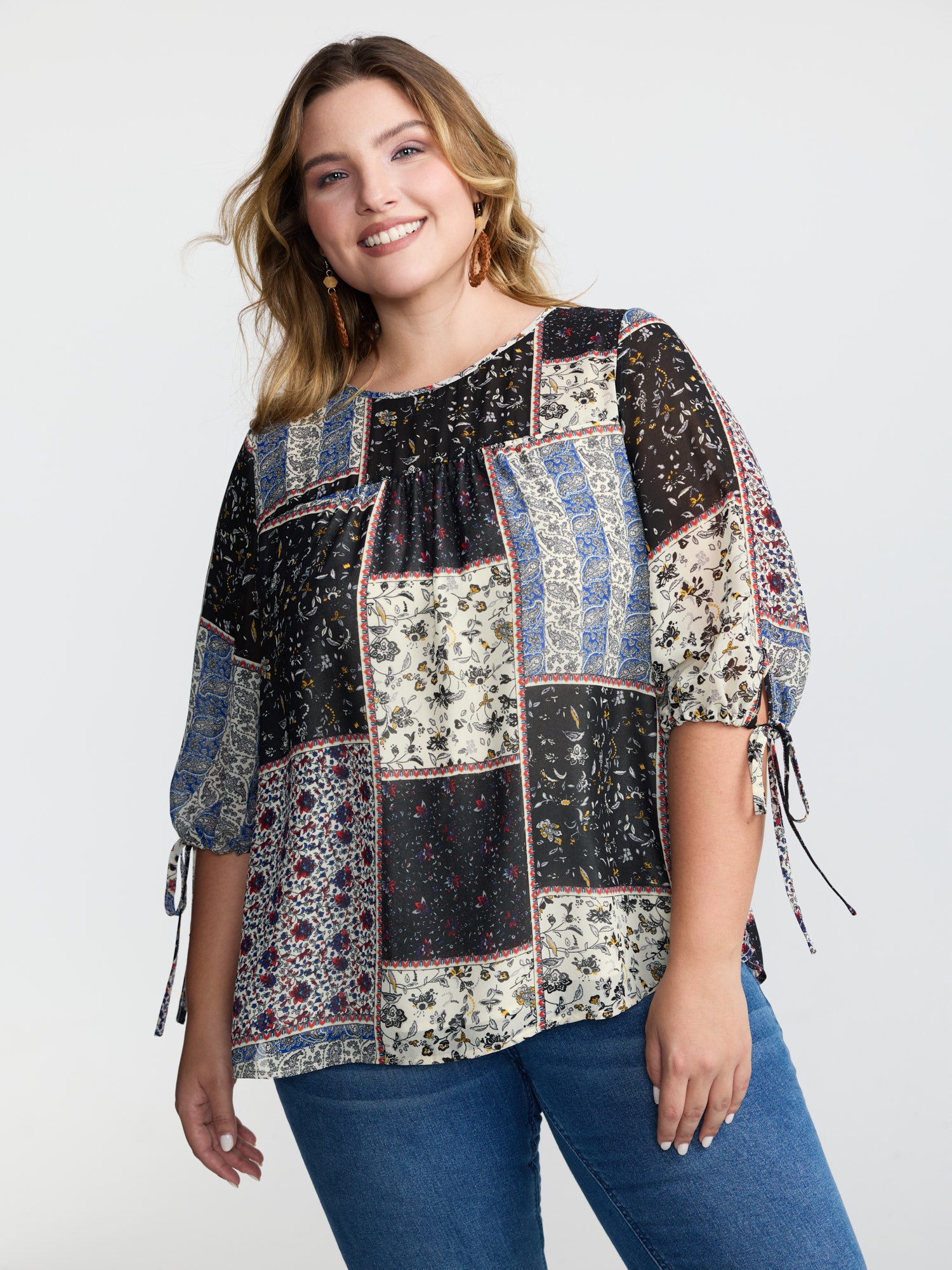 Shop Boho Collage Print Sleeve-Tie Blouse at BloomChic. Plus Size Clothing & Plus Size Blouses. BloomChic is a digital-first fashion and lifestyle destination for modern women sizes 10-30.