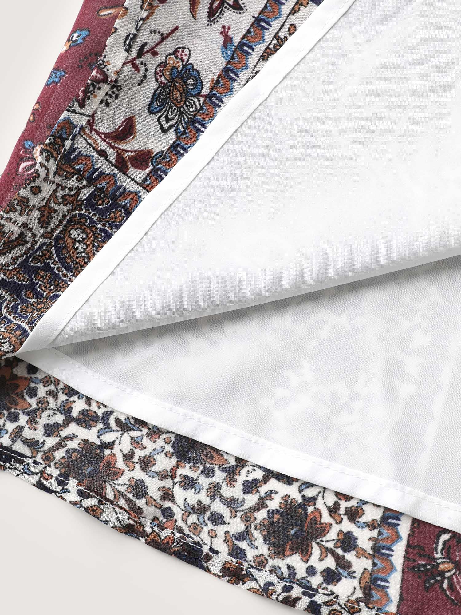 Boho Collage Print Sleeve-Tie Blouse