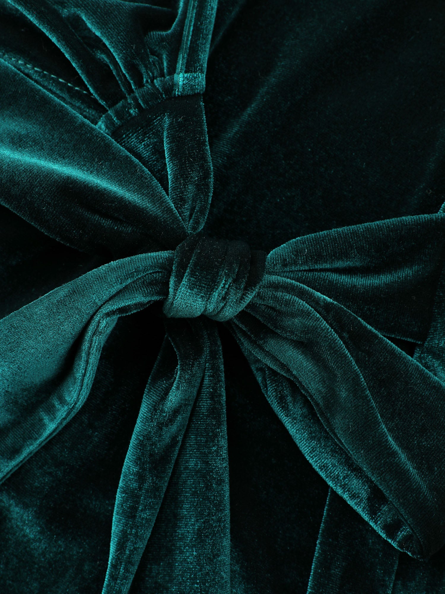 Shop Cheerful Velvet Wrap Tie Blouse now and redefine your style with confidence at BloomChic. Tailored for mid and plus-size women. This trendy Tops Women, sizes 10-30. Color:DarkGreen;Style:Party&Cocktail;Prints:Non;Neckline:Overlap Collar;Sleeve Type:Regular Sleeve;Details:Tie knot;Pocket:No-pocket