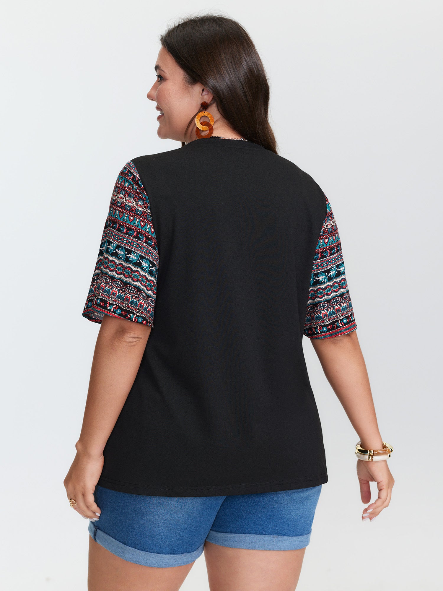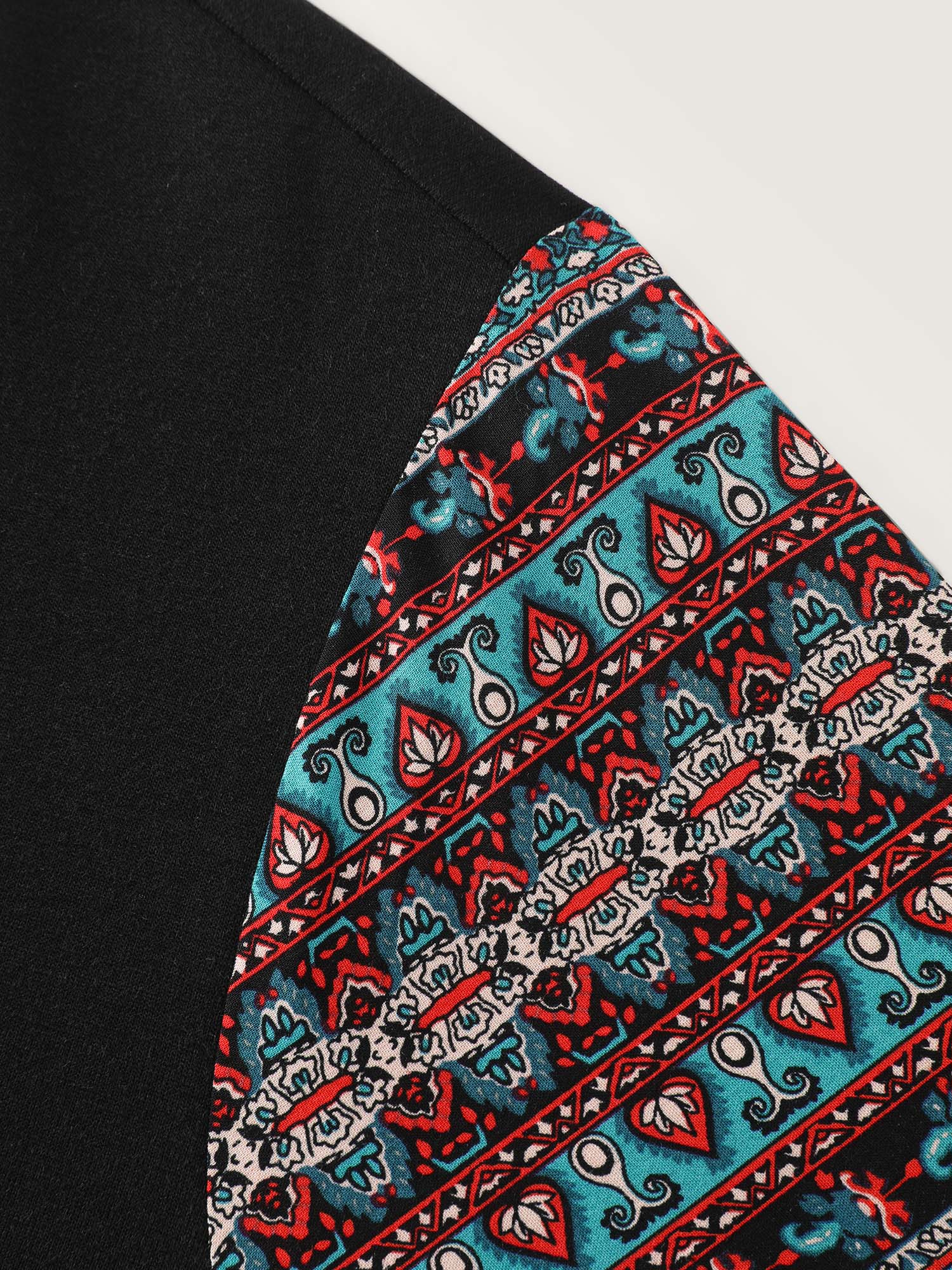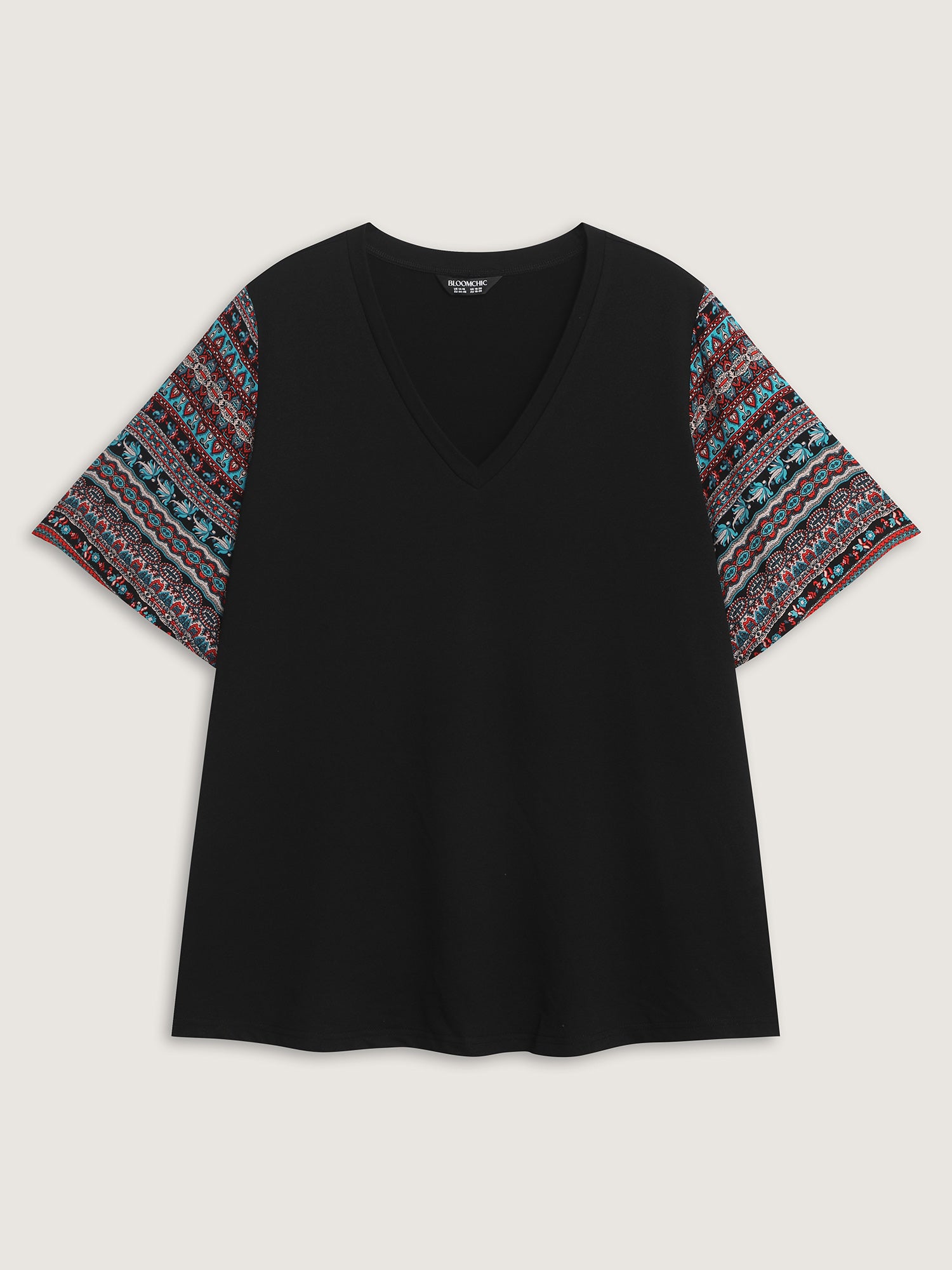 Shop Colorful Boho Sleeve V-Neck Blouse now and redefine your style with confidence at BloomChic. Tailored for mid and plus-size women. This trendy Tops Women, sizes 10-30. Color:Black;Style:Resort;Prints:Bohemian print;Neckline:V-neck;Sleeve Type:Regular Sleeve;Pocket:No-pocket