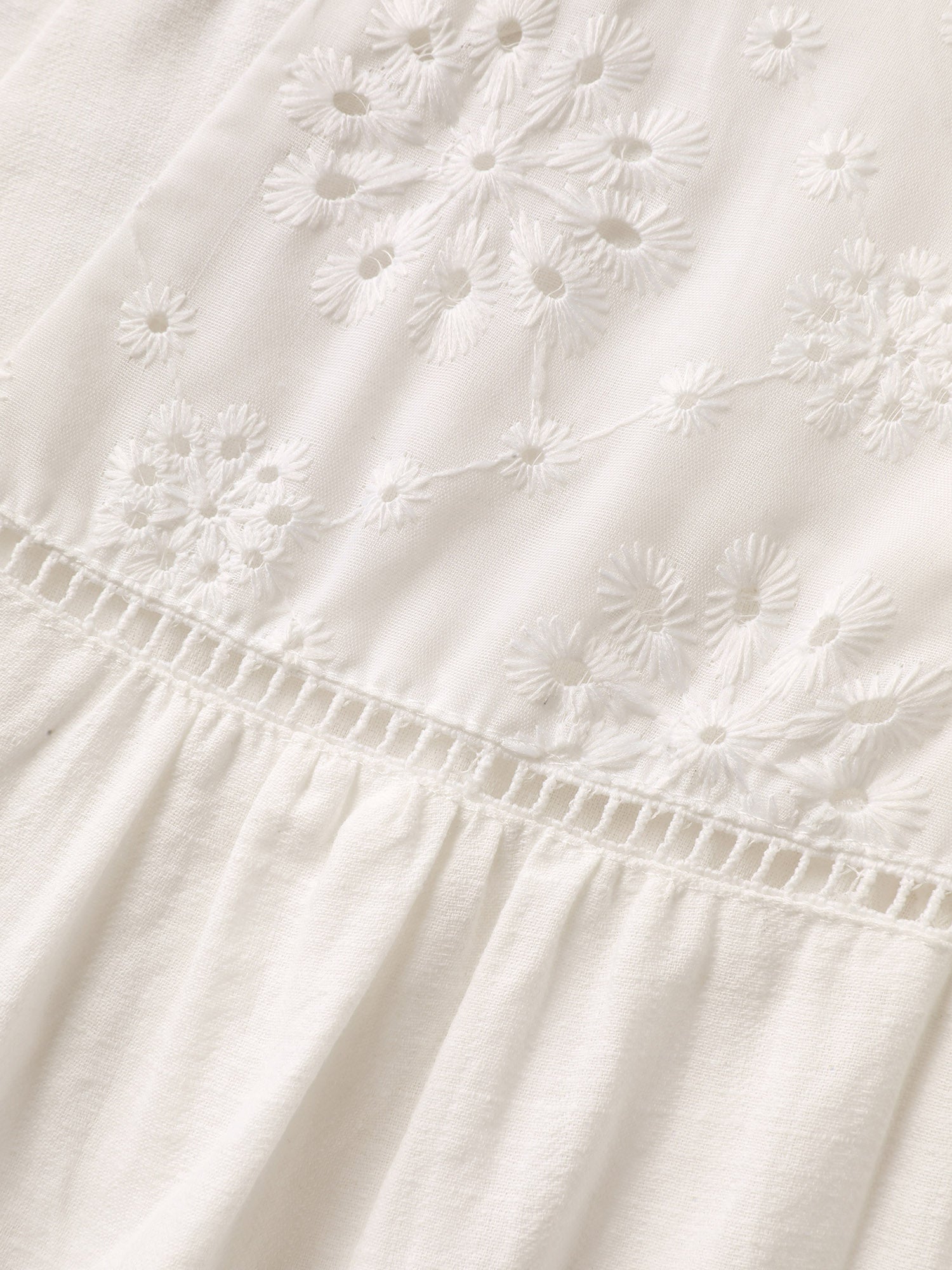 Cotton Lace Eyelet Trim Layered Sleeve Blouse