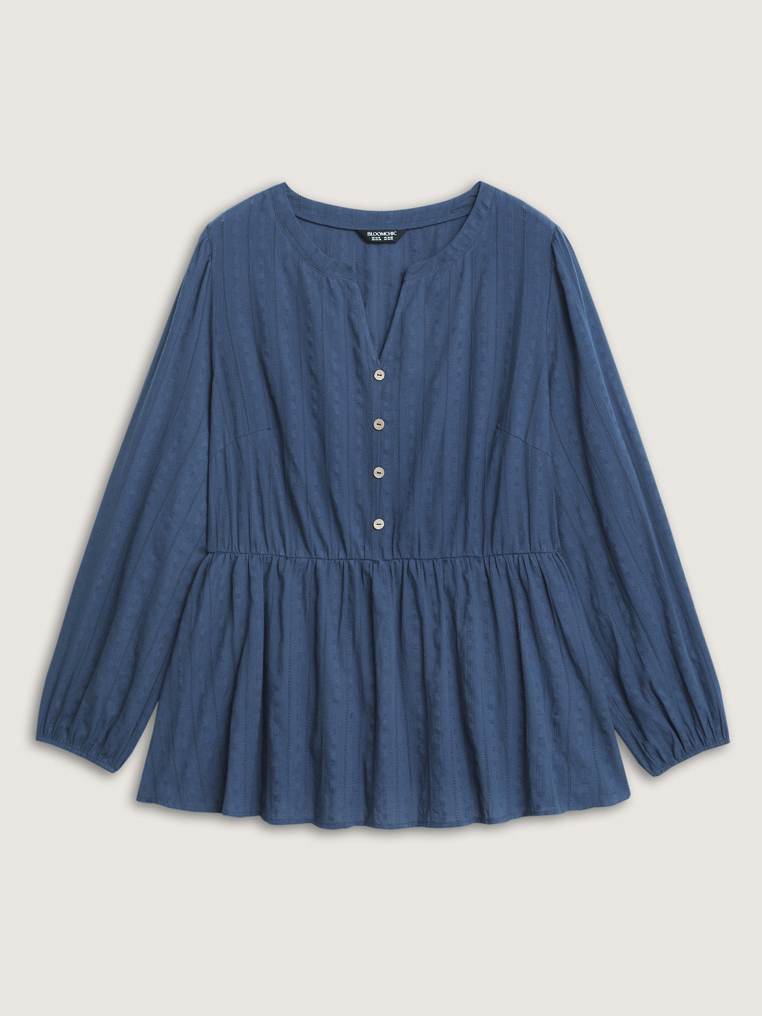 Shop Cotton Textured Cinched-Flared Blouse now and redefine your style with confidence at BloomChic. Tailored for mid and plus-size women. This trendy Tops Women, sizes 10-30. Color:Dark Blue;Style:Leisure;Prints:Non;Neckline:Notched collar;Sleeve Type:Regular Sleeve;Details:Texture, Button;Pocket:No-pocket