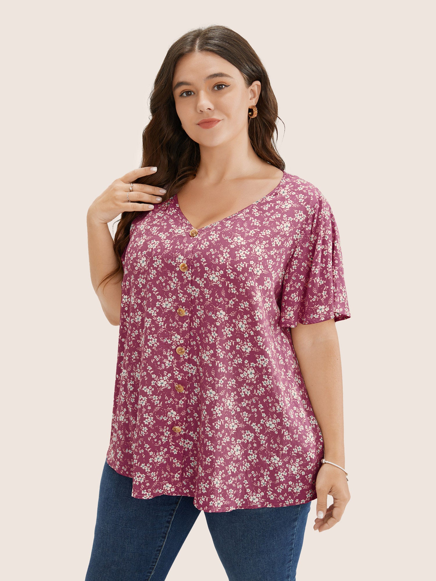 Shop Ditsy Floral Contrast Ruffle Sleeve Button Detail Blouse at BloomChic. Plus Size Clothing & Plus Size Blouses. BloomChic is a digital-first fashion and lifestyle destination for modern women sizes 10-30.