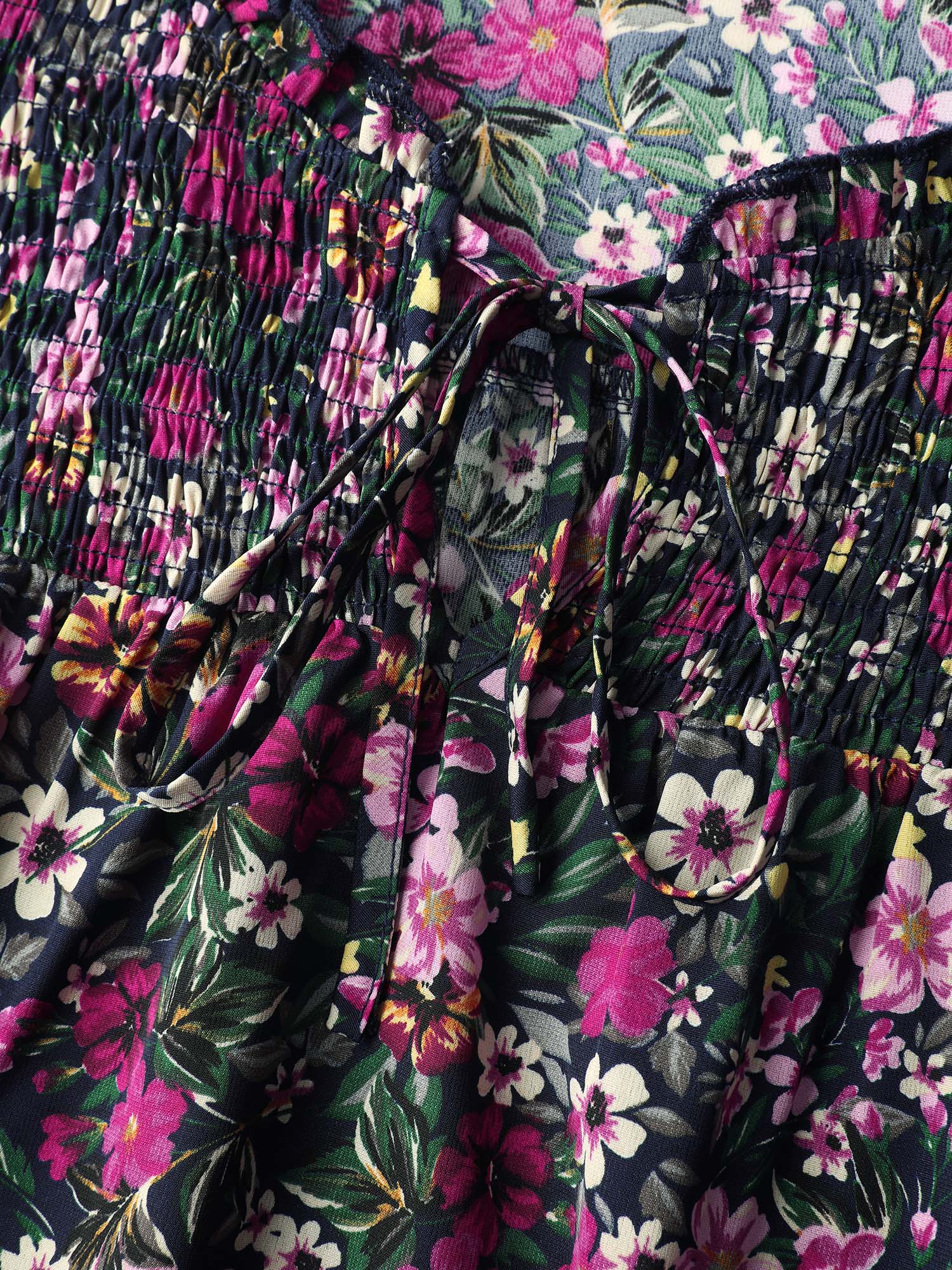 Ditsy Floral Shirred Neck Tie Blouse