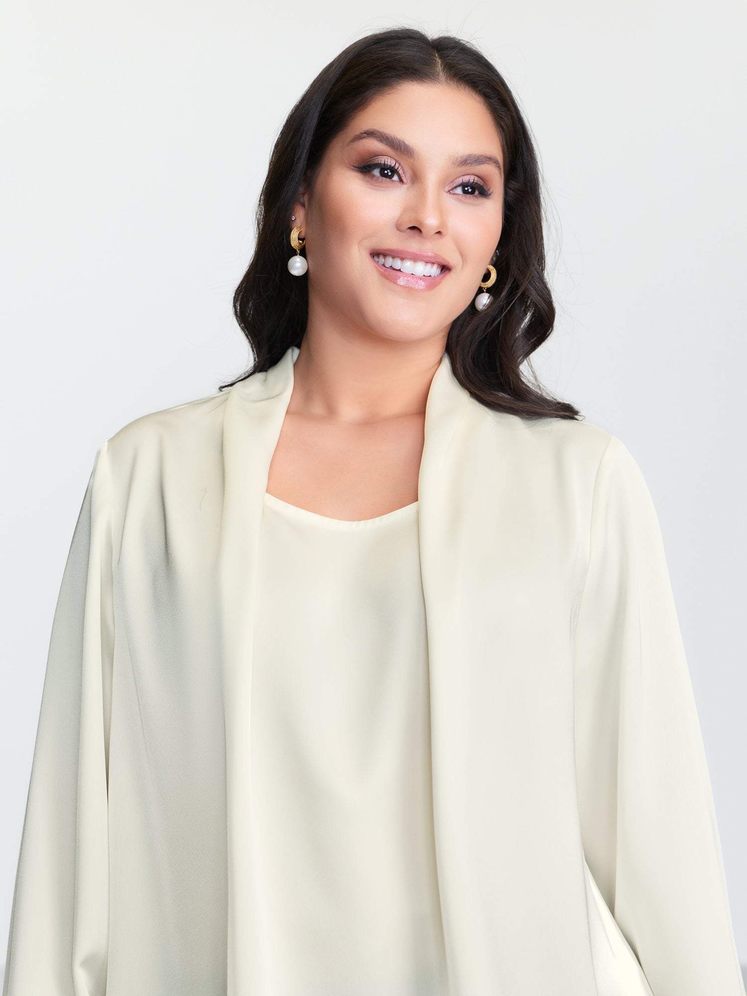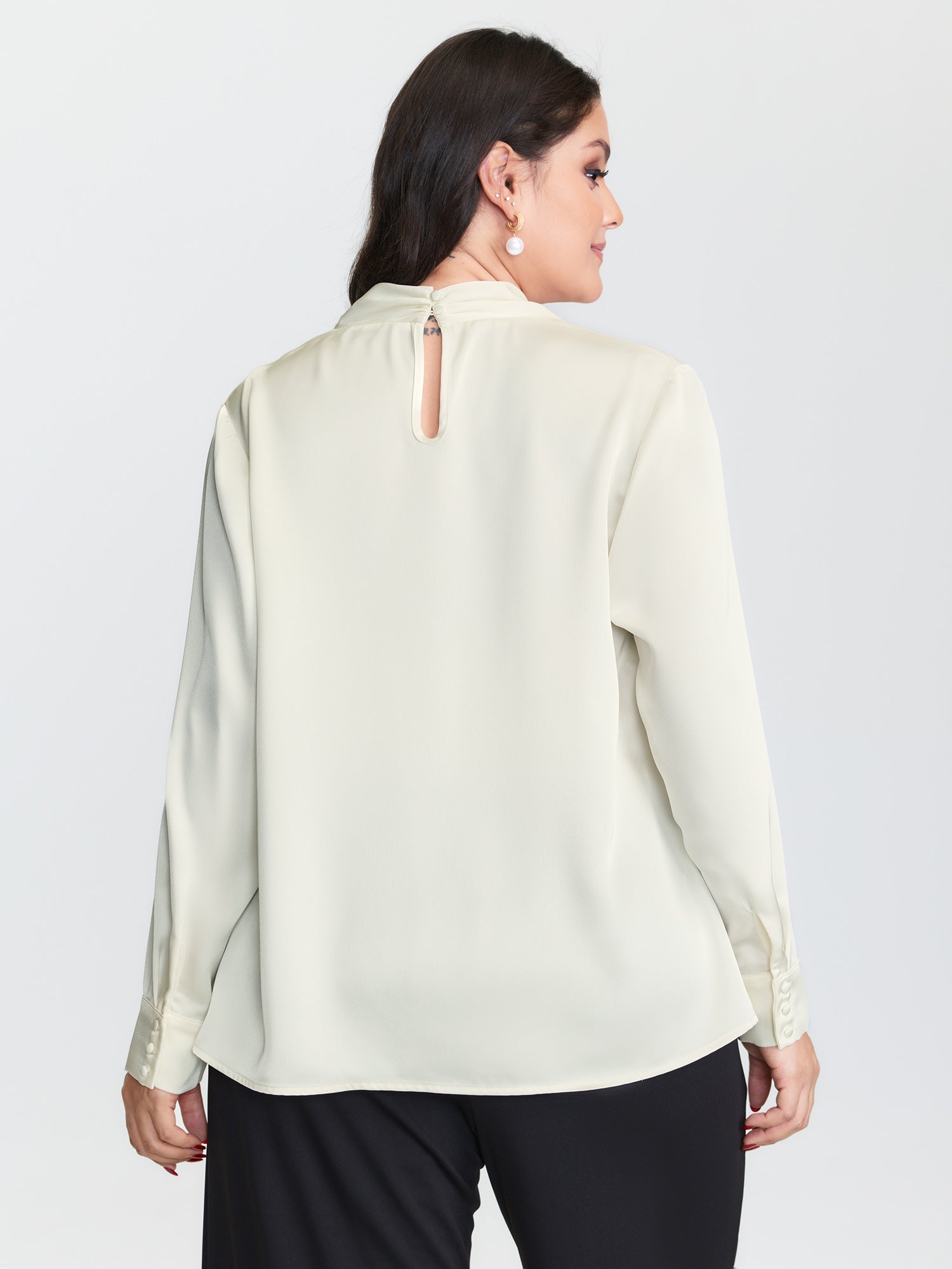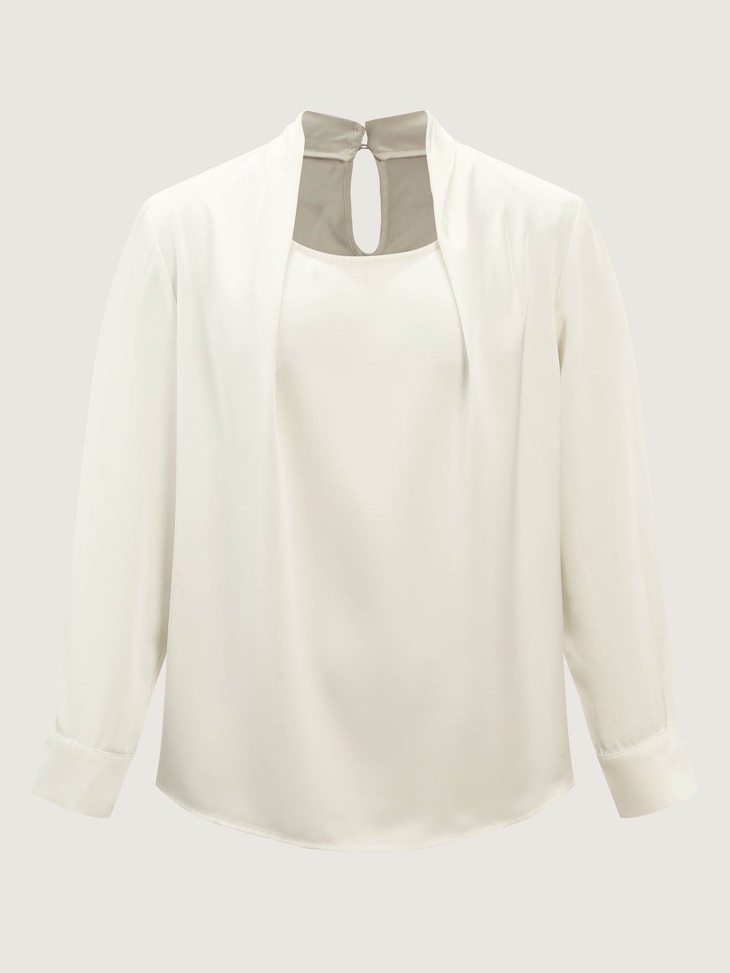 Shop Draped Plain Satin Cuffed Blouse now and redefine your style with confidence at BloomChic. Tailored for mid and plus-size women. This trendy Tops Women, sizes 10-30. Color:Original White;Style:Office;Prints:Non;Neckline:Cowl Neck;Sleeve Type:Sleeveless;Pocket:No-pocket