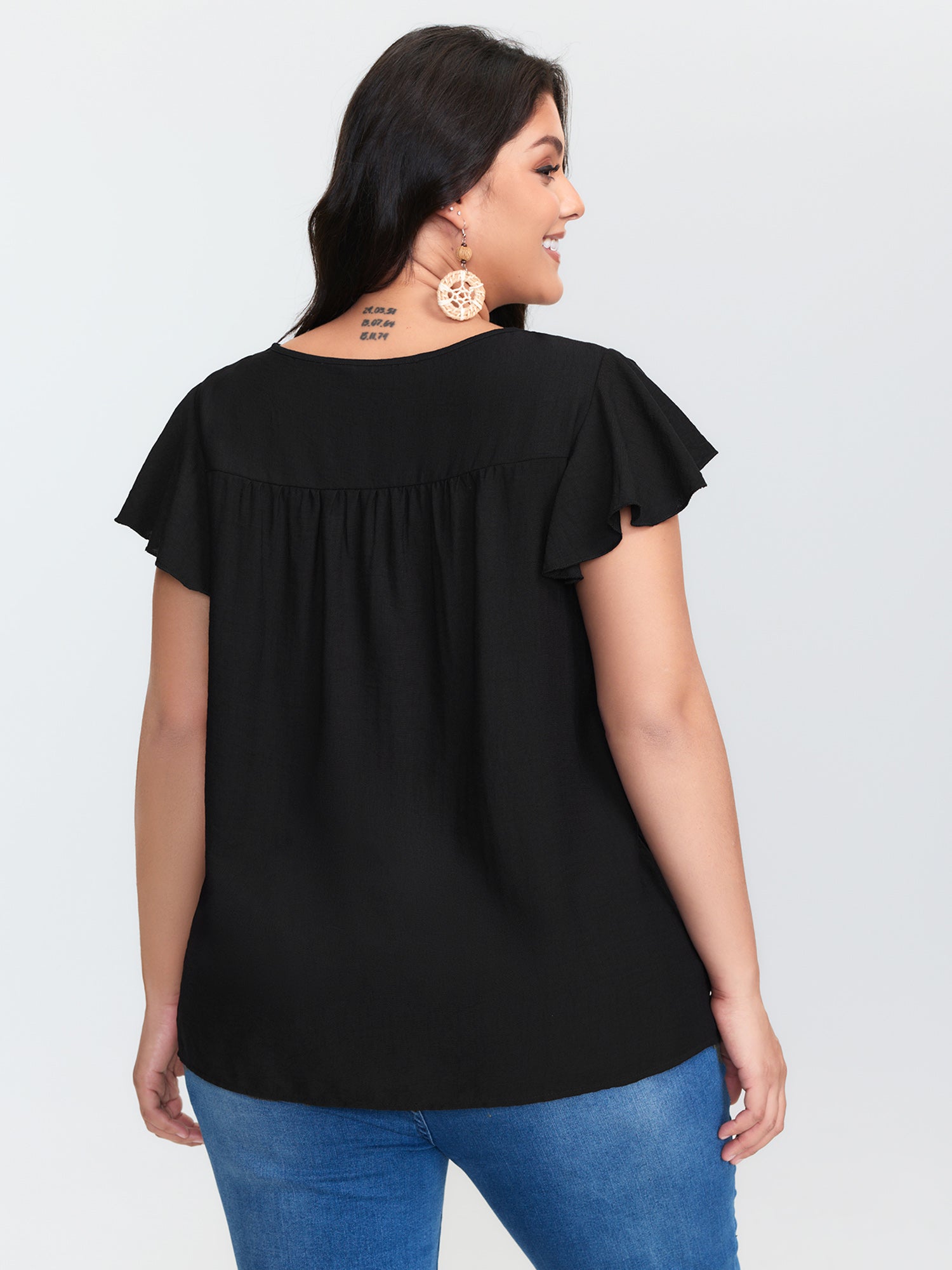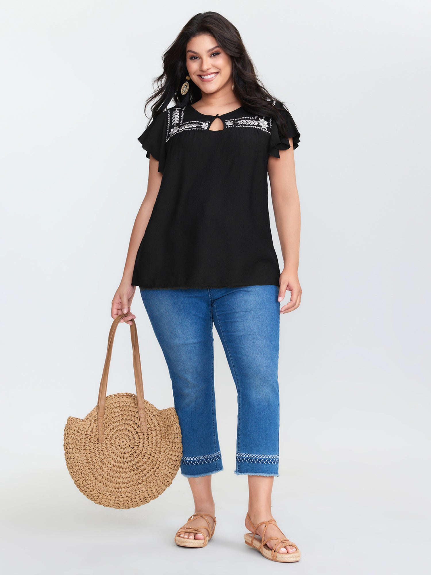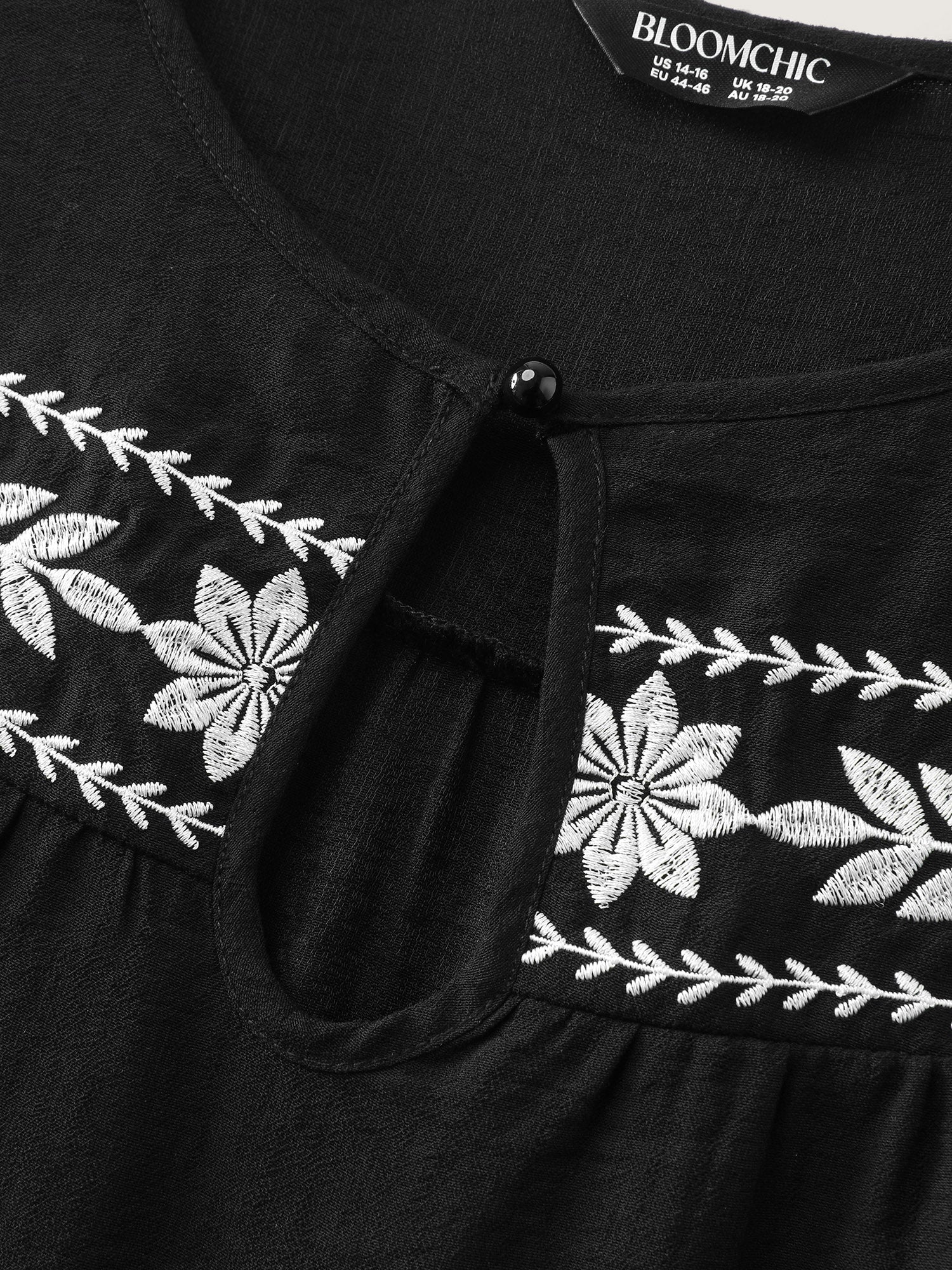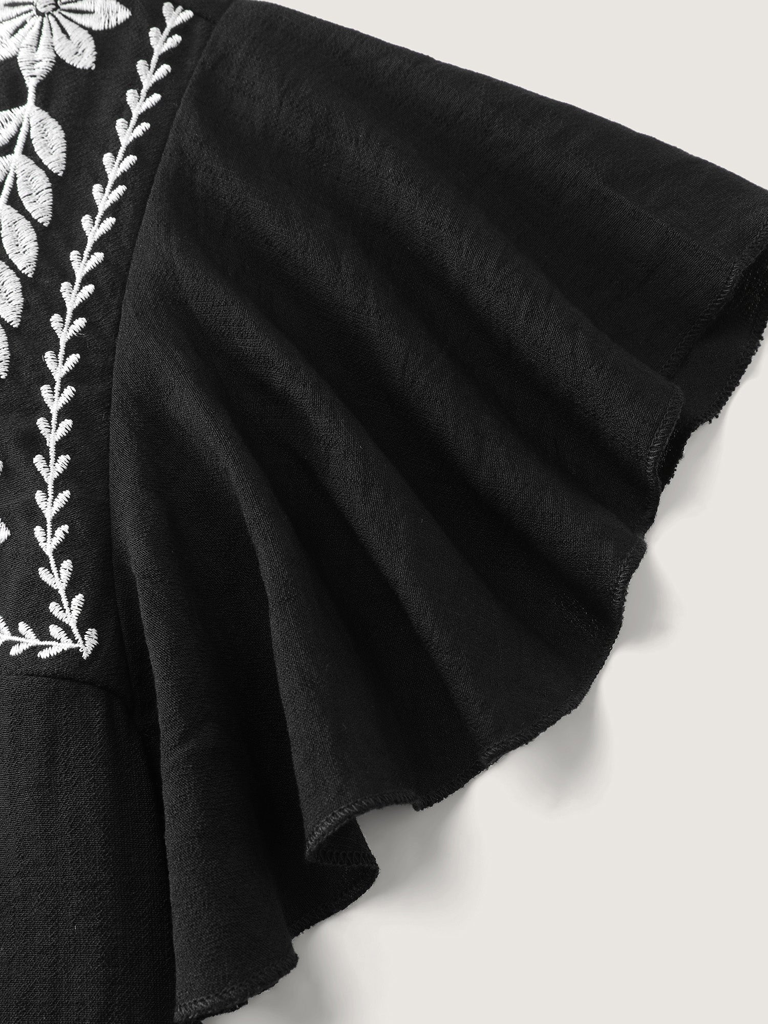 Shop Embroidered Neckline Flutter Sleeve Blouse now and redefine your style with confidence at BloomChic. Tailored for mid and plus-size women. This trendy Tops Women, sizes 10-30. Color:Black;Style:Boho;Prints:Floral;Neckline:Round Neck;Sleeve Type:Ruffle Sleeve;Pocket:No-pocket