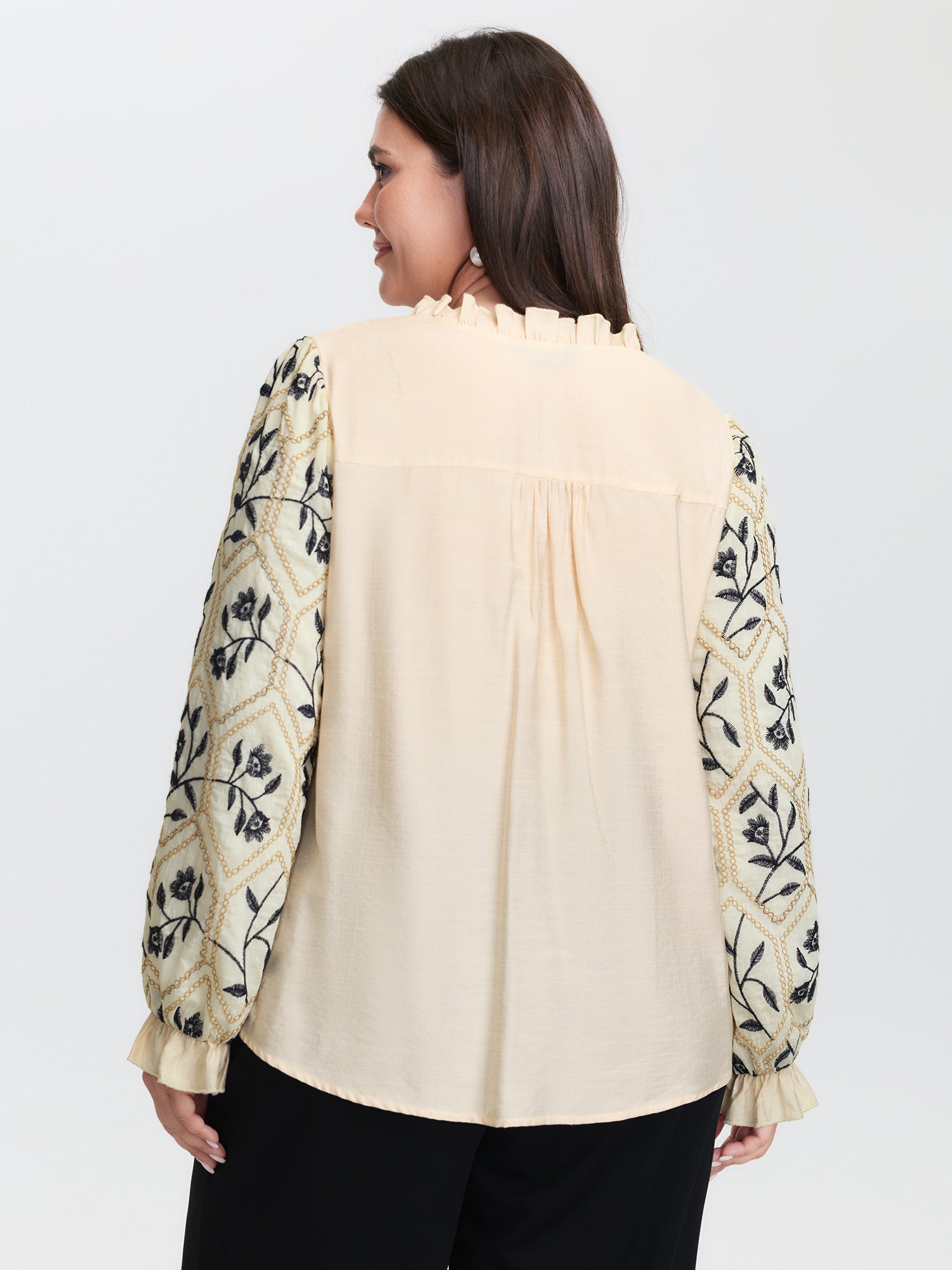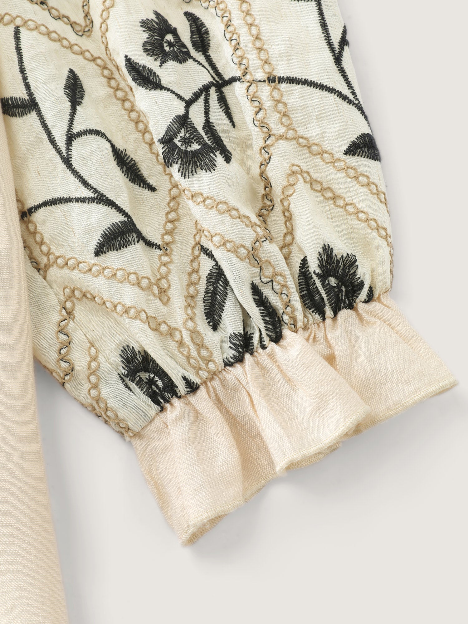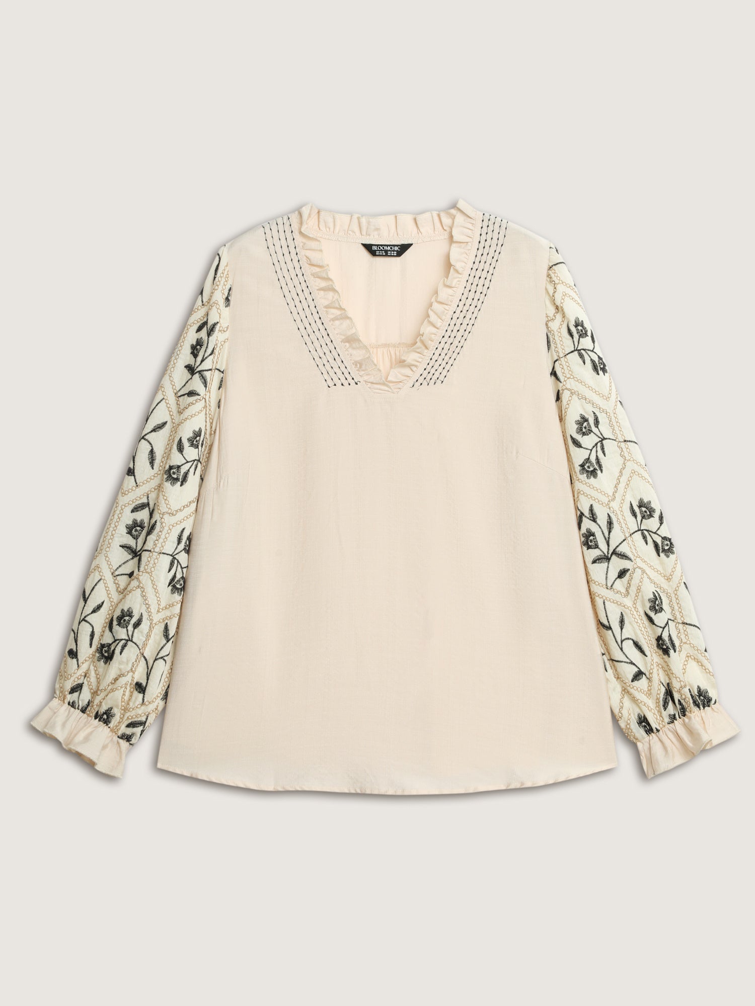 Shop Floral Embroidered Sleeve Rayon Blouse now and redefine your style with confidence at BloomChic. Tailored for mid and plus-size women. This trendy Tops Women, sizes 10-30. Color:Beige;Style:Timeless;Prints:Floral;Neckline:V-neck;Sleeve Type:Puff Sleeve;Pocket:No-pocket