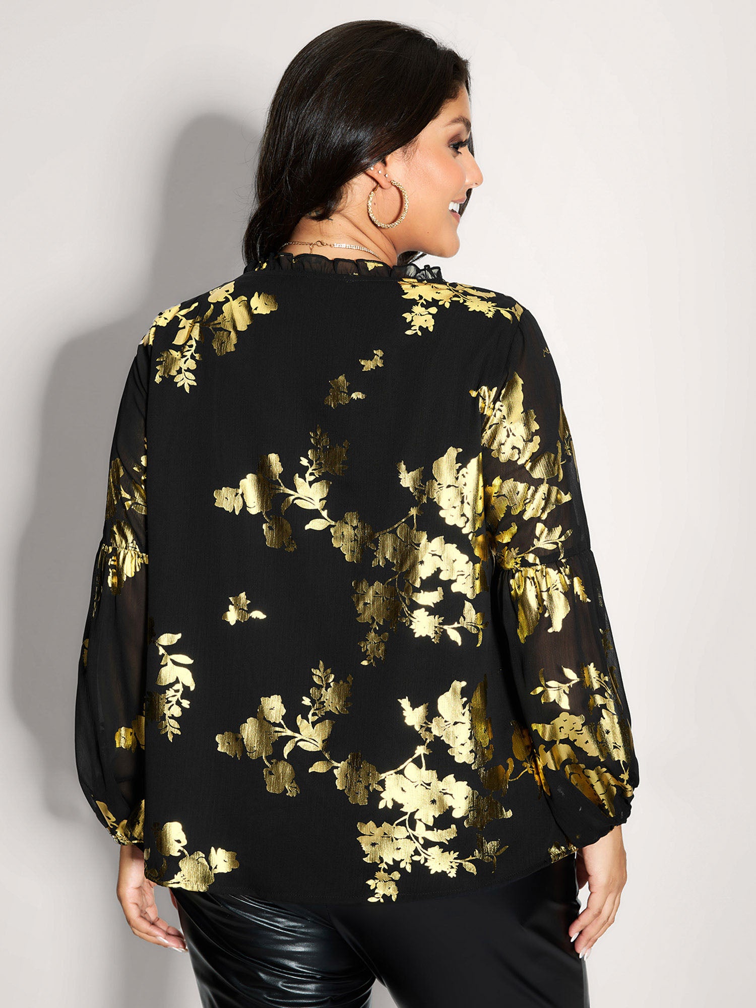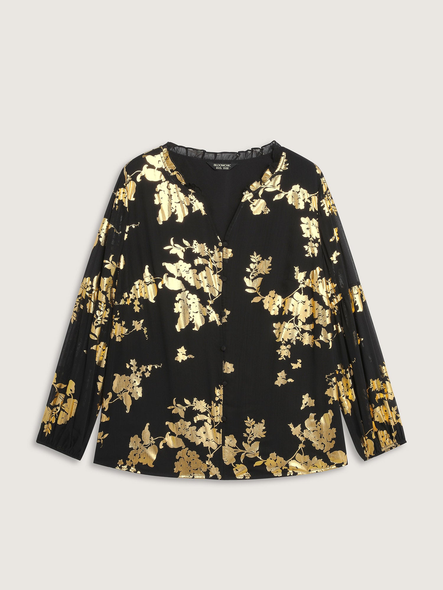 Shop Floral Gold Stamp Sheer Button-Down Shirt at BloomChic. Plus Size Clothing & Plus Size Shirts. BloomChic is a digital-first fashion and lifestyle destination for modern women sizes 10-30.