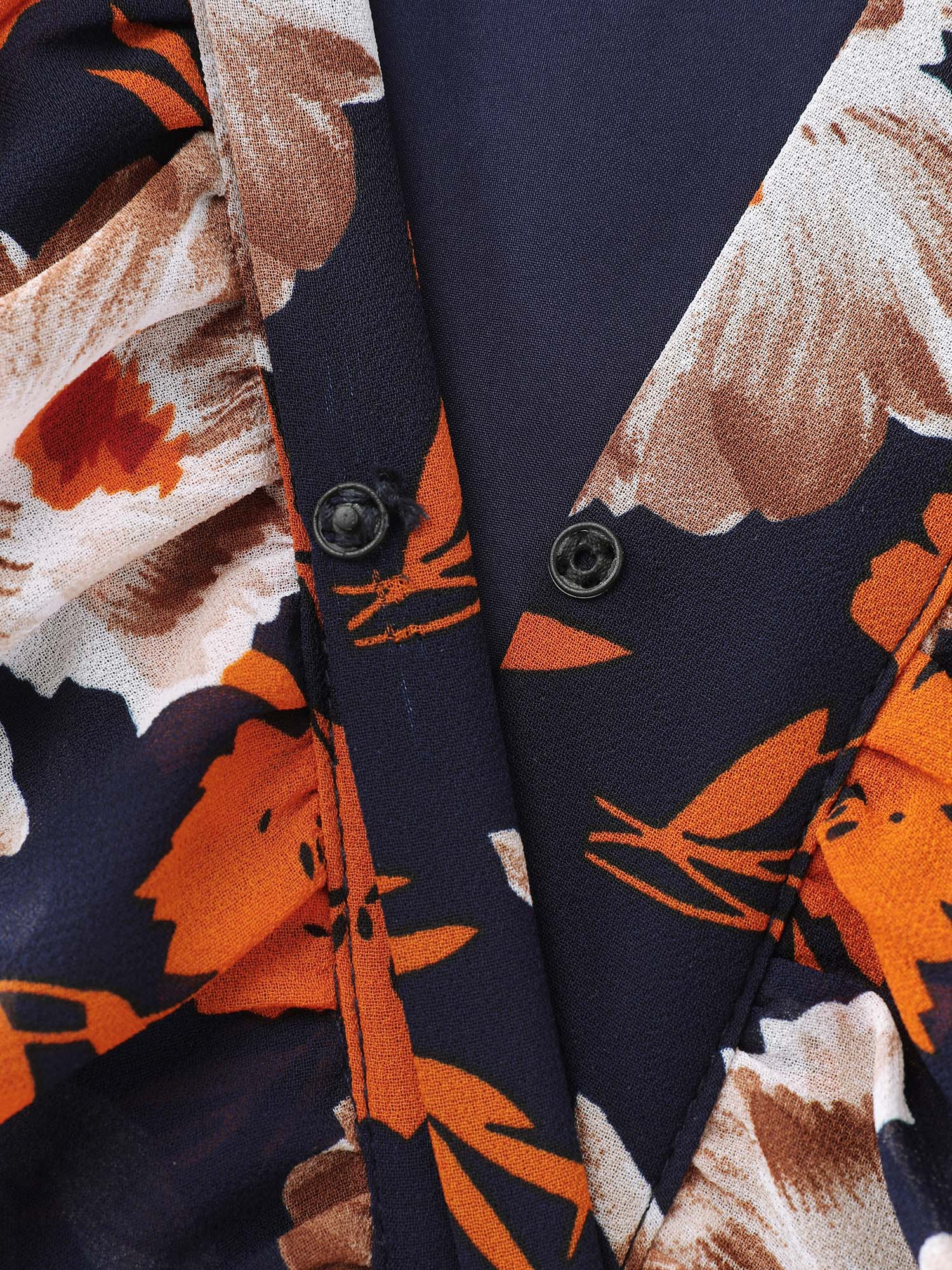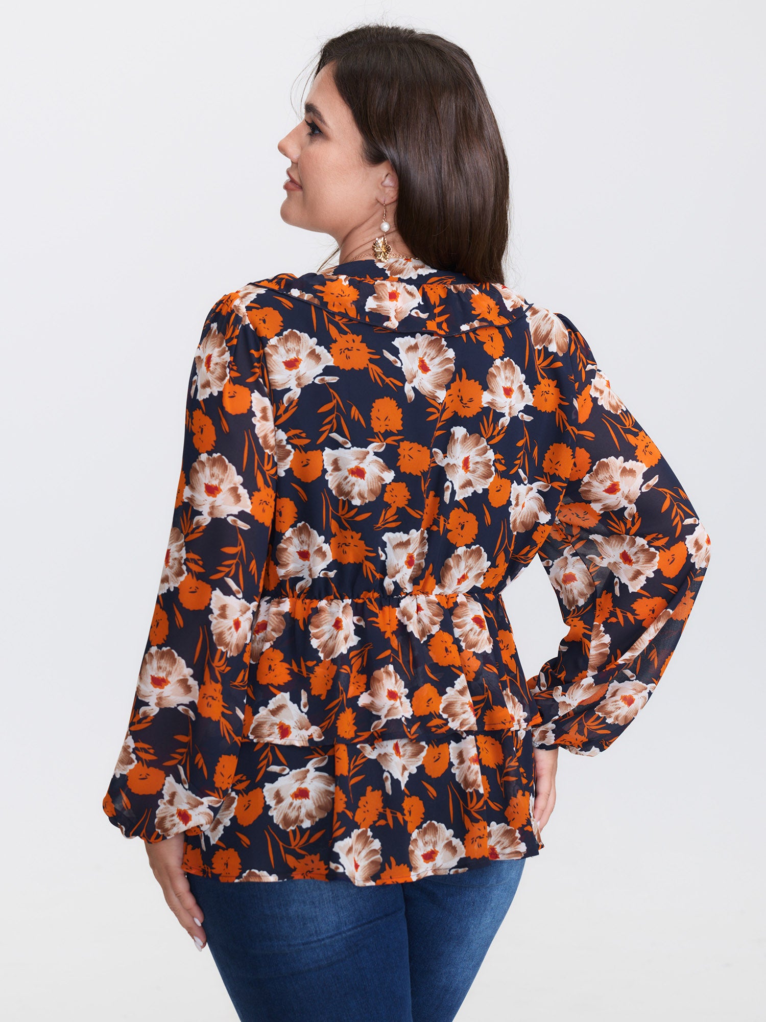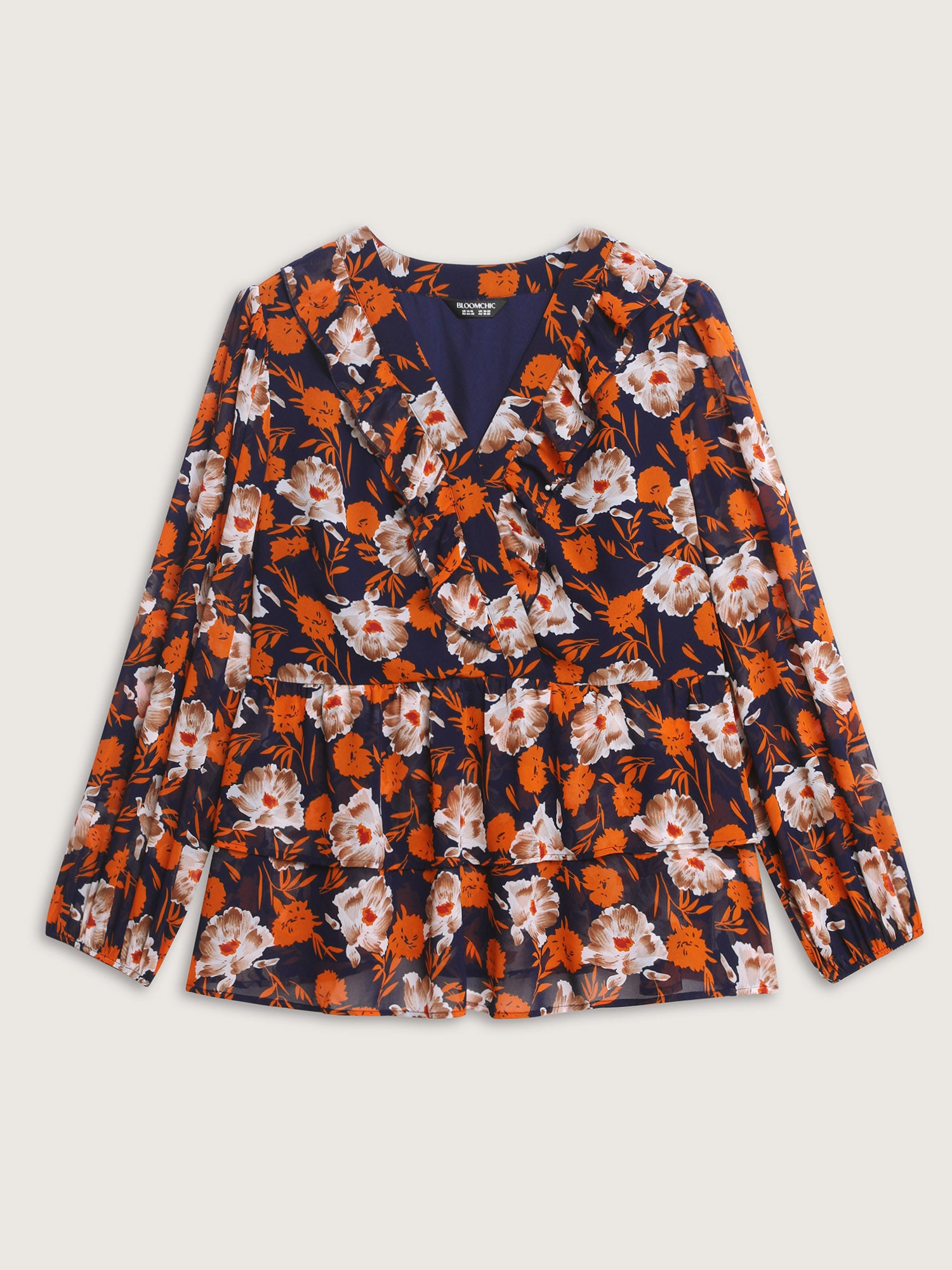 Shop Floral Layered Hem Stretchy Waist Blouse now and redefine your style with confidence at BloomChic. Tailored for mid and plus-size women. This trendy Tops Women, sizes 10-30. Color:Indigo;Style:Timeless;Prints:Floral;Neckline:Overlap Collar;Sleeve Type:Regular Sleeve;Details:Ruffles, Tiered, Contrast, See through;Pocket:No-pocket