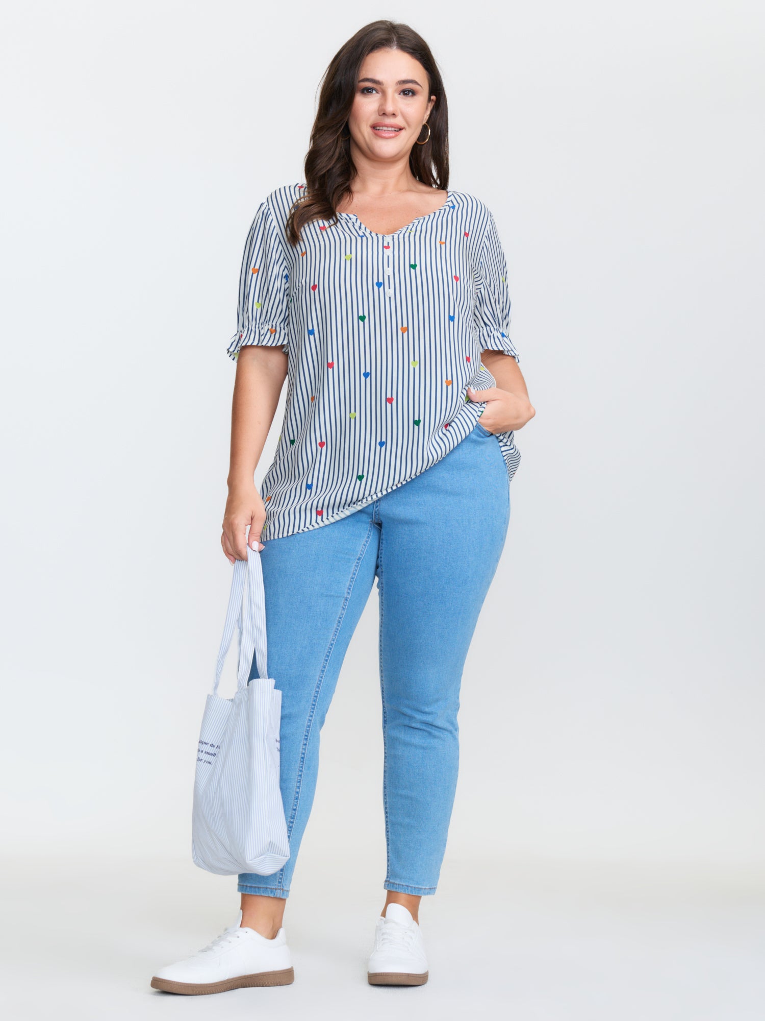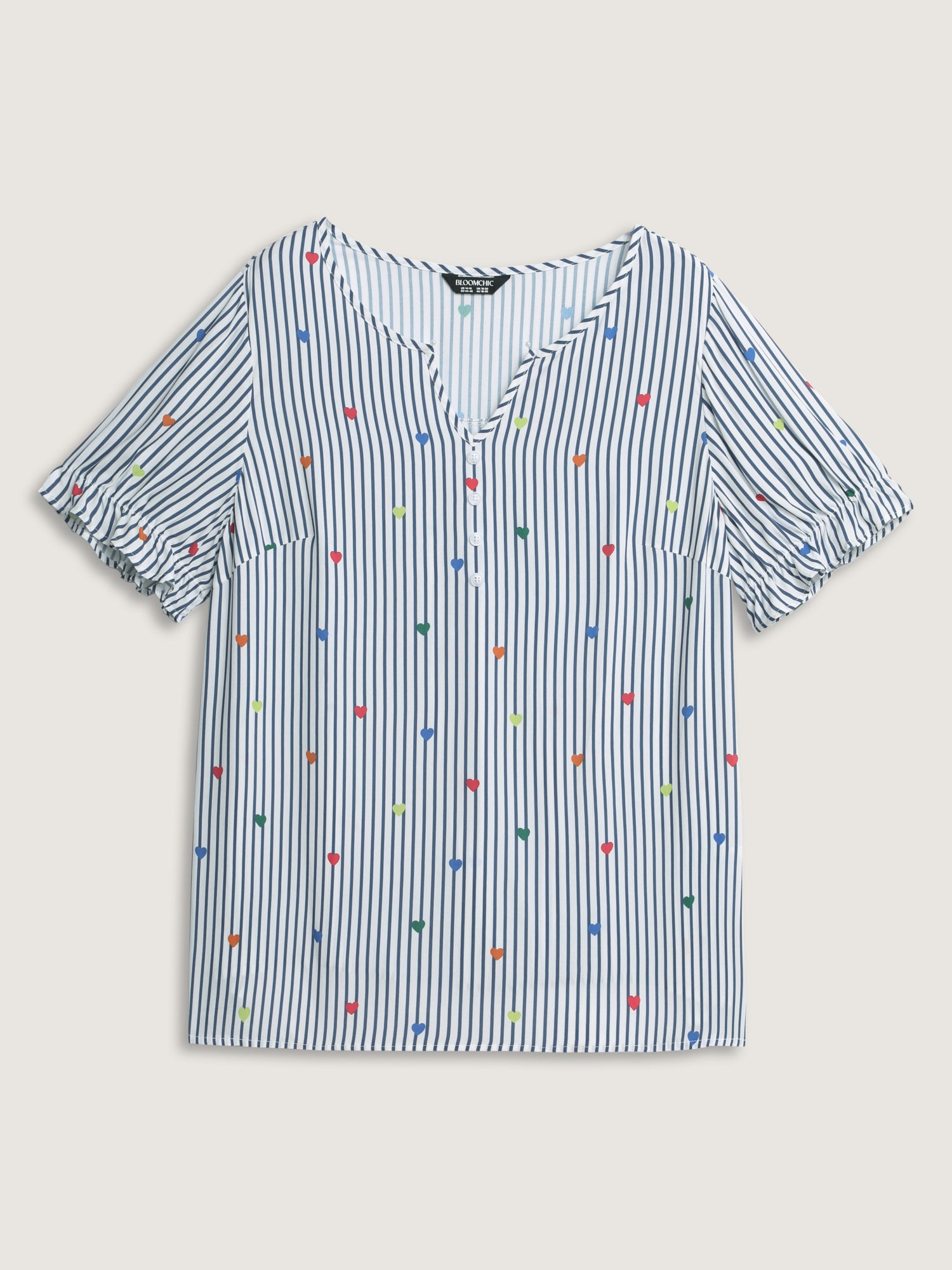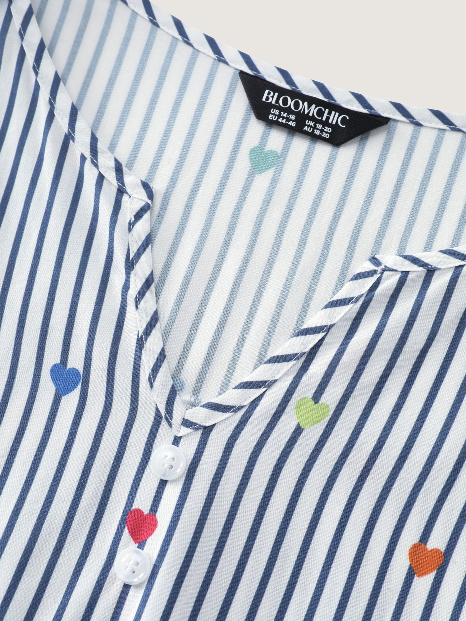 Shop Floral Print Notched Collar Blouse now and redefine your style with confidence at BloomChic. Tailored for mid and plus-size women. This trendy Tops Women, sizes 10-30. Color:Light Blue;Style:Playful;Prints:Stripes;Neckline:Flat collar with V-notch;Sleeve Type:Lantern Sleeve;Details:Button;Pocket:No-pocket