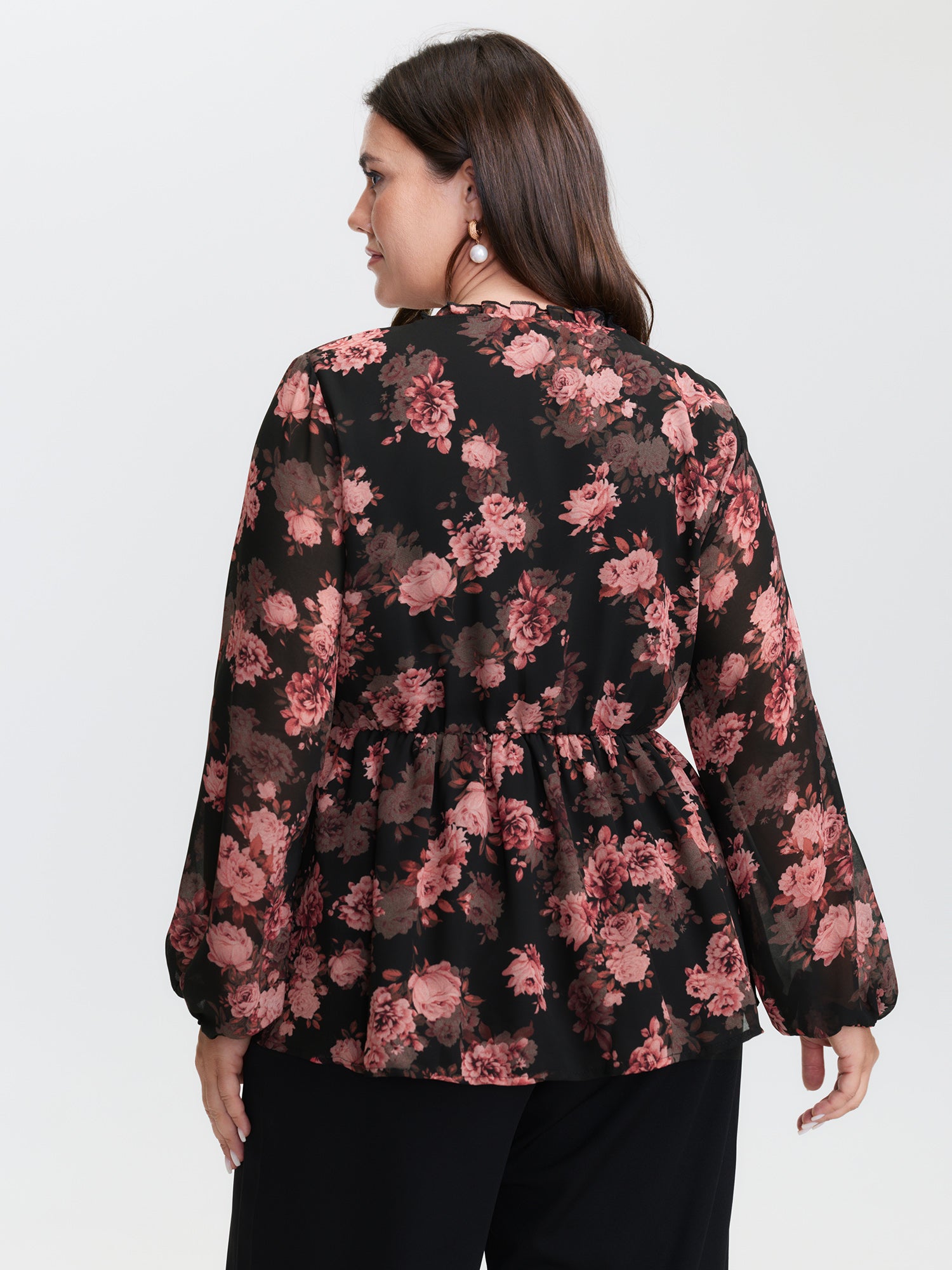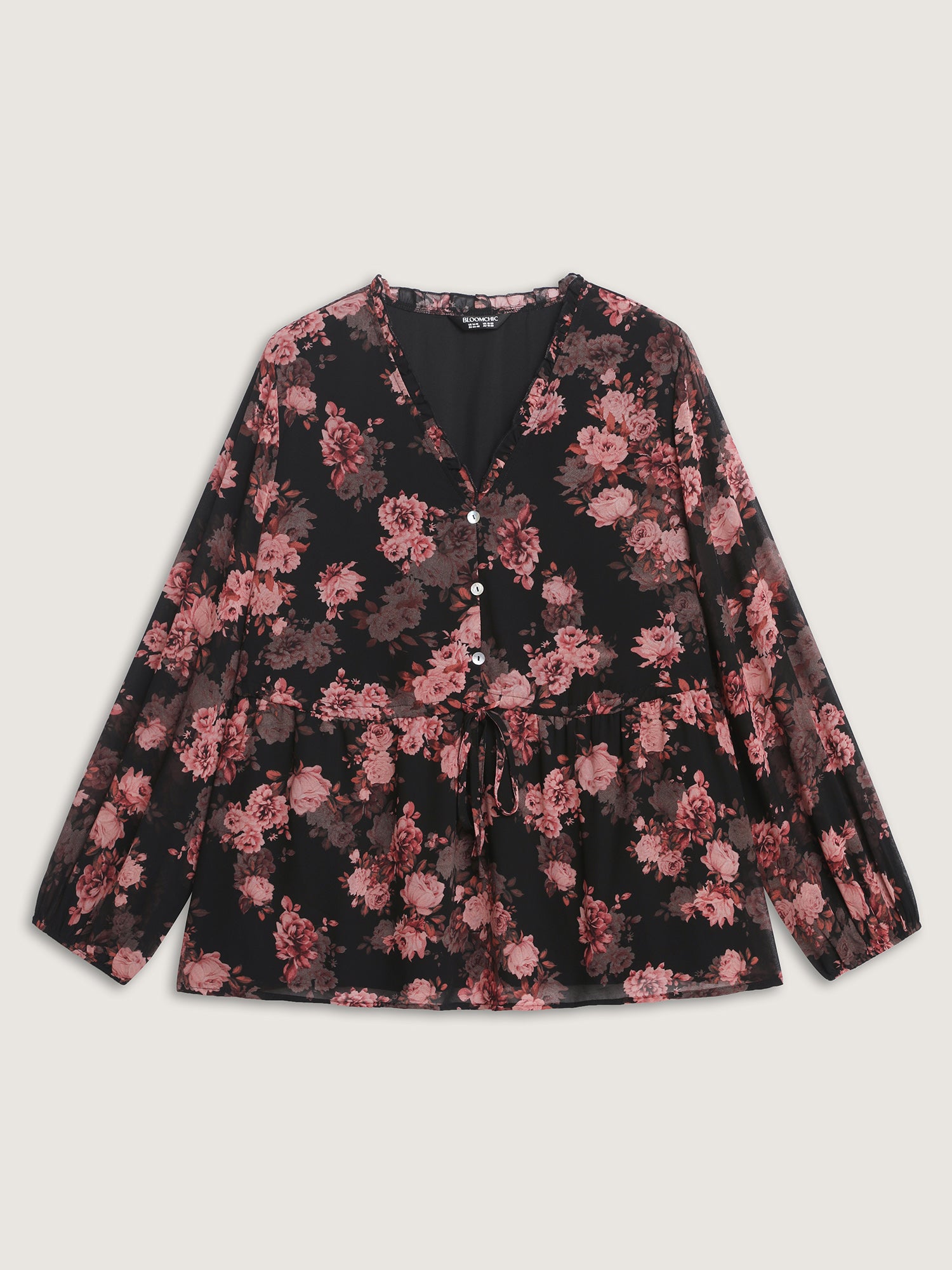 Shop Floral Print Sheer Ruffled Blouse now and redefine your style with confidence at BloomChic. Tailored for mid and plus-size women. This trendy Tops Women, sizes 10-30. Color:BlackFlower;Style:Romantic;Prints:Floral;Neckline:V-neck;Sleeve Type:Regular Sleeve;Pocket:No-pocket