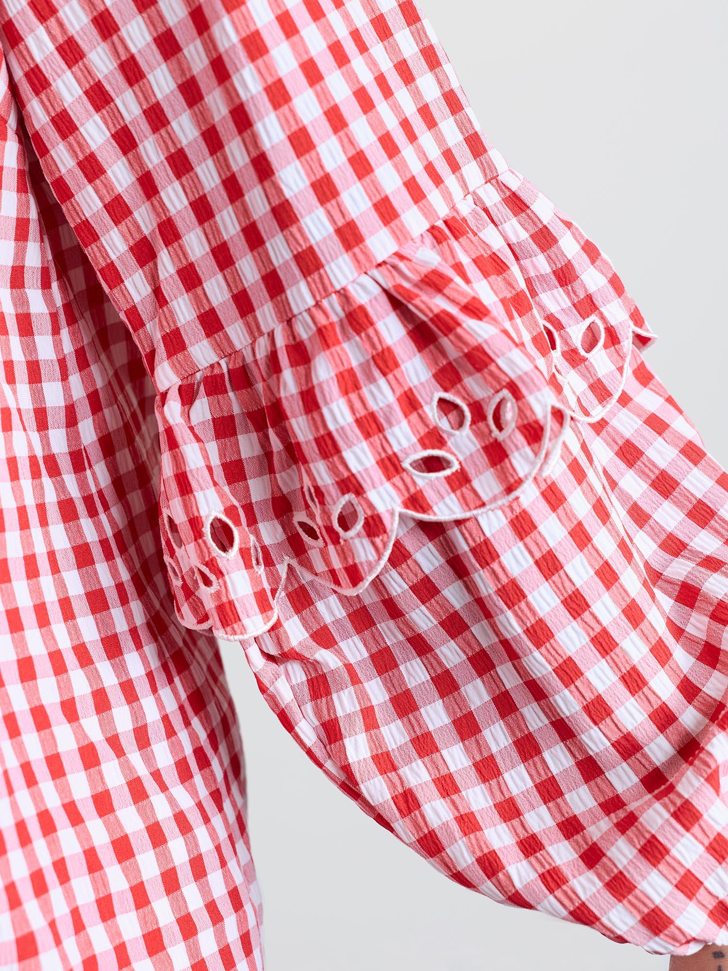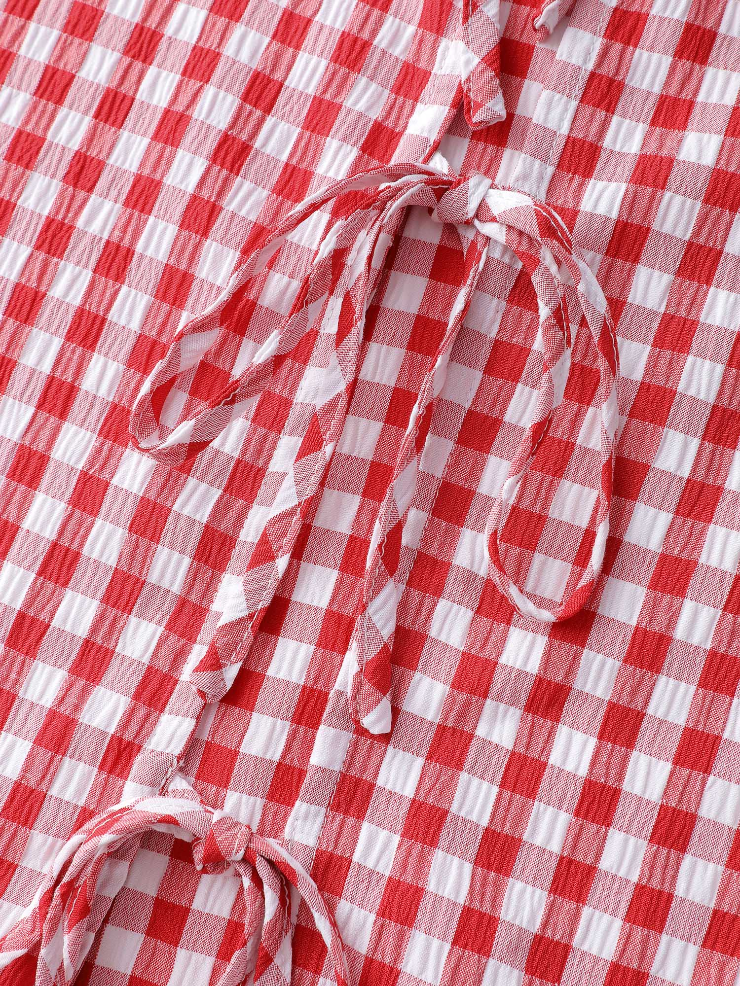 Gingham Embroidered Bow Tie Open-Front Shirt
