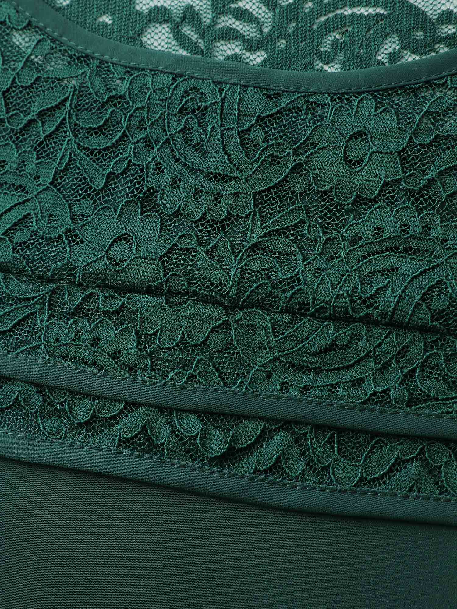 Lace Sheer Sleeve Curvy Hem Blouse