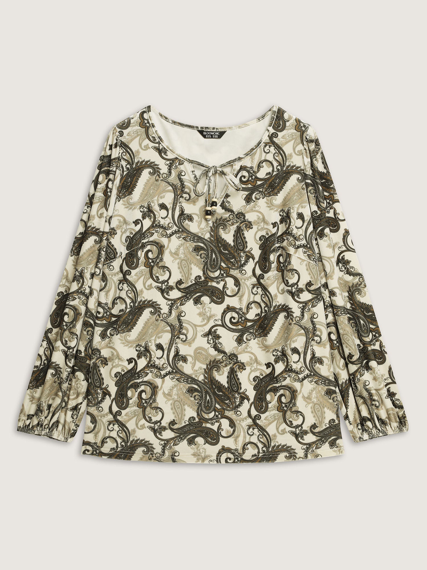 Shop Paisley Velvety Print Lantern Sleeve Blouse now and redefine your style with confidence at BloomChic. Tailored for mid and plus-size women. This trendy Tops Women, sizes 10-30. Color:Beige;Style:Office;Prints:Paisley;Neckline:Notched collar;Sleeve Type:Regular cuff;Pocket:No-pocket