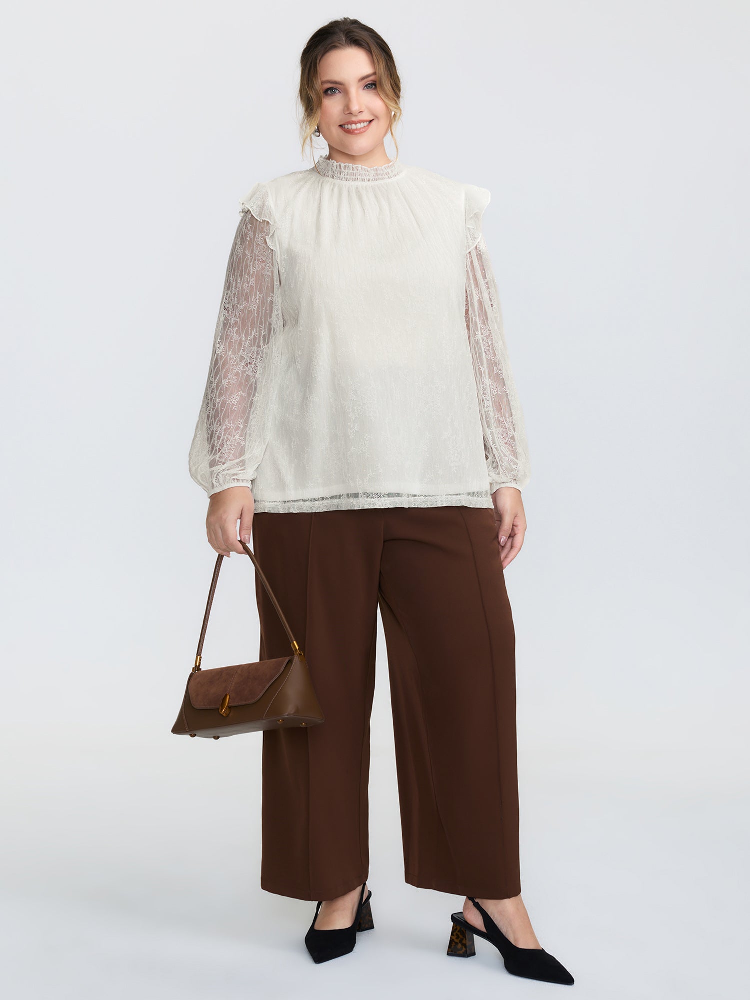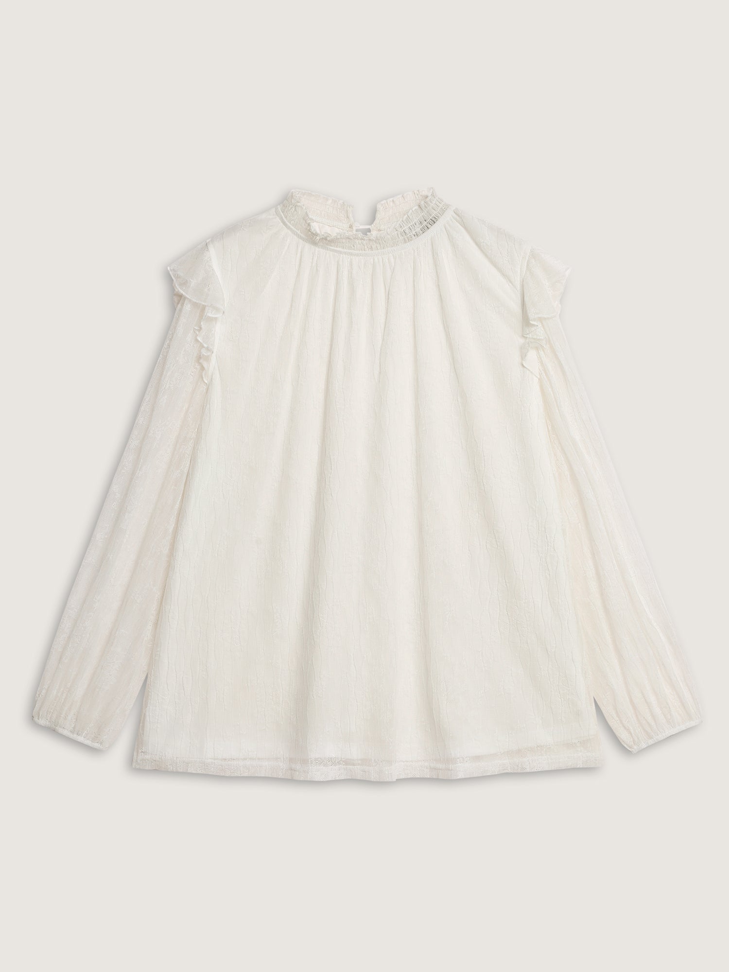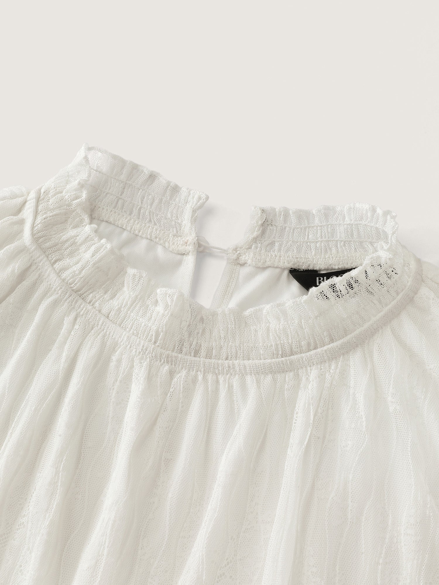 Shop Pleated Lace Mock Neckline Sheer Blouse now and redefine your style with confidence at BloomChic. Tailored for mid and plus-size women. This trendy Tops Women, sizes 10-30. Color:Ivory;Style:Romantic;Prints:Synthetic texture;Neckline:Mock Neck;Sleeve Type:Puff Sleeve;Pocket:No-pocket