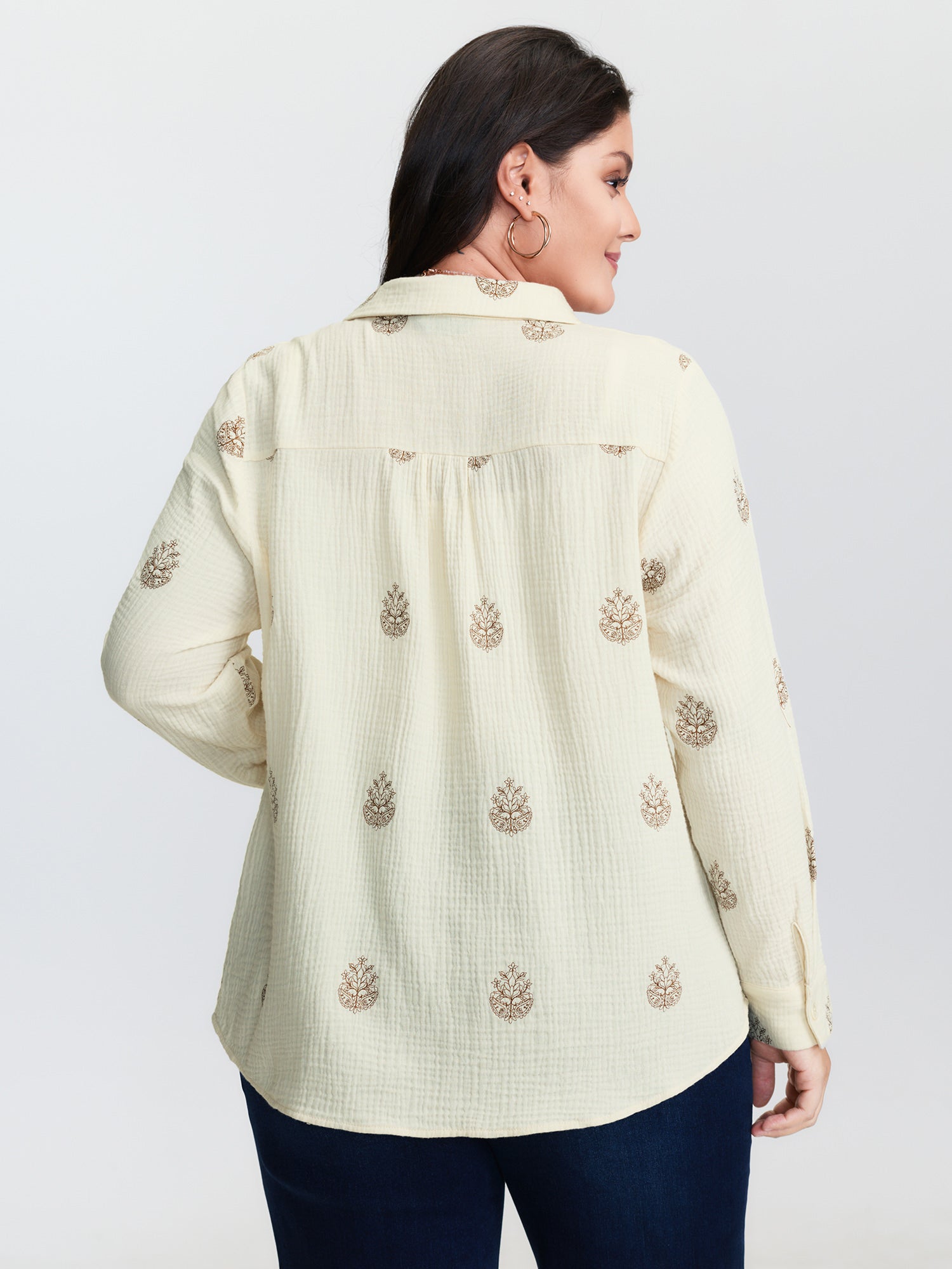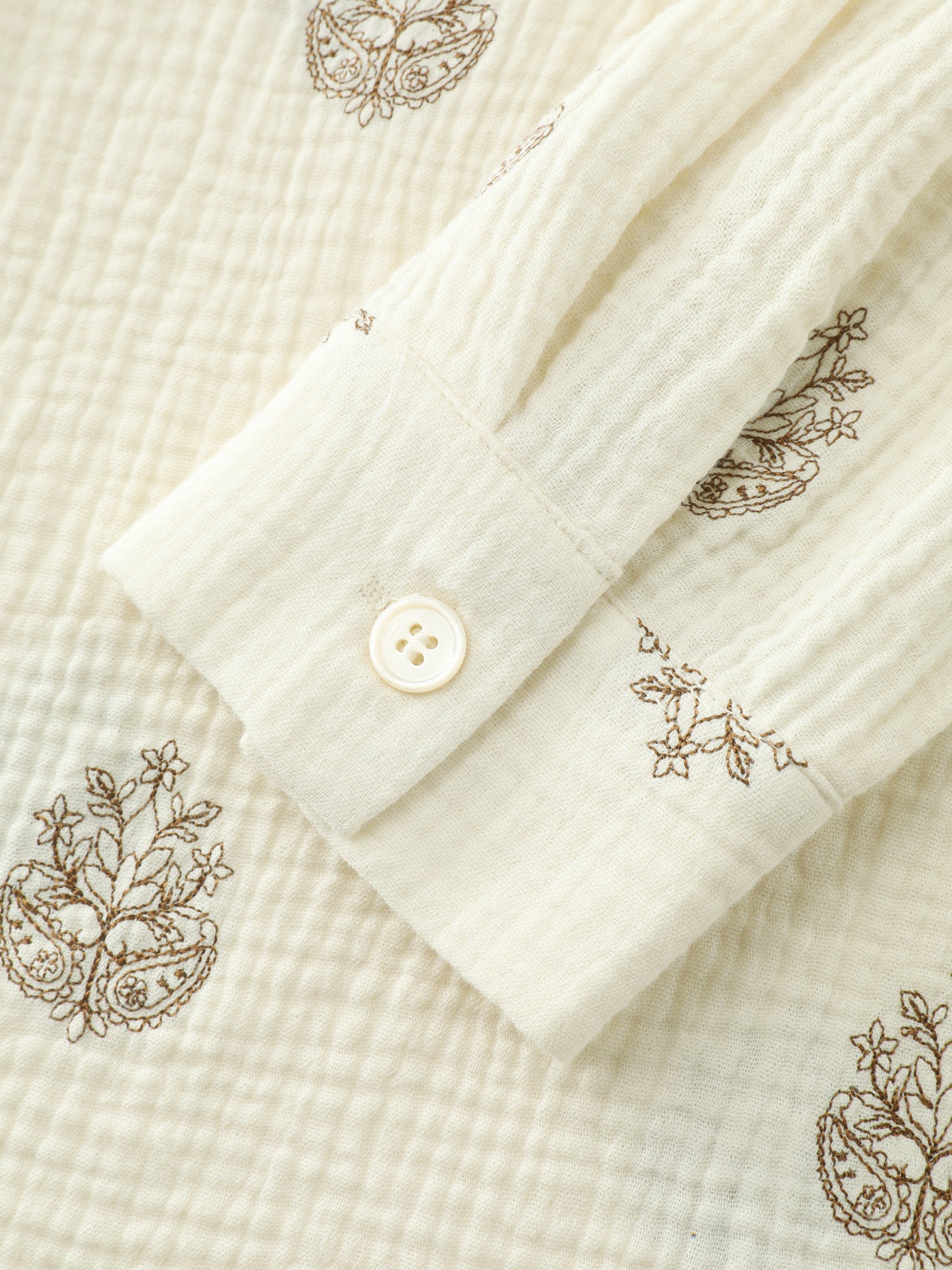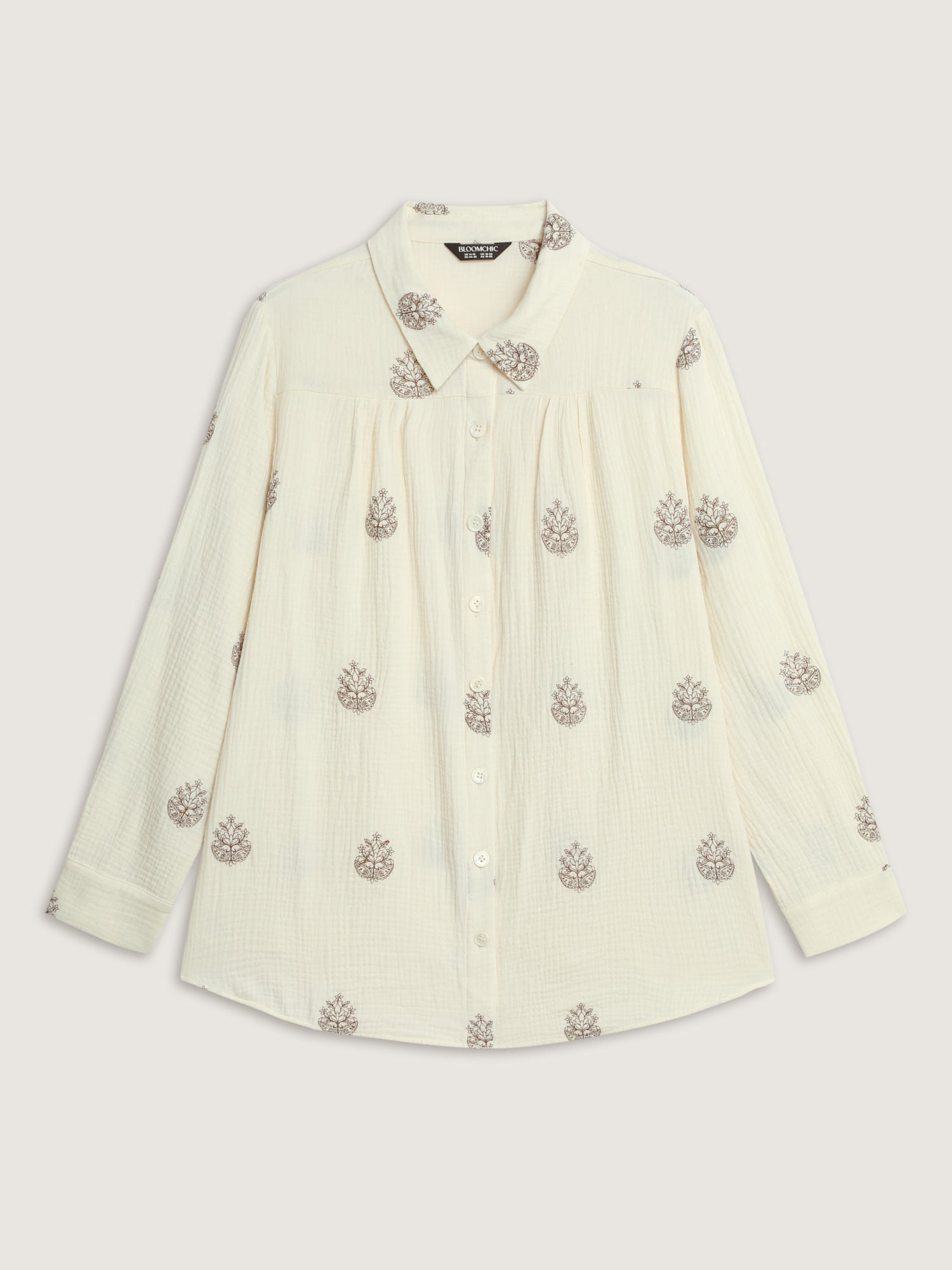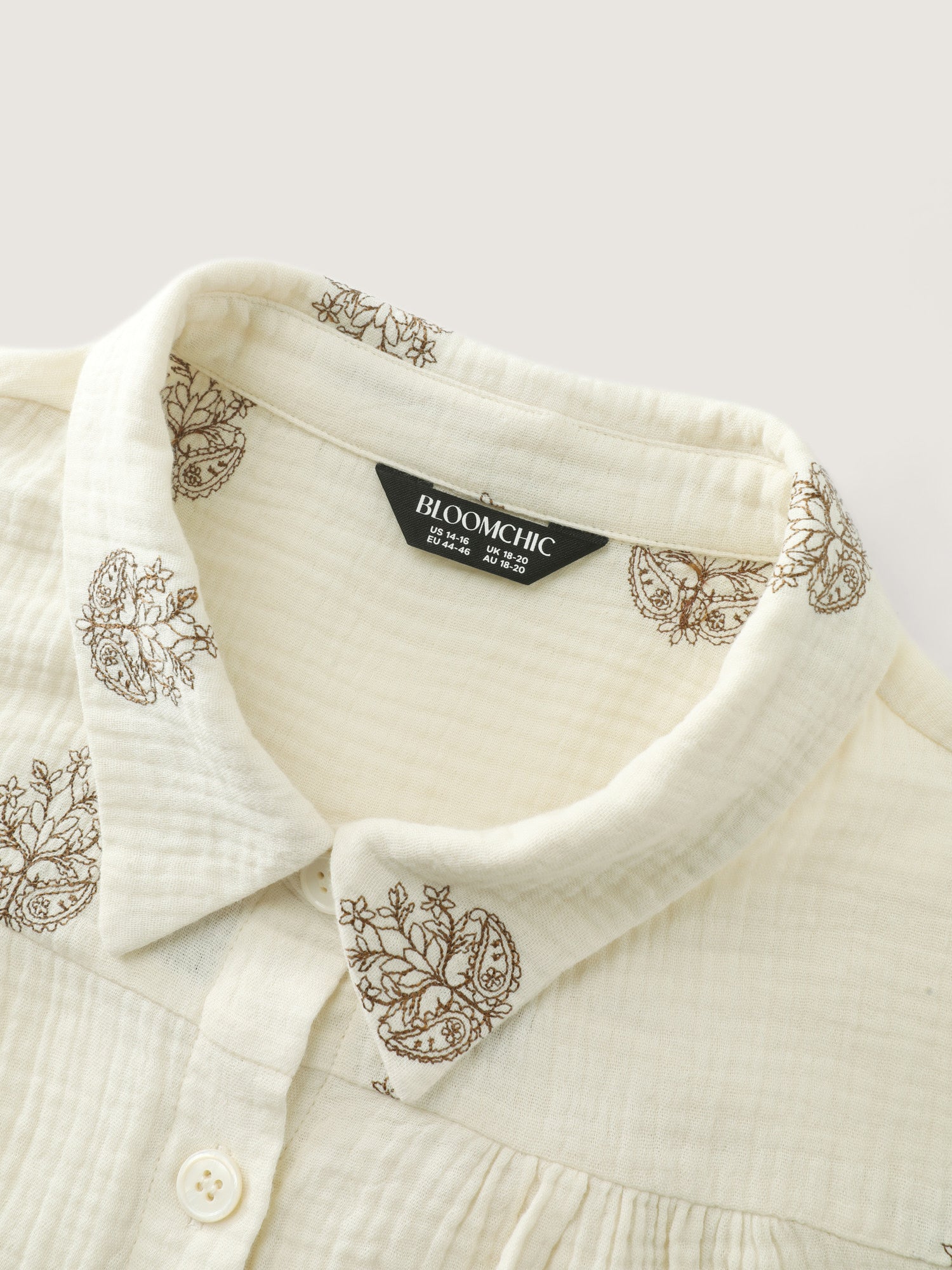 Shop Pure Cotton Embroidered Button-Down Shirt now and redefine your style with confidence at BloomChic. Tailored for mid and plus-size women. This trendy Tops Women, sizes 10-30. Color:Beige;Style:Leisure;Prints:Synthetic texture;Neckline:Shirt collar;Sleeve Type:Regular Sleeve;Details:Embroidered, Button, Texture, Gathered;Pocket:No-pocket