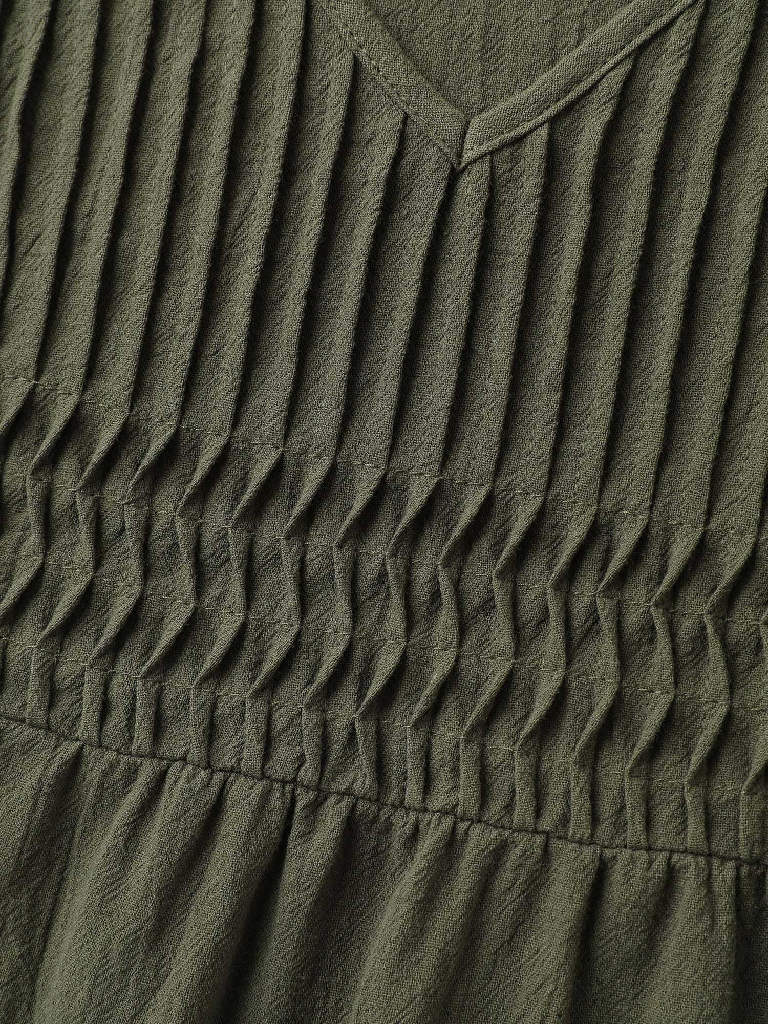 Pure Cotton Pleated V-Neck Blouse