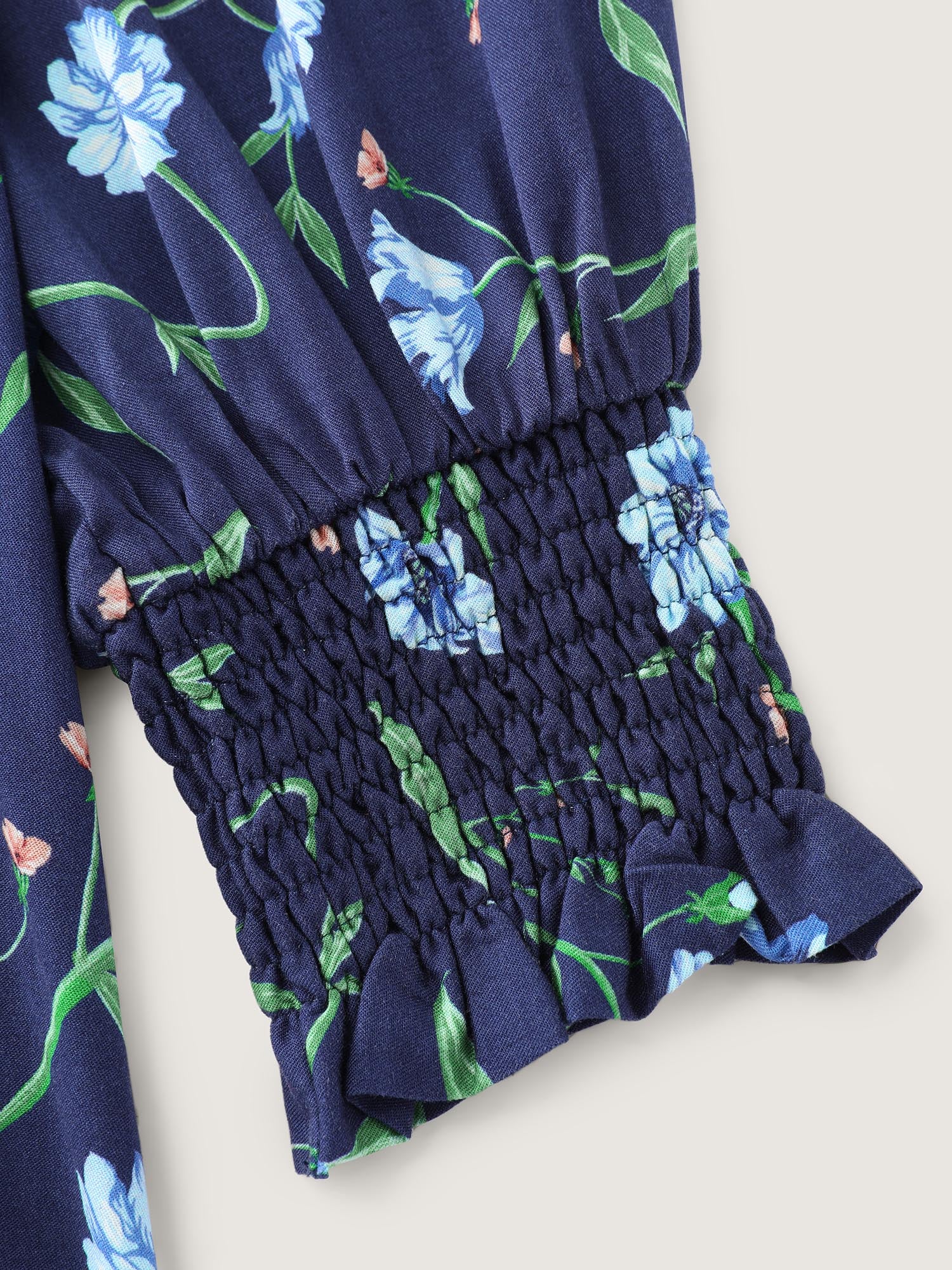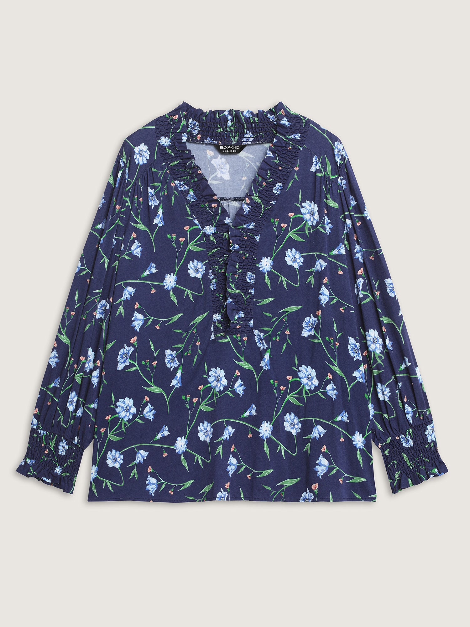Shop Rayon Floral Print Shirred Collar Blouse now and redefine your style with confidence at BloomChic. Tailored for mid and plus-size women. This trendy Tops Women, sizes 10-30. Color:Mediumblue;Style:Romantic;Prints:Floral;Neckline:V-neck;Sleeve Type:Puff Sleeve;Pocket:No-pocket
