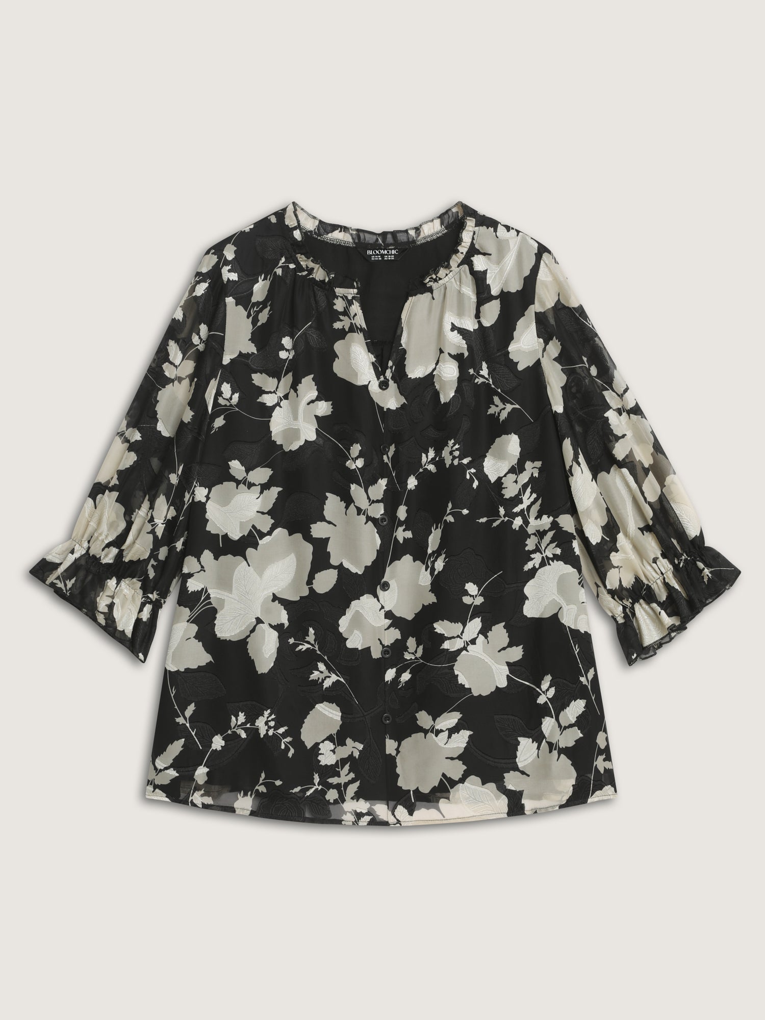 Shop Ruffled Collar Floral Print Blouse now and redefine your style with confidence at BloomChic. Tailored for mid and plus-size women. This trendy Tops Women, sizes 10-30. Color:Black Flower;Style:Timeless;Prints:Ditsy floral;Neckline:Notched collar;Sleeve Type:Puff Sleeve;Details:See through, Contrast, Frill Trim;Pocket:No-pocket