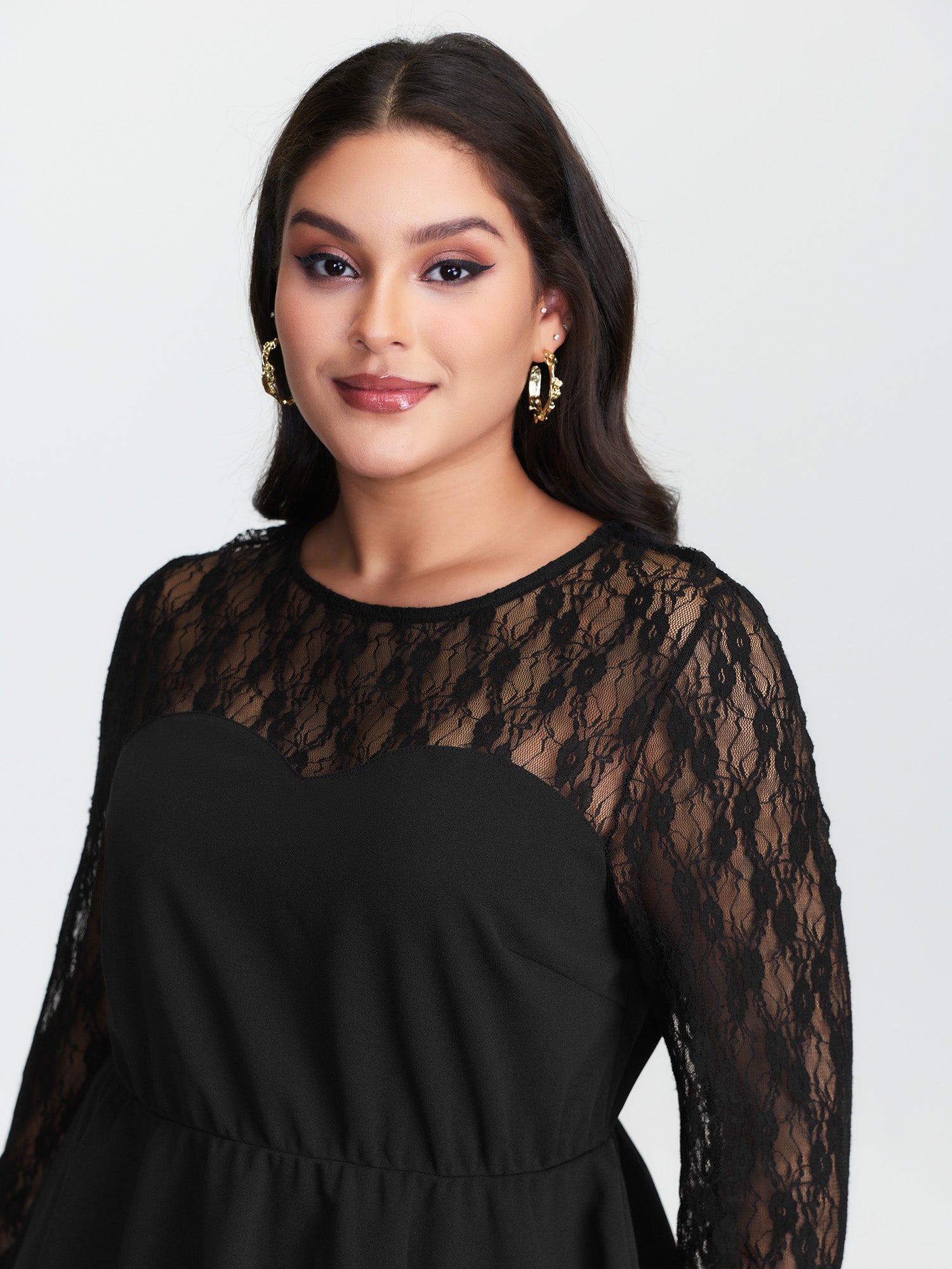 Shop Sheer Lace Crisscross Plain Top now and redefine your style with confidence at BloomChic. Tailored for mid and plus-size women. This trendy Tops Women, sizes 10-30. Color:Black;Style:Romantic;Prints:Synthetic texture;Neckline:Round Neck;Sleeve Type:Regular Sleeve;Details:Patchwork, Gathered, See through;Pocket:No-pocket