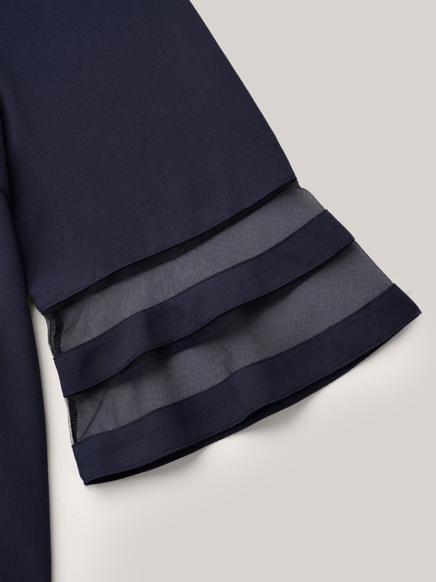 • Sheer Sleeve Patchwork Asymmetrical Neckline Blouse