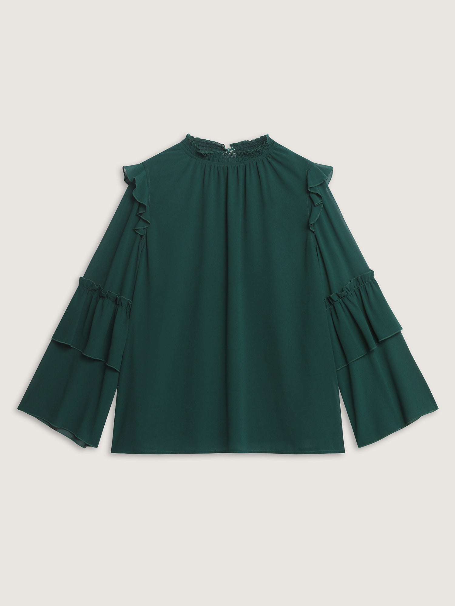Shirred Layered Ruffled Sheer Sleeve Blouse