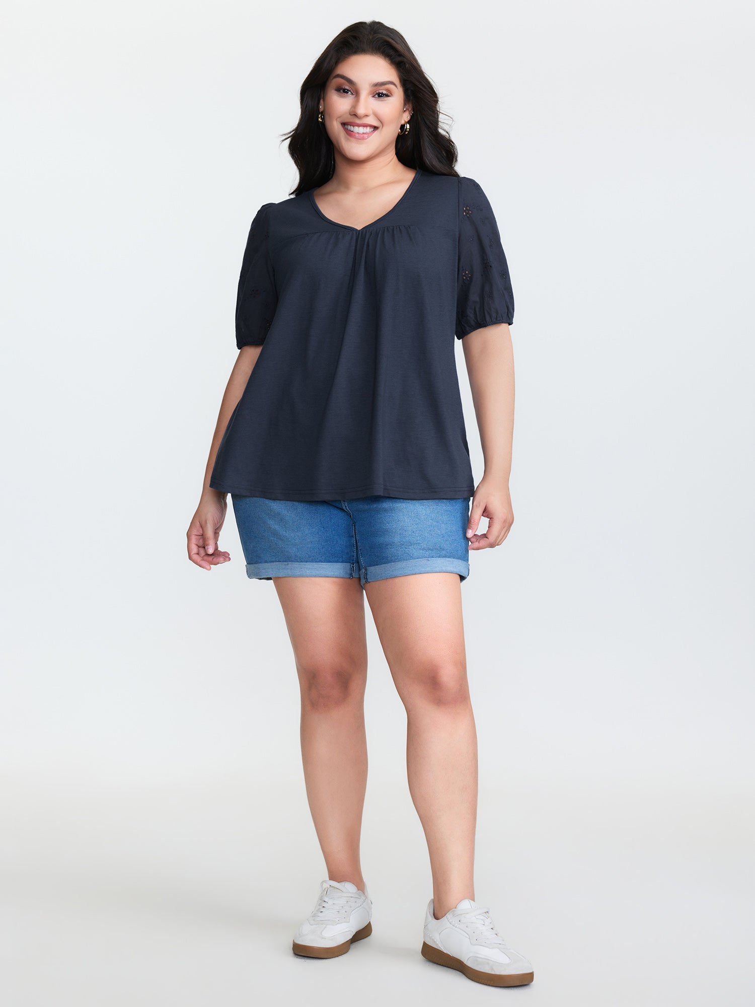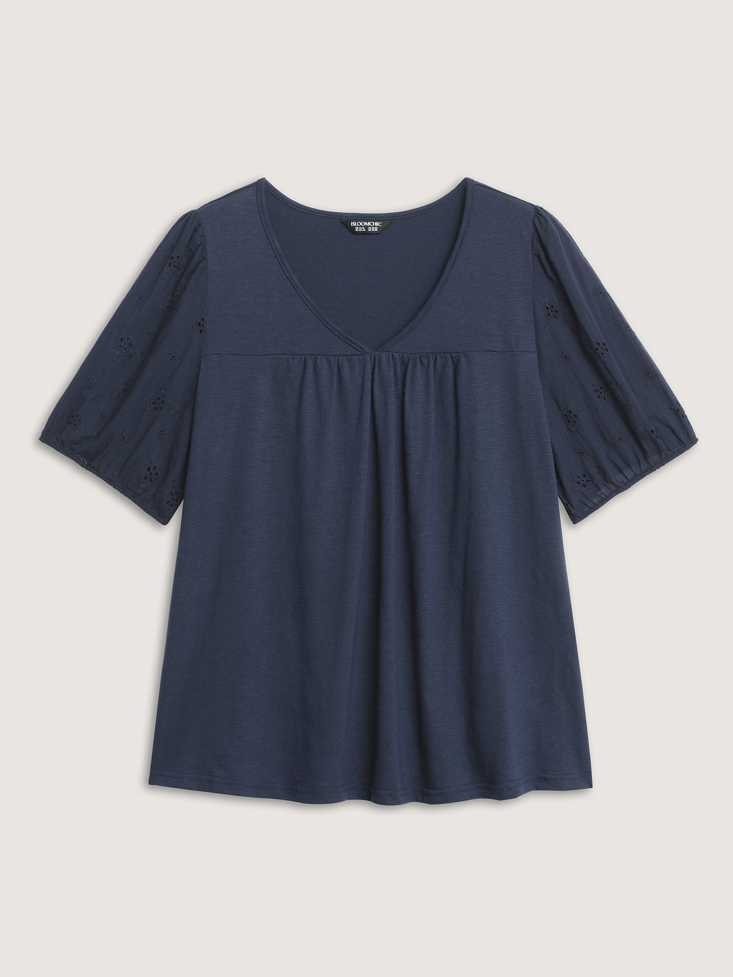 Shop Slub Textured Embroidered Knit Top now and redefine your style with confidence at BloomChic. Tailored for mid and plus-size women. This trendy Tops Women, sizes 10-30. Color:Indigo;Style:Leisure;Prints:Non;Neckline:V-neck;Sleeve Type:Lantern Sleeve;Details:Gathered, Embroidered;Pocket:No-pocket