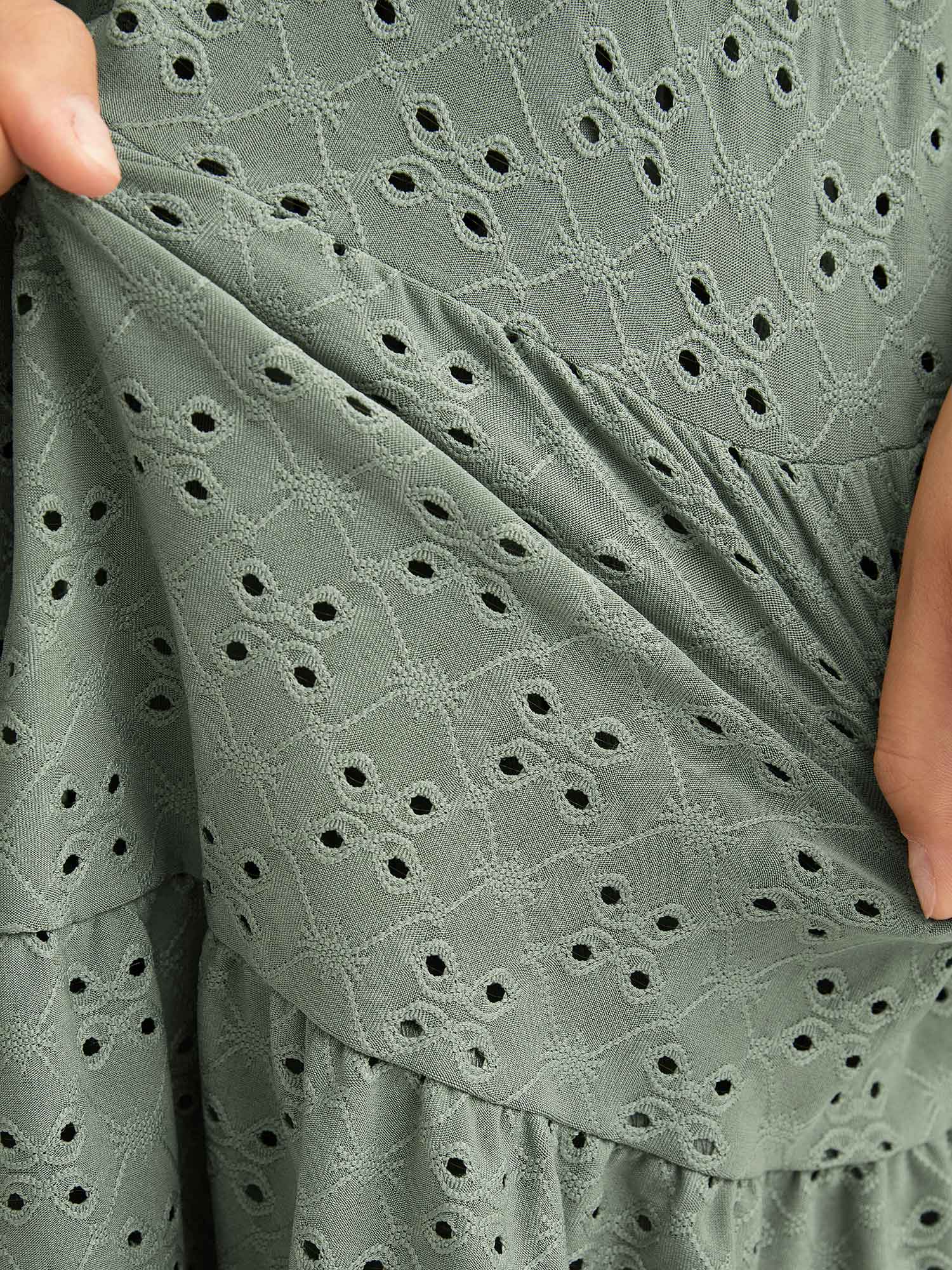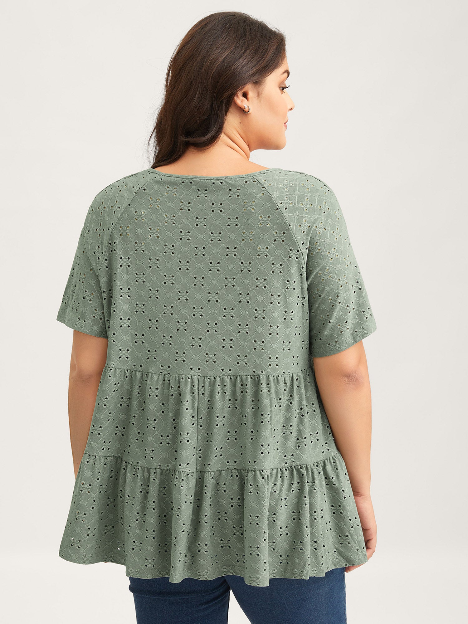 Solid Broderie Anglaise Ruffle Layered Hem T-shirt
