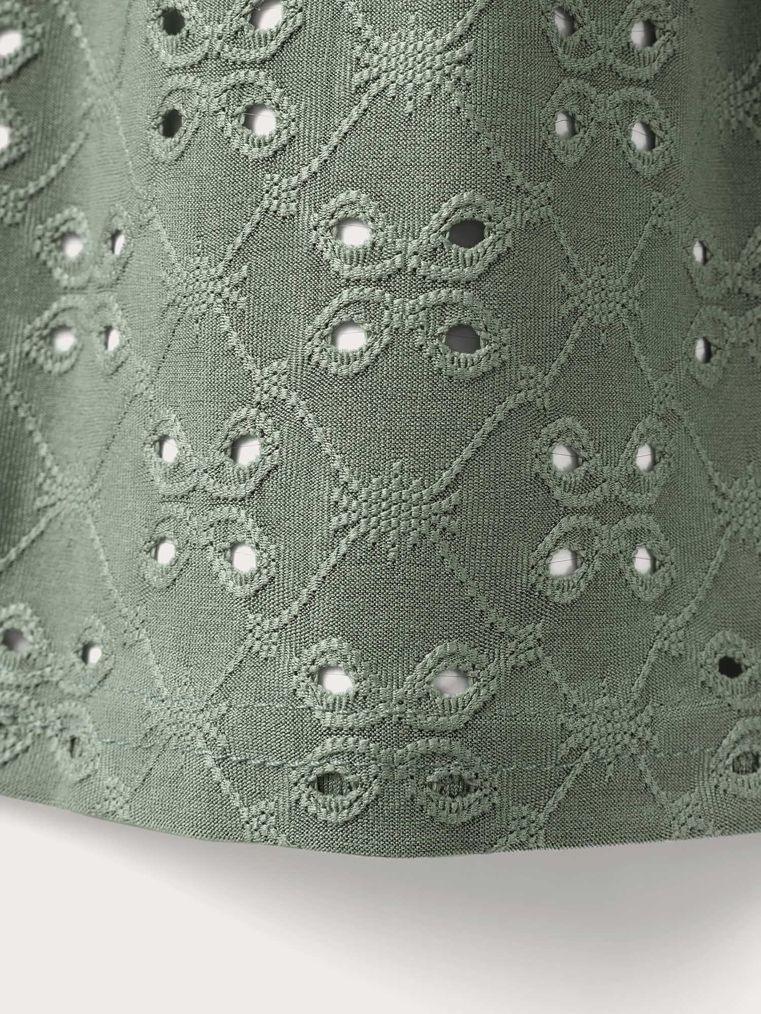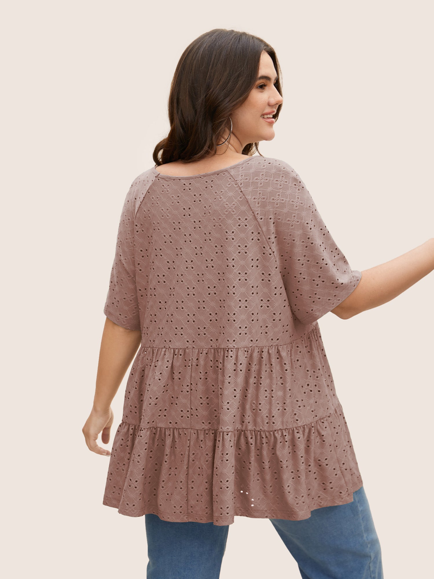 • Solid Broderie Anglaise Ruffle Layered Hem T-shirt