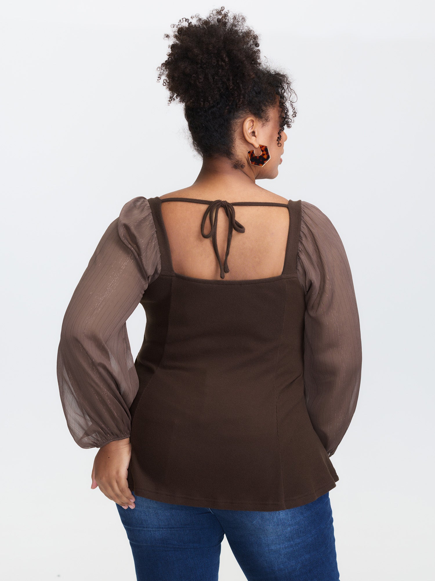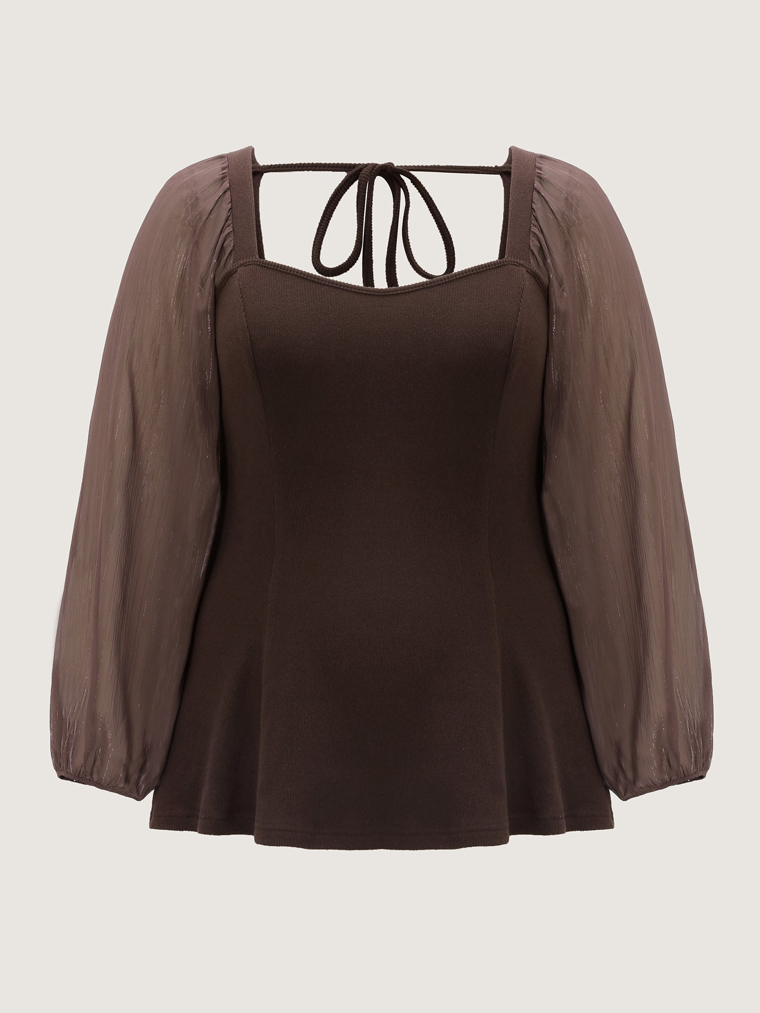 Shop Stretchy Ribbed Luxe Back-Tie Knit Top now and redefine your style with confidence at BloomChic. Tailored for mid and plus-size women. This trendy Tops Women, sizes 10-30. Color:DarkBrown;Style:Timeless;Prints:Non;Neckline:Heart neckline;Sleeve Type:Puff Sleeve;Details:Backless, Cut-Out, Knotted, Patchwork, See through, Gathered;Pocket:No-pocket