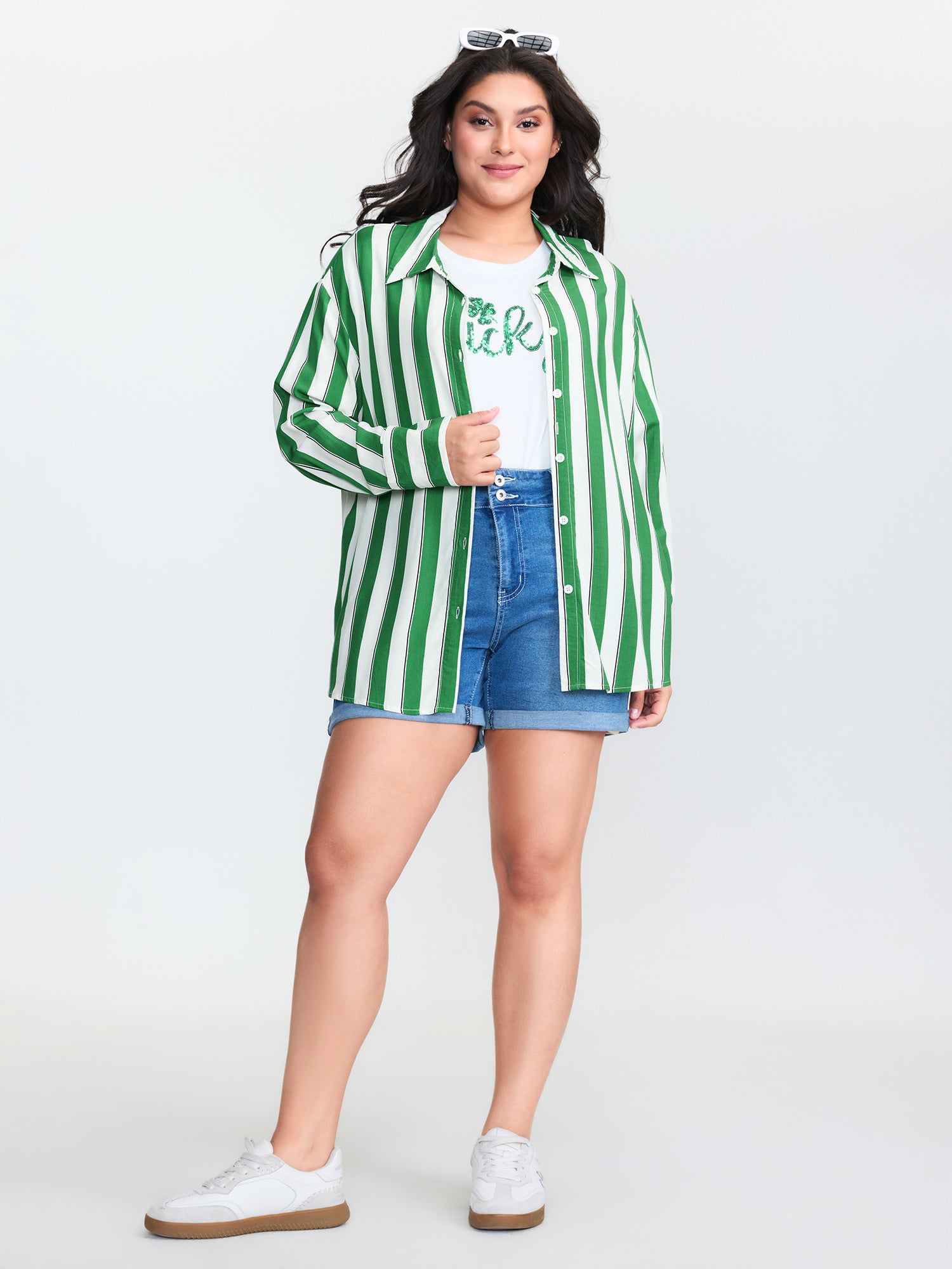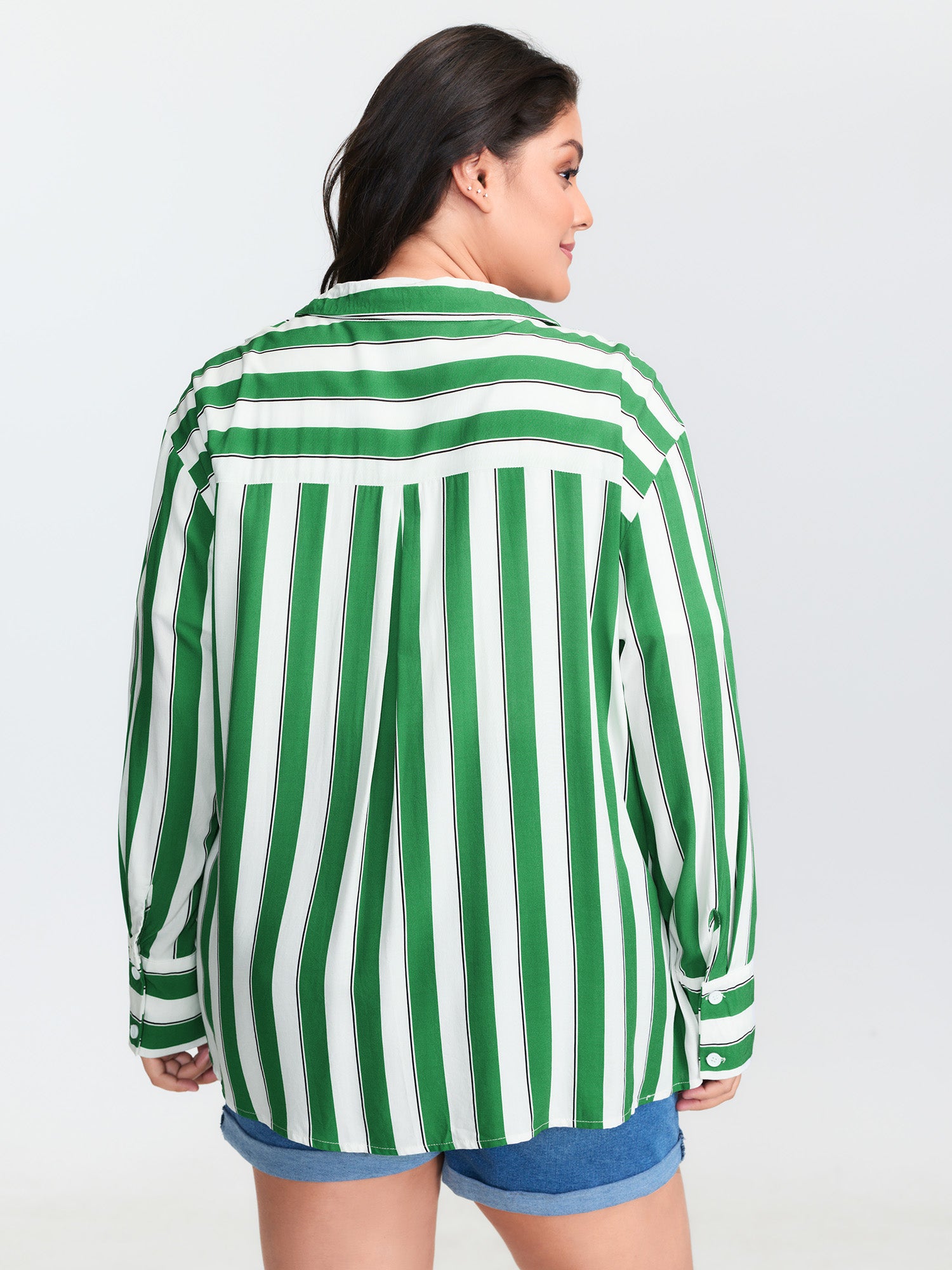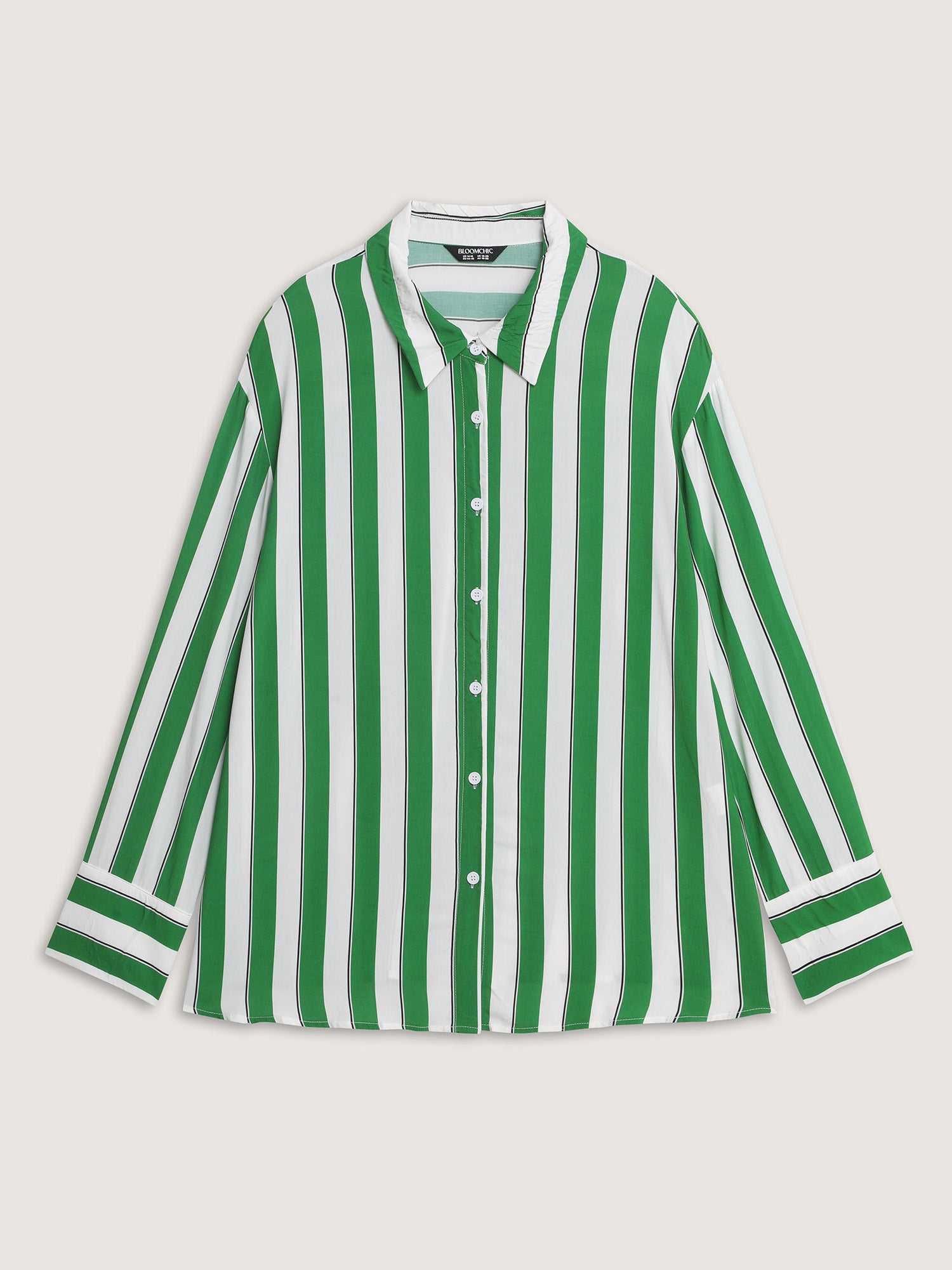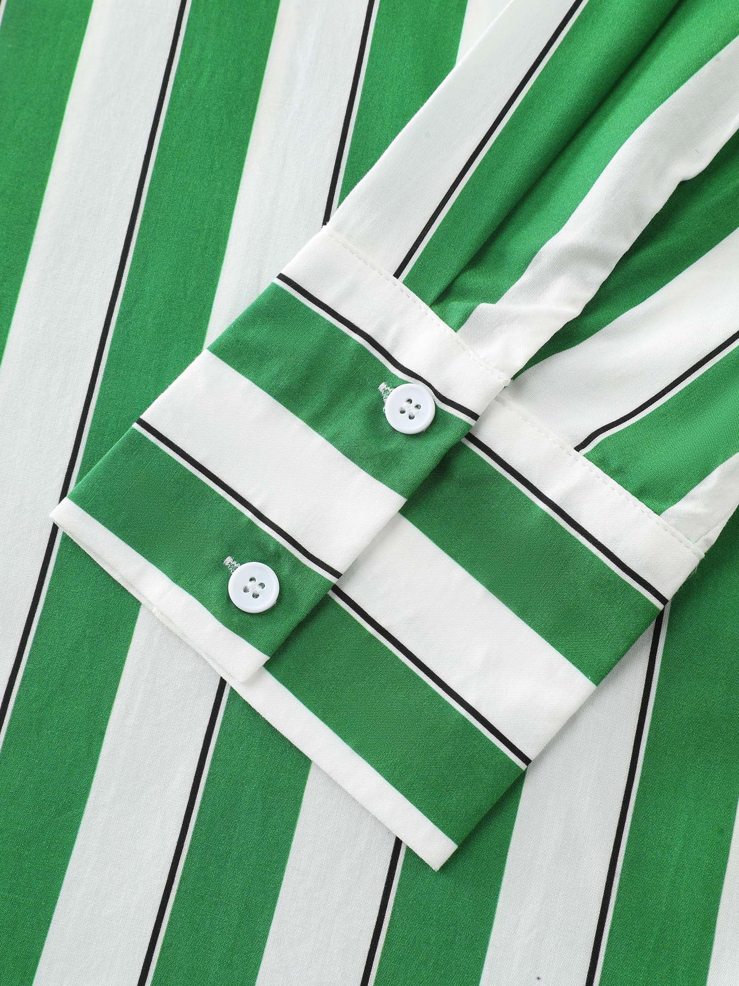 Shop Striped Print Pleated Button-Down Shirt now and redefine your style with confidence at BloomChic. Tailored for mid and plus-size women. This trendy Tops Women, sizes 10-30. Color:True Green;Style:Playful;Prints:Stripes;Neckline:Polo;Sleeve Type:Gathered cuff;Details:Button;Pocket:No-pocket