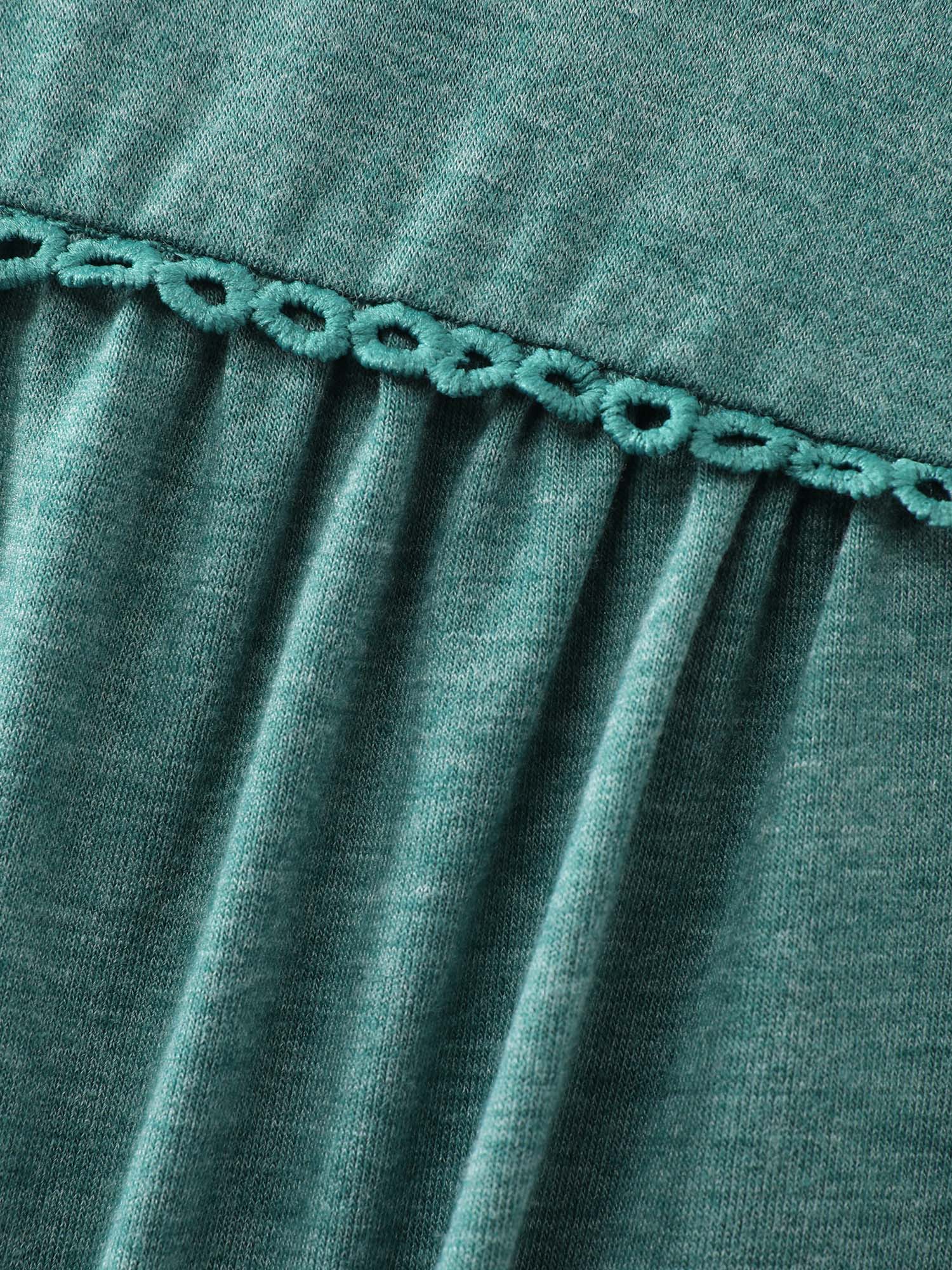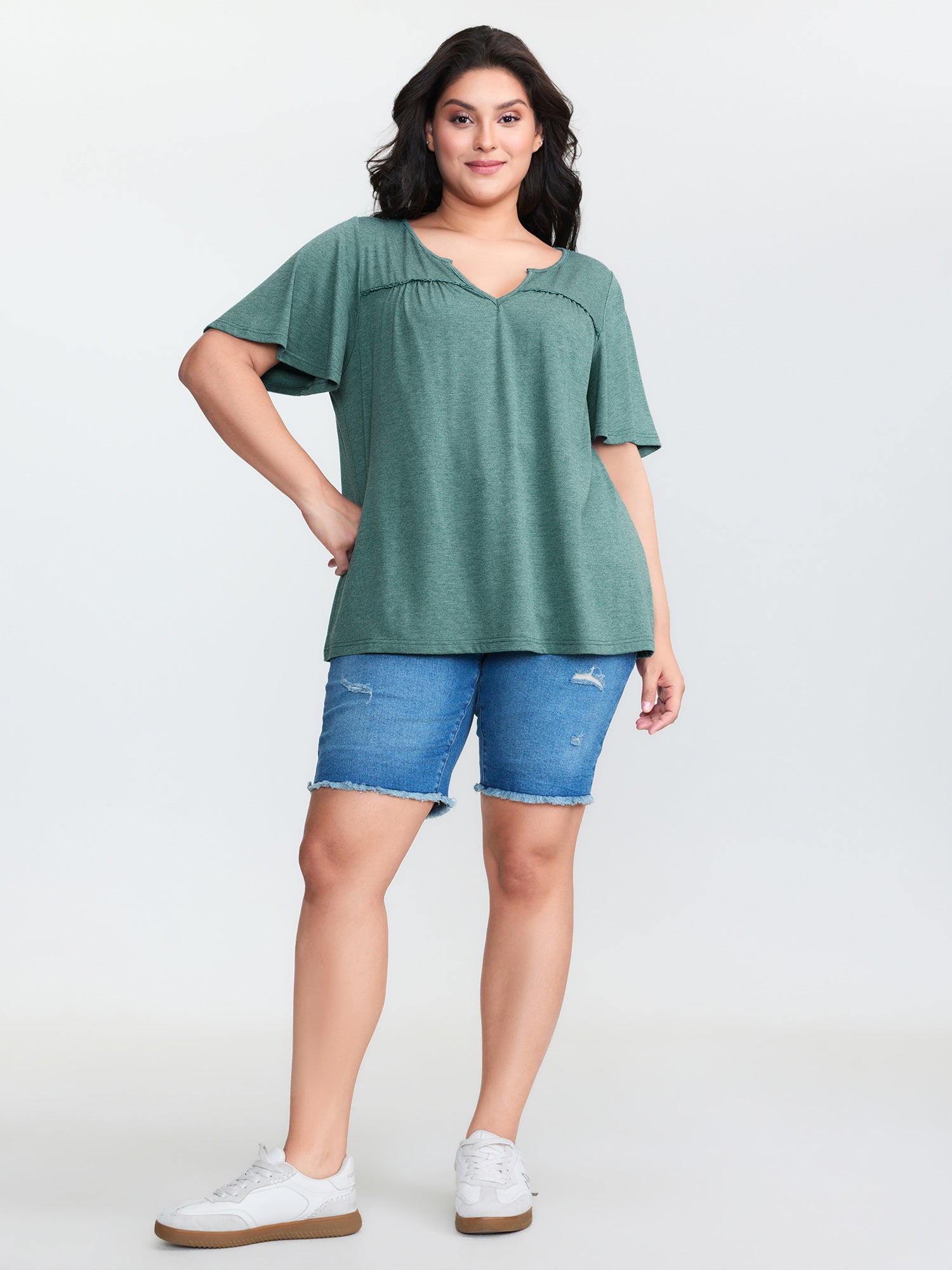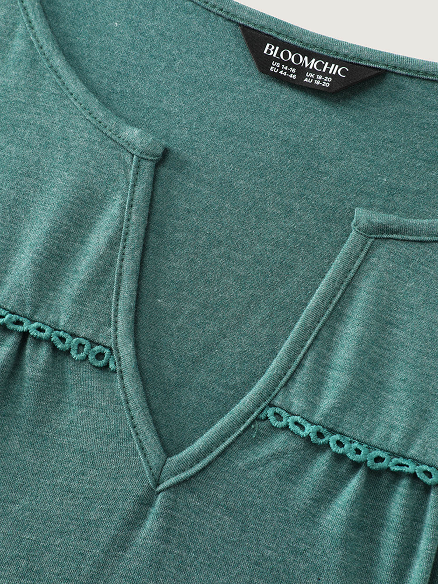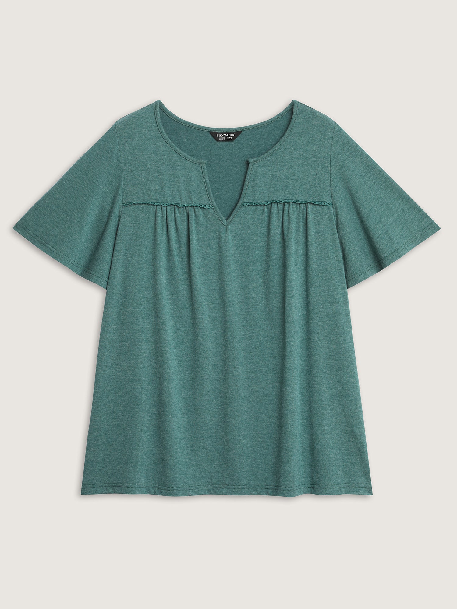 Shop Supersoft Lace Trim Neckline Knit Top now and redefine your style with confidence at BloomChic. Tailored for mid and plus-size women. This trendy Tops Women, sizes 10-30. Color:Dark Green;Style:Leisure;Prints:Non;Neckline:Notched collar;Sleeve Type:Ruffle Sleeve;Details:Woven ribbon&lace trim;Pocket:No-pocket