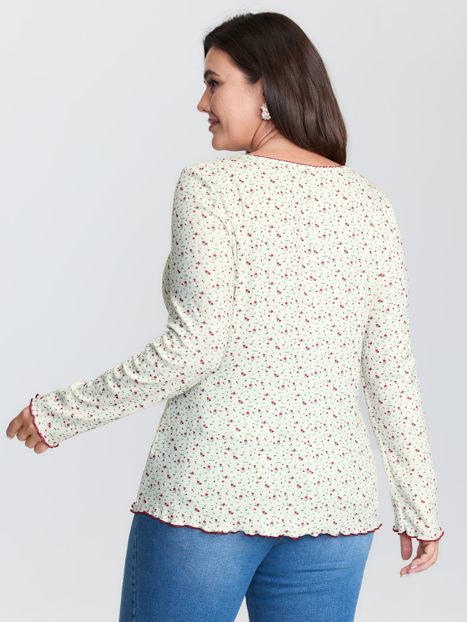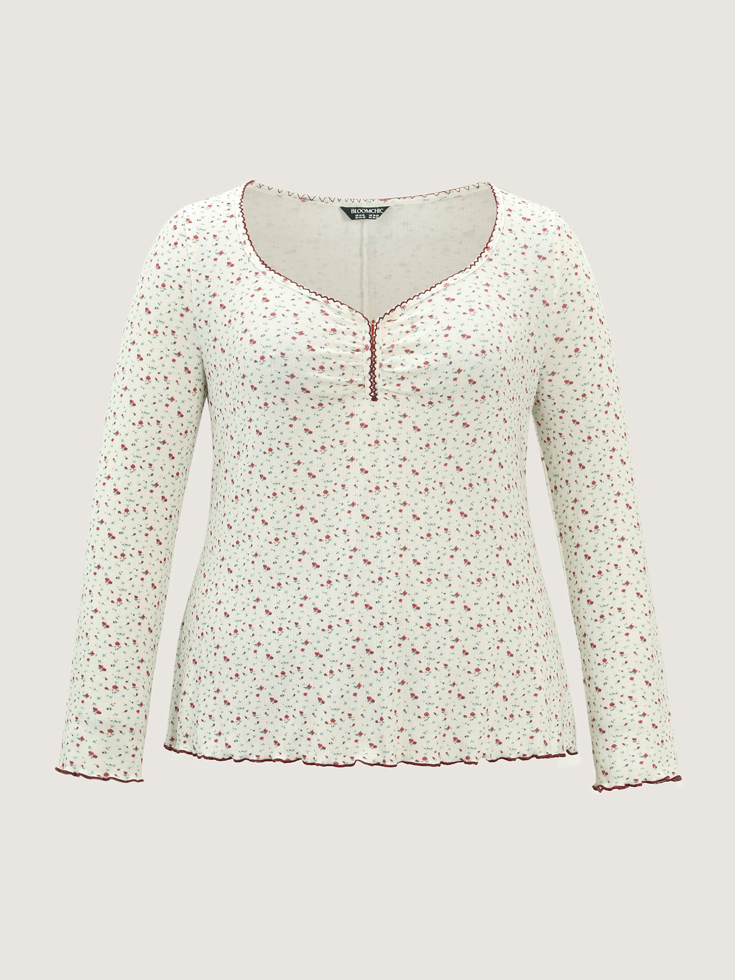 Shop Supersoft Micro Floral Print Knit Top now and redefine your style with confidence at BloomChic. Tailored for mid and plus-size women. This trendy Tops Women, sizes 10-30. Color:Beige;Style:Timeless;Prints:Ditsy floral;Neckline:Heart neckline;Sleeve Type:Regular Sleeve;Details:Texture, Contrast;Pocket:No-pocket