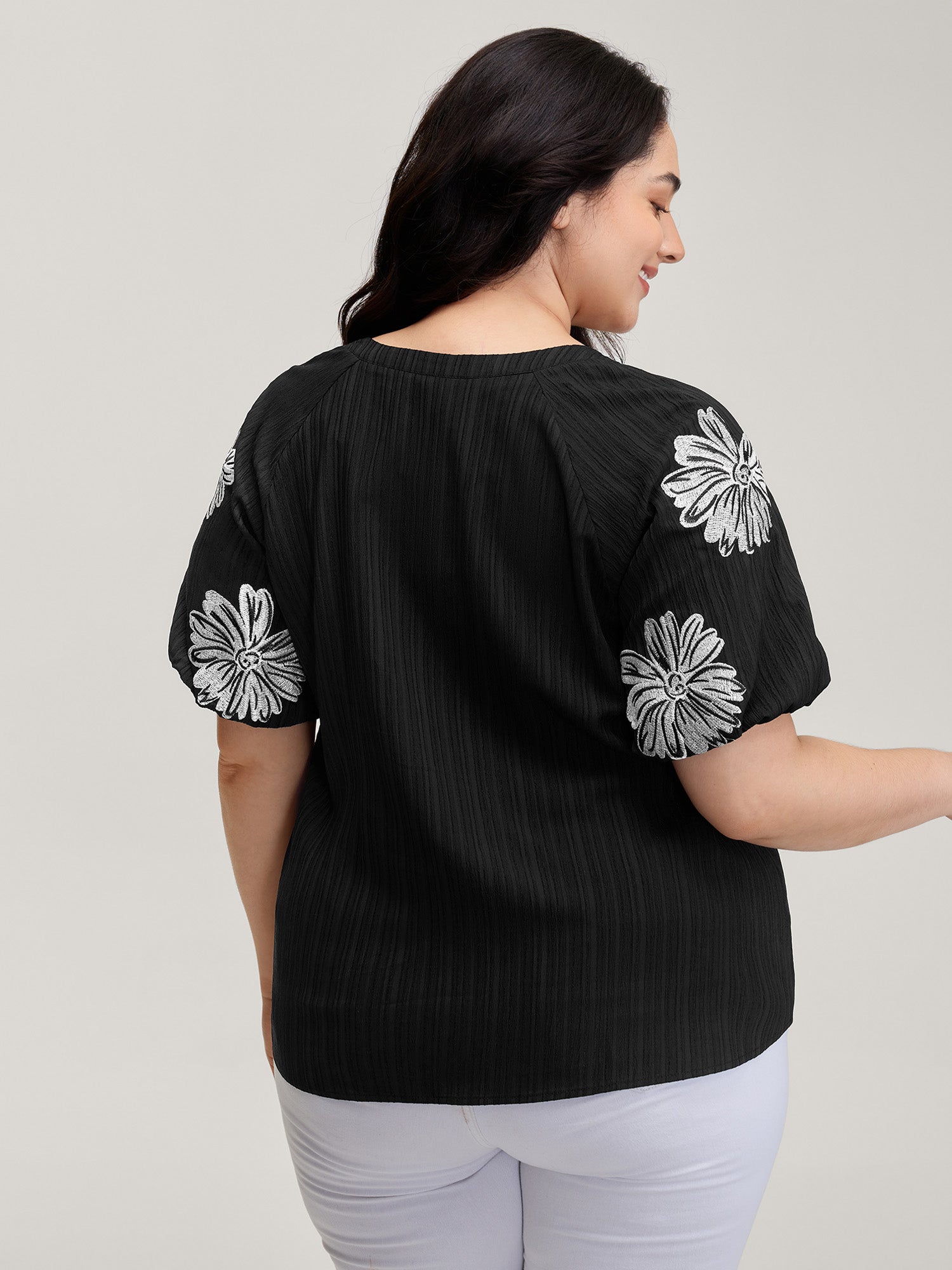 Textured Floral Embroidered Notched Collar Blouse