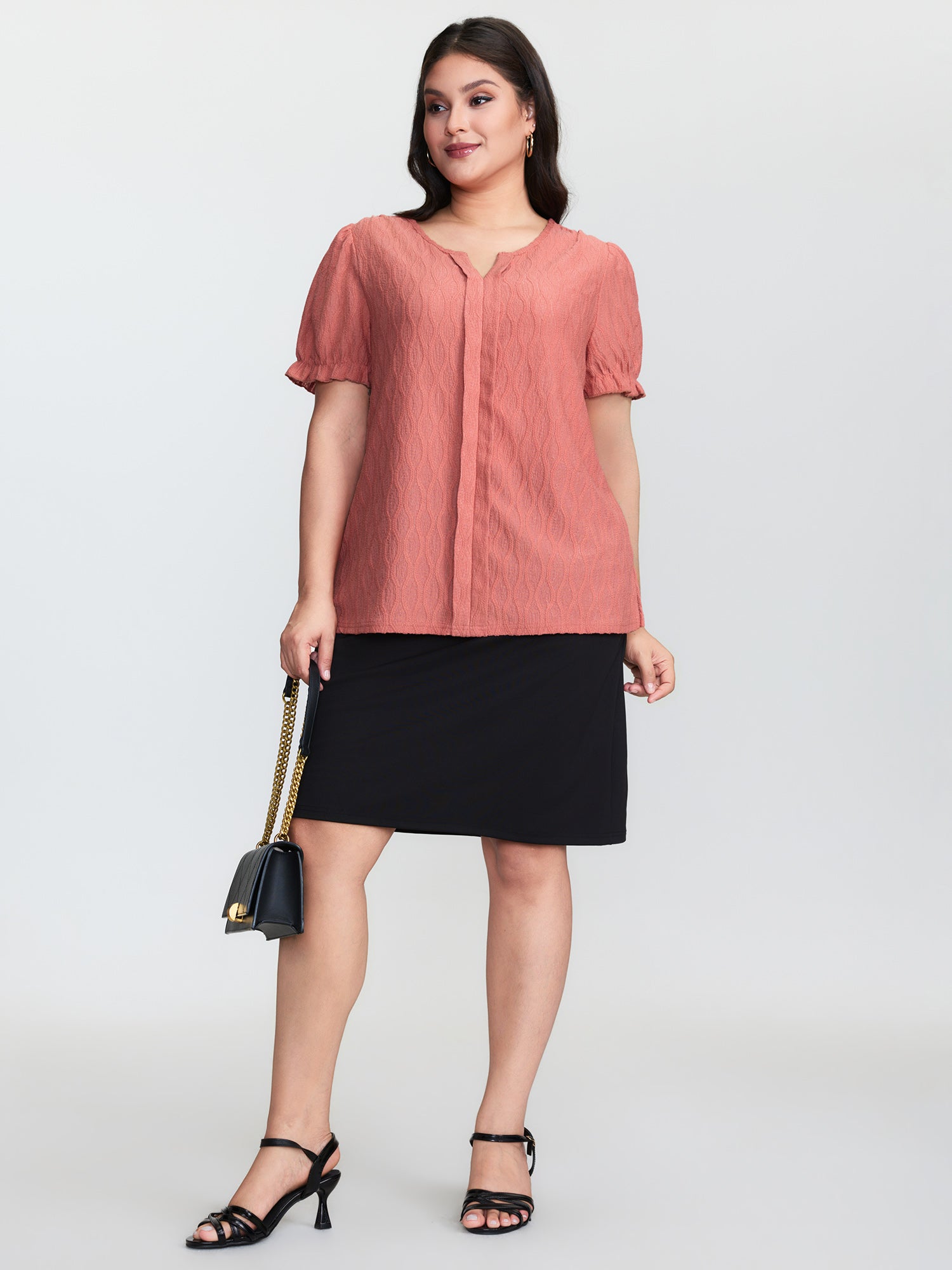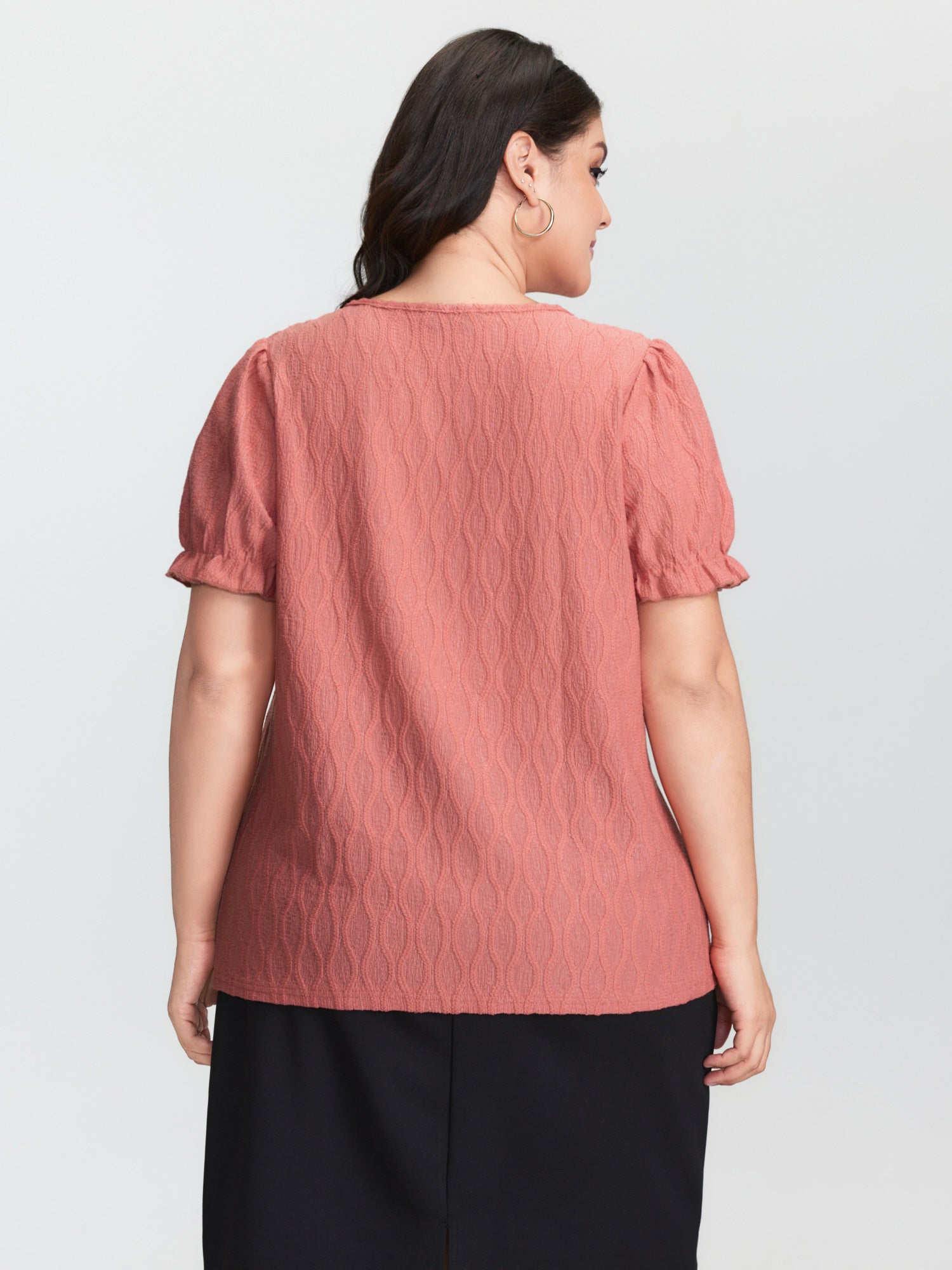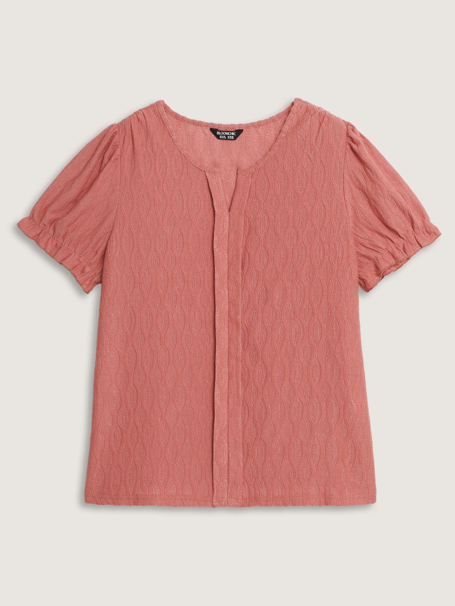 Shop Textured Knot Placket Shirred Cuff Sleeve Top now and redefine your style with confidence at BloomChic. Tailored for mid and plus-size women. This trendy Tops Women, sizes 10-30. Color:Coral;Style:Timeless;Prints:Synthetic texture;Neckline:Flat collar with V-notch;Sleeve Type:Lantern Sleeve;Details:Texture, Ruffles, Gathered;Pocket:No-pocket
