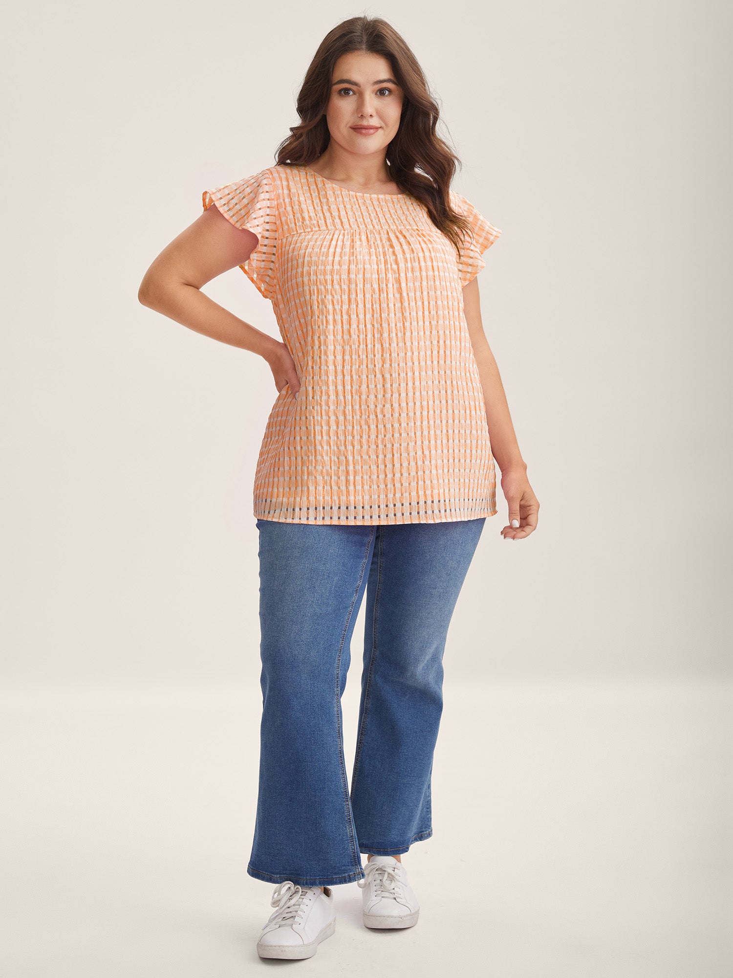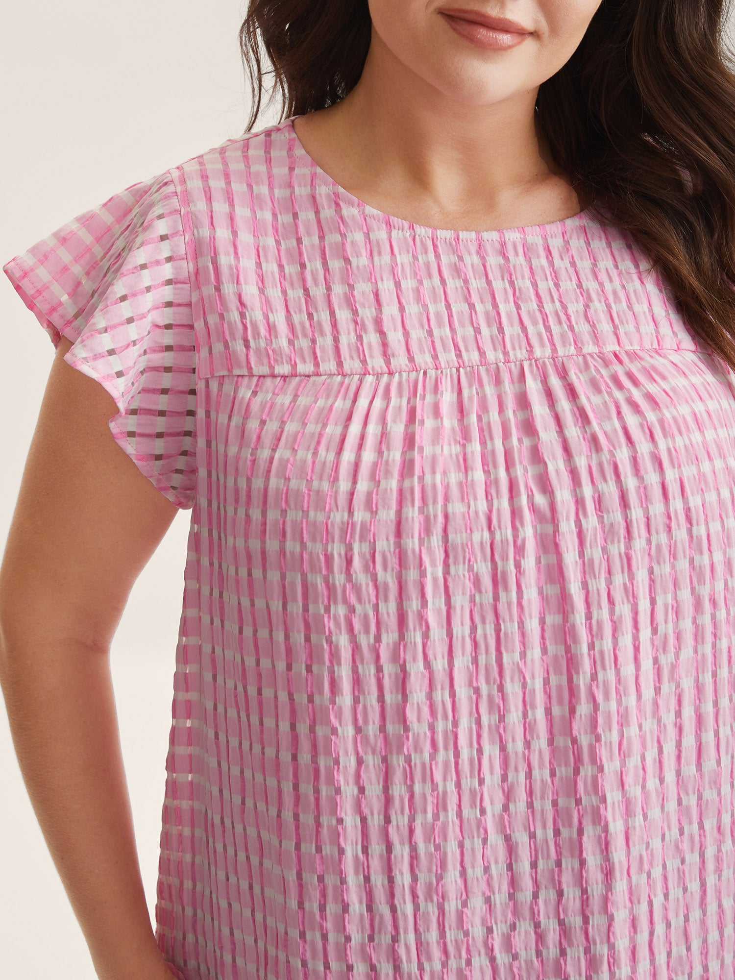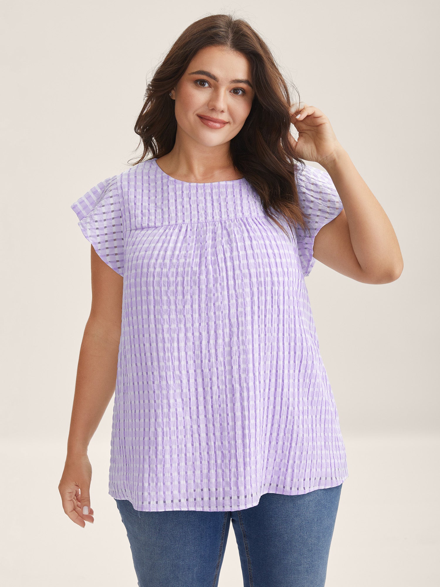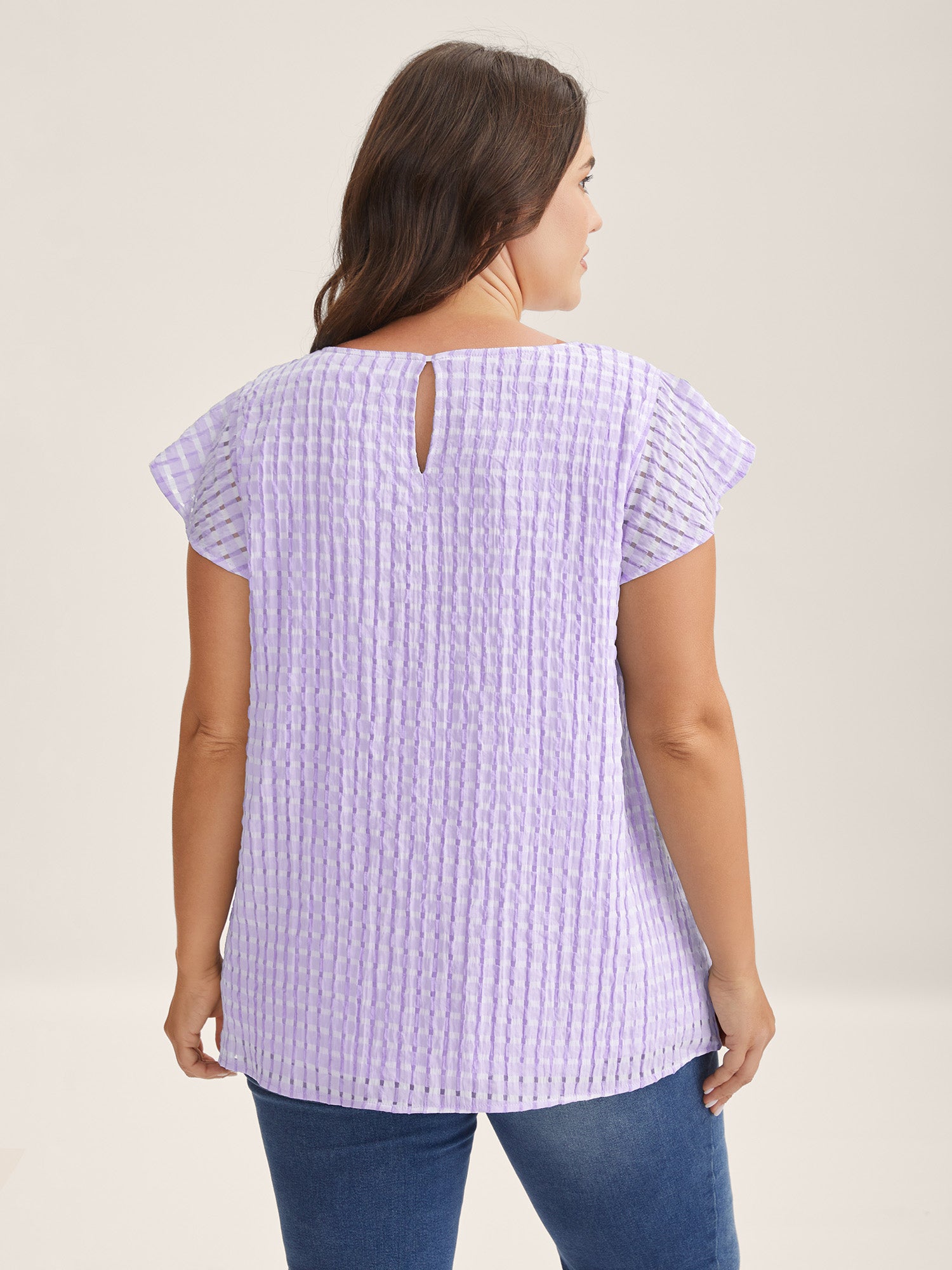 Textured Sheer Lined Flutter Sleeve Blouse