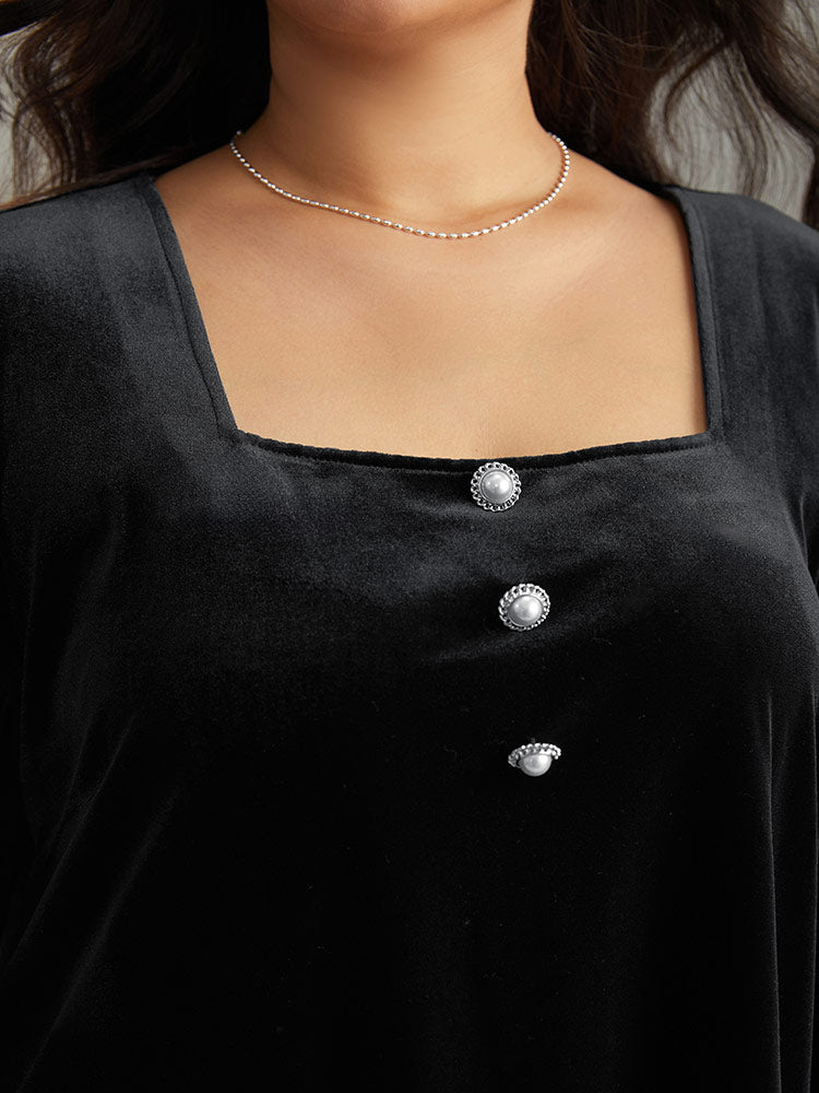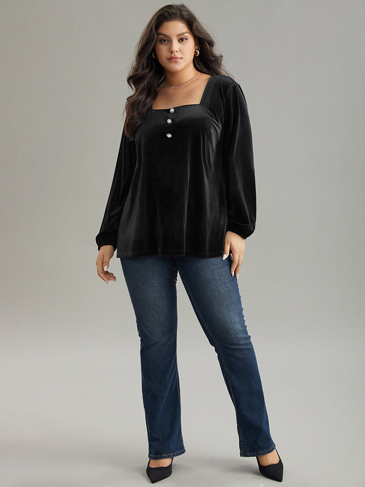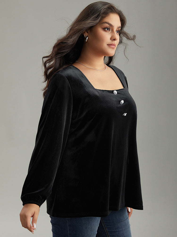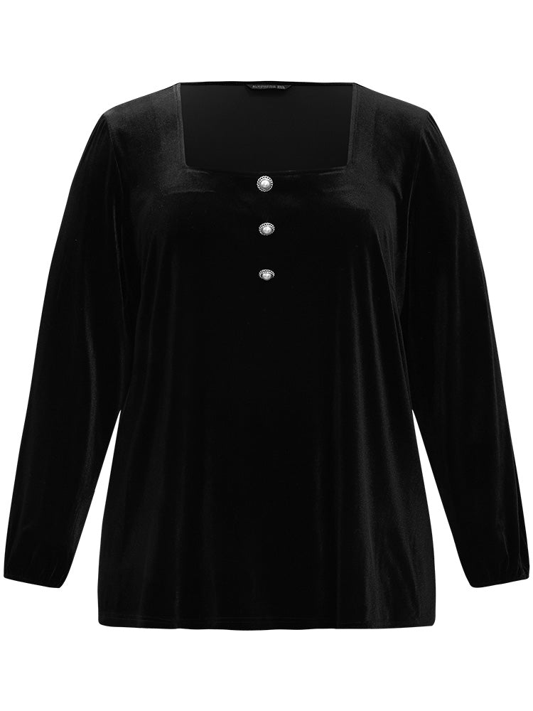 Velvet Metal Button Detail Blouse