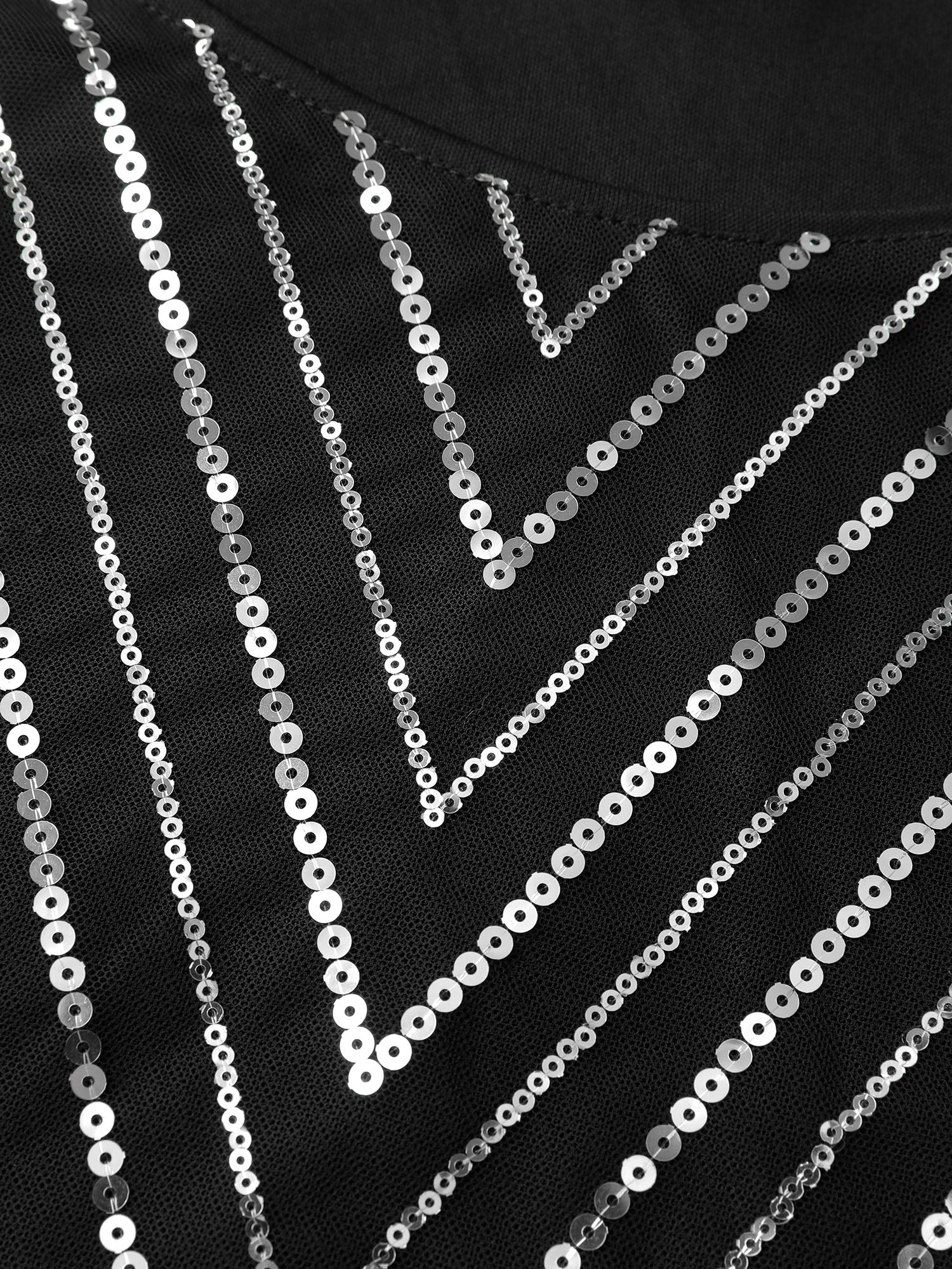Zigzag Sequin Stretchy Waist Blouse