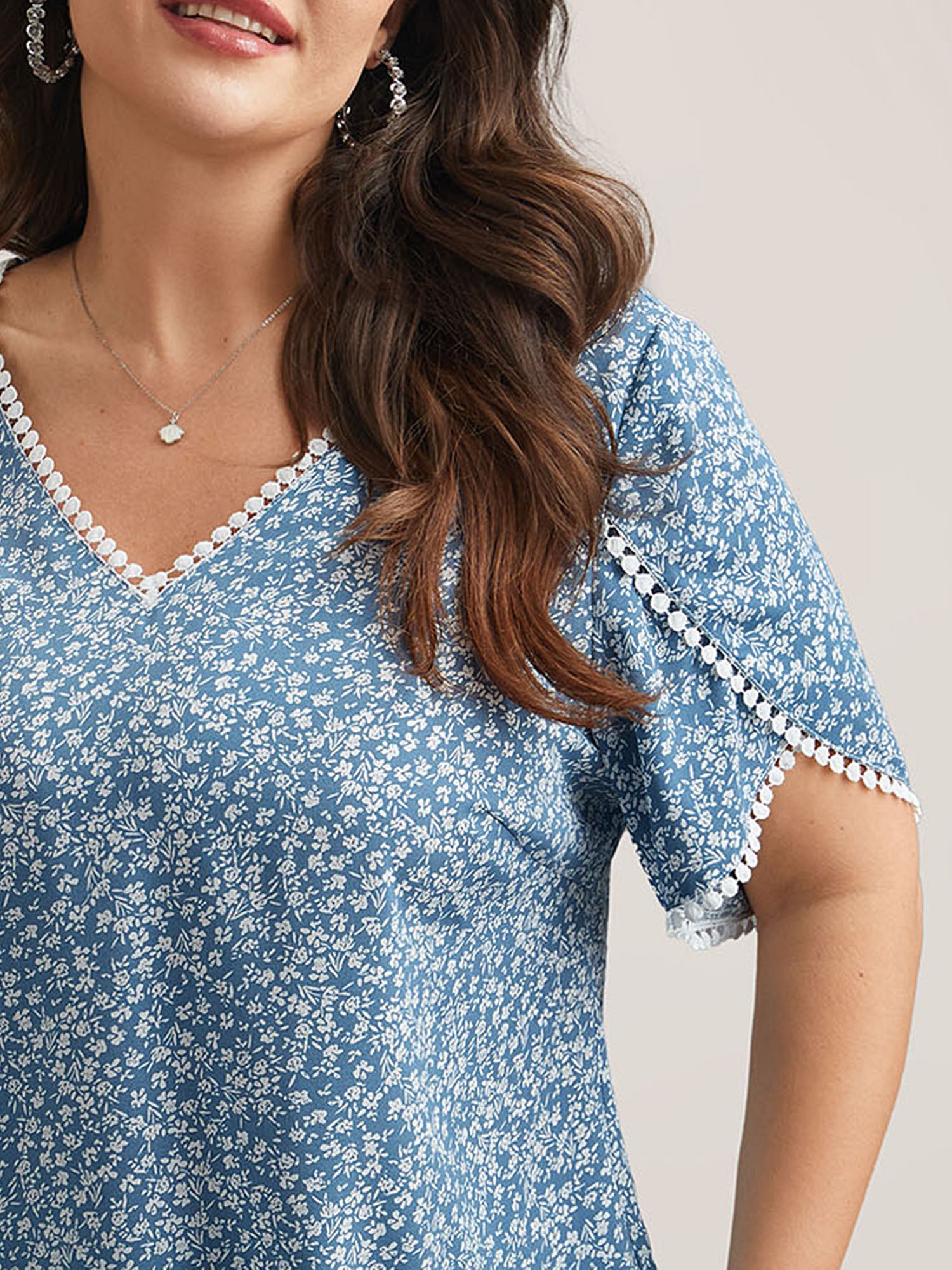 Ditsy Floral Contrast Ruffle Sleeve Button Detail Blouse