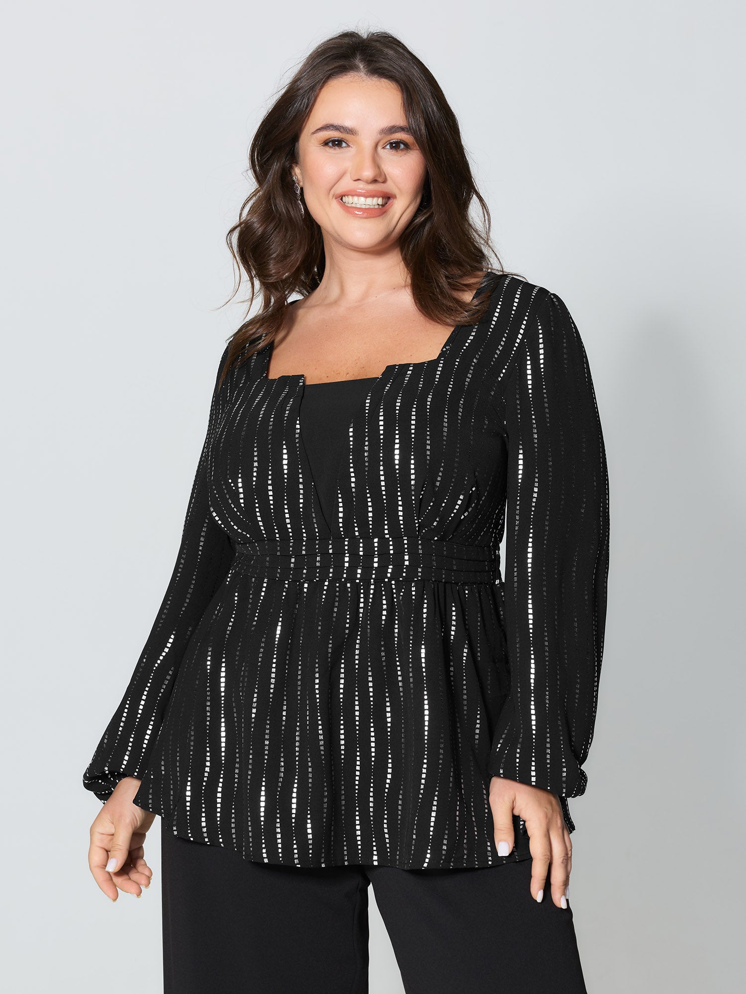 Shimmery Sequin Cinched-Waist Blouse