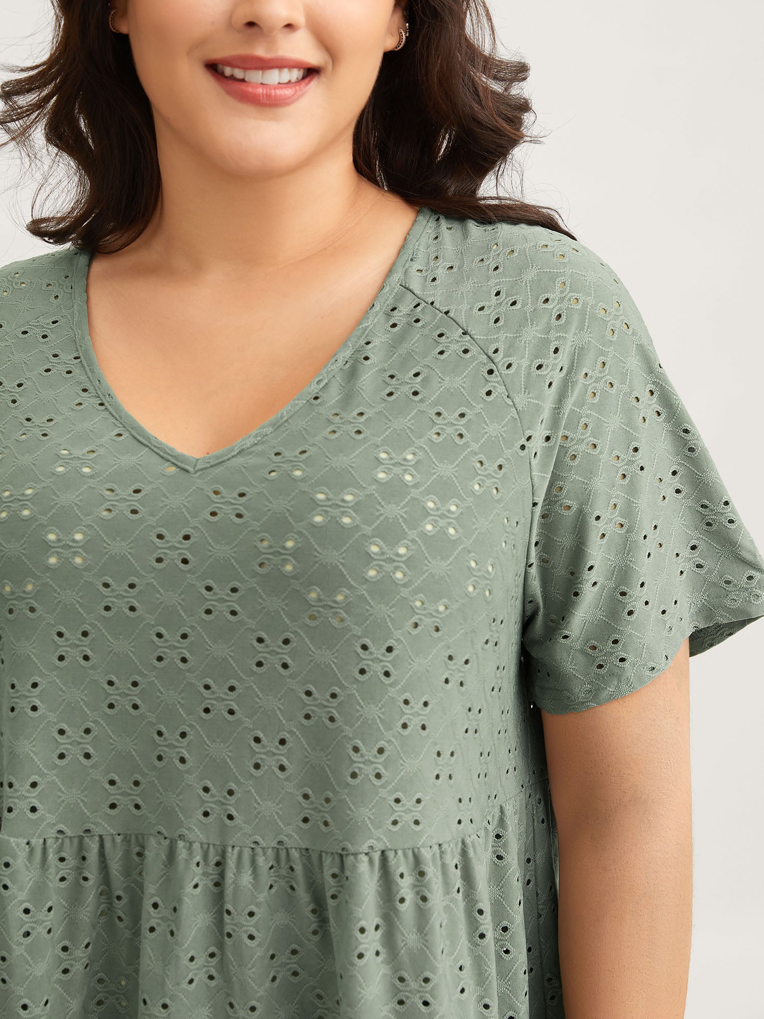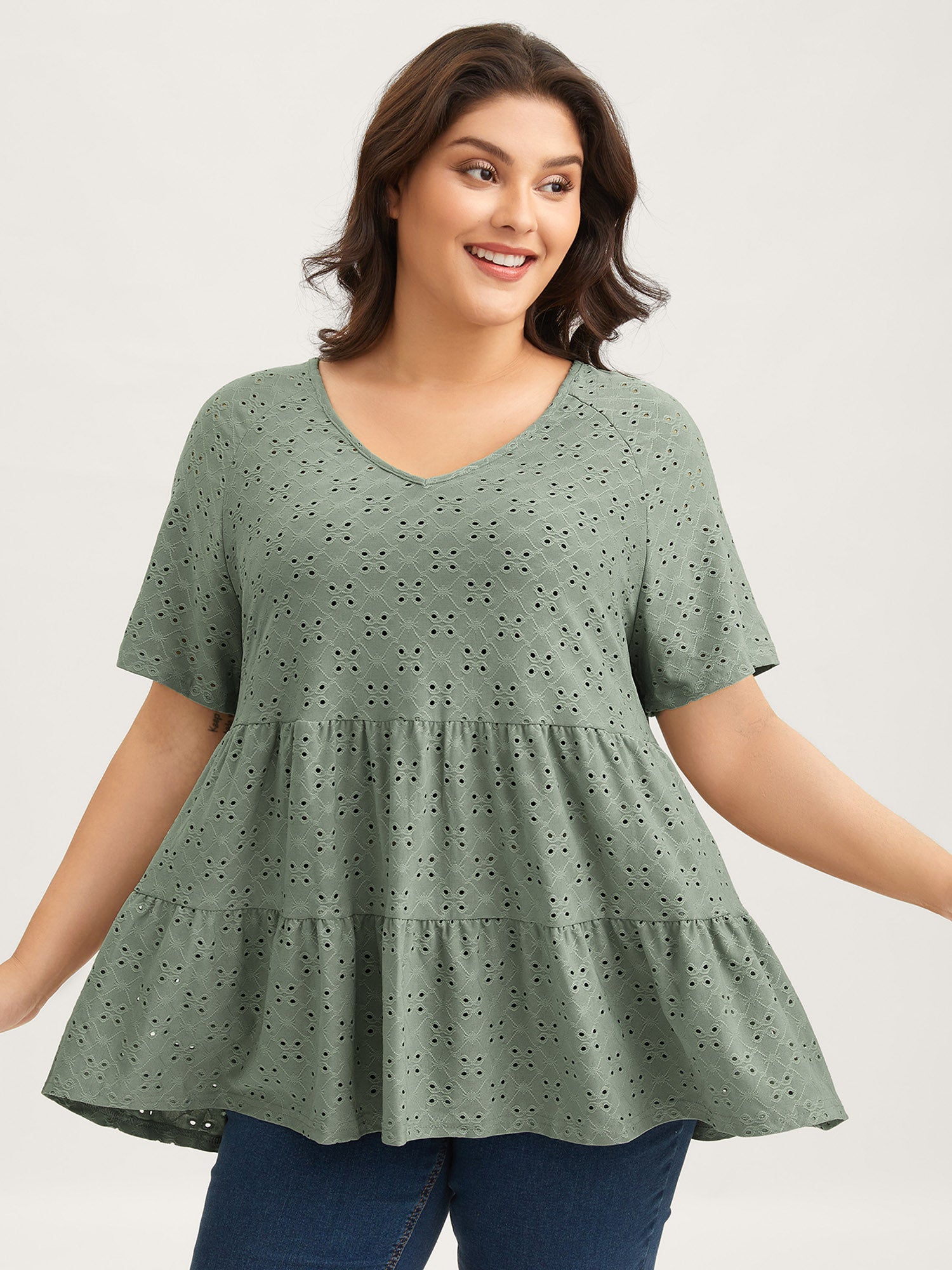 Solid Broderie Anglaise Ruffle Layered Hem T-shirt