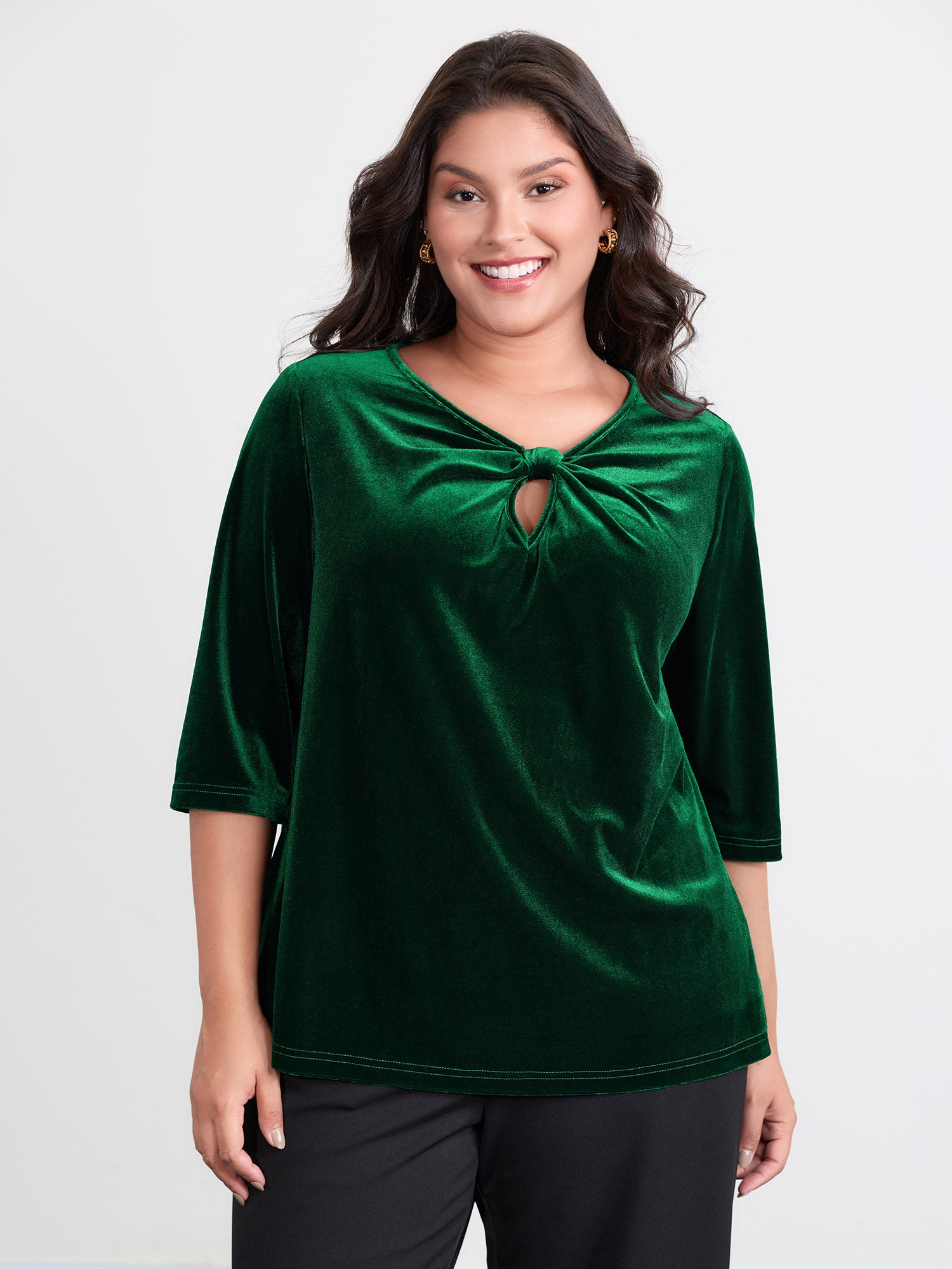 Velvet Twist Neckline Cut-Out Blouse
