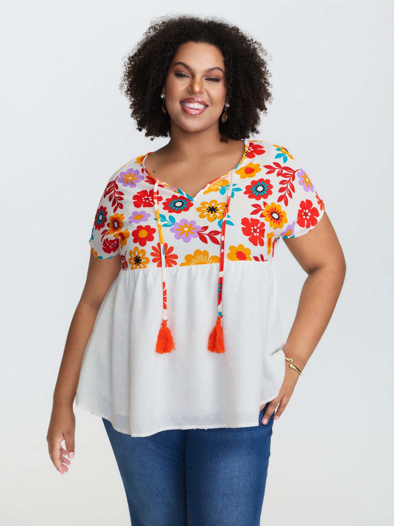 Floral Print Neck-Tie Babydoll Top