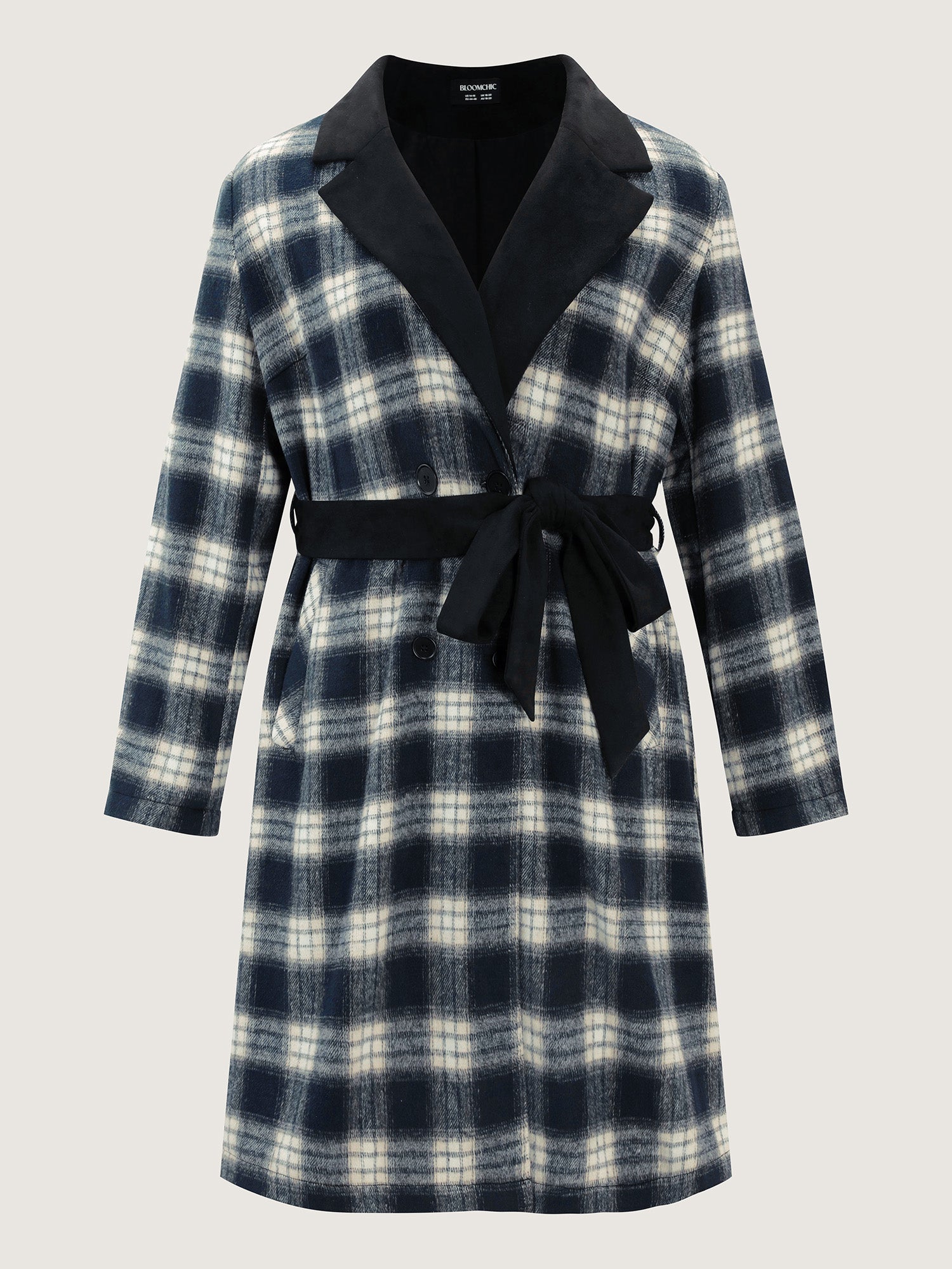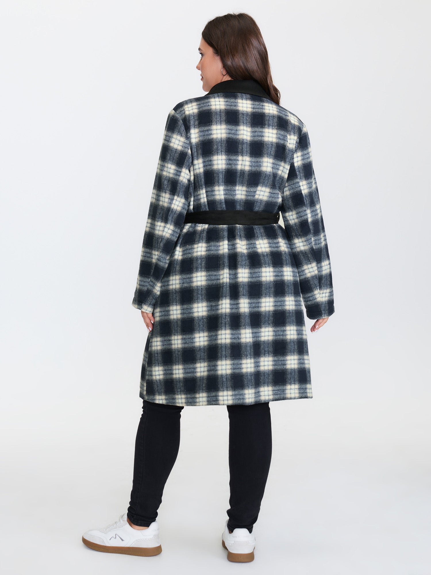 Shop Checkered Belted Color Contrast Coat now and redefine your style with confidence at BloomChic. Tailored for mid and plus-size women. This trendy Outerwear Women, sizes 10-30. Color:Black;Style:Leisure;Prints:Plaid;Details:Contrast, Belted, Button;Pocket:Single-flap pocket;Belt:Belt;Closure Type:Button;Lining:Lining