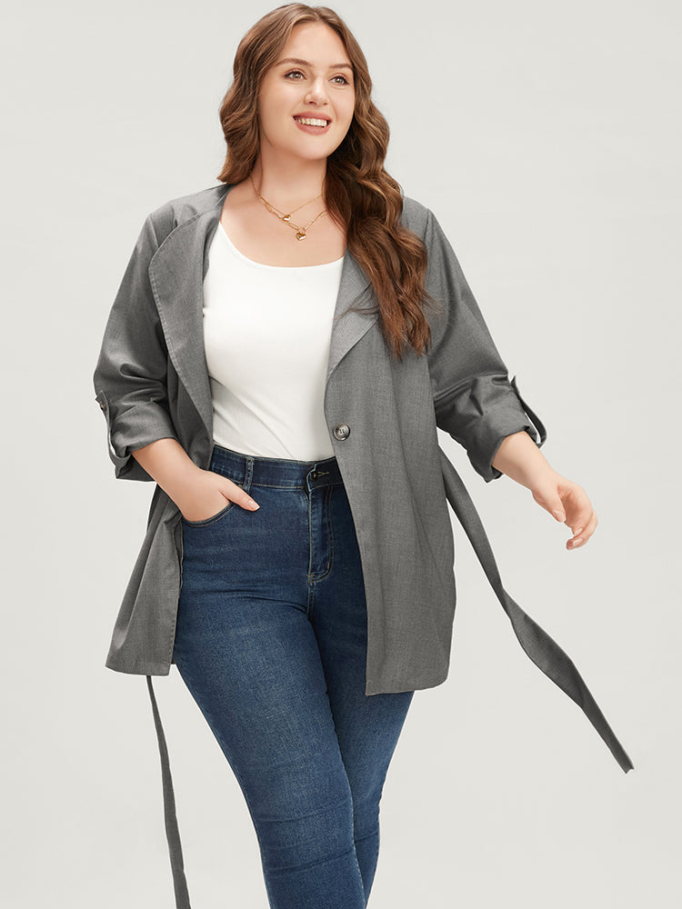 Shop Plain Lapel Collar Pocket Roll Sleeve Belted Coat now and redefine your style with confidence at BloomChic. Tailored for mid and plus-size women. This trendy Outerwear Women, sizes 10-30. Season:Spring;Color:Gray;Details:Pocket;Pocket:It is perfectly sized to carry a phone.;Belt:Belt;Lining:No-lining;Most Wearable in:59°F(15°C)-50°F(10°C)
