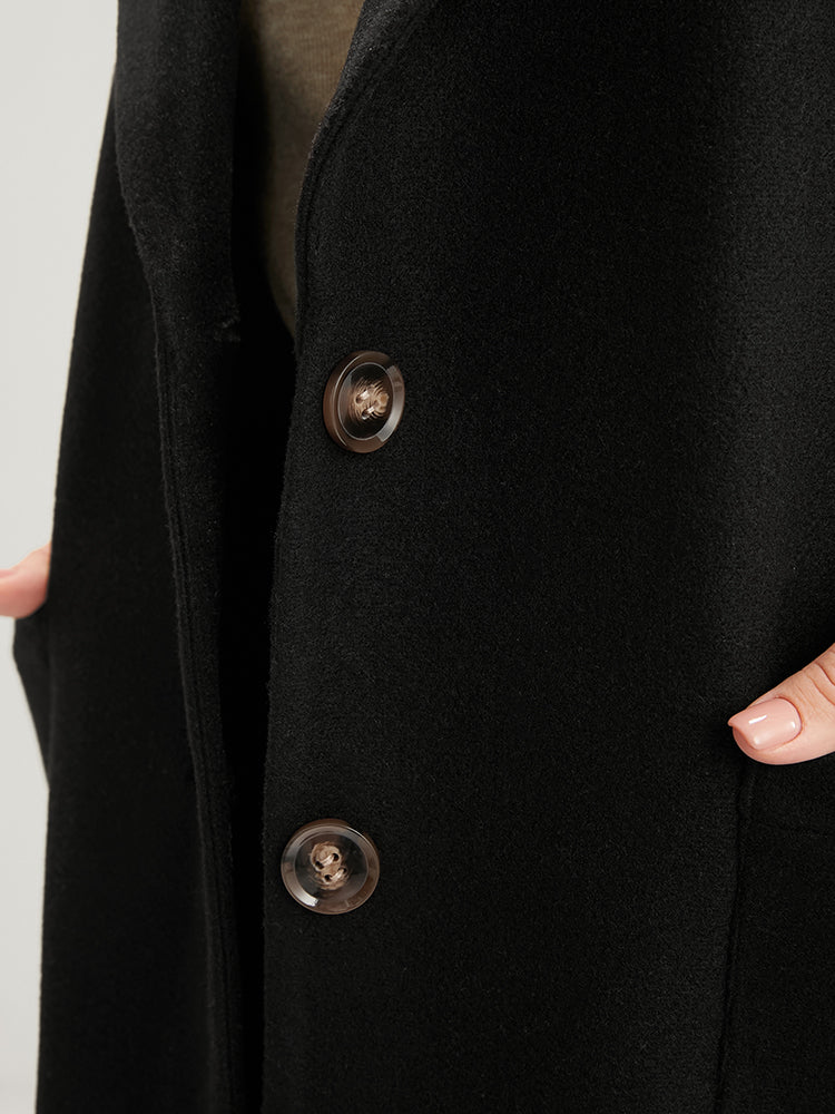 • Solid Suit Collar Pocket Belted Sleeveless Coat
