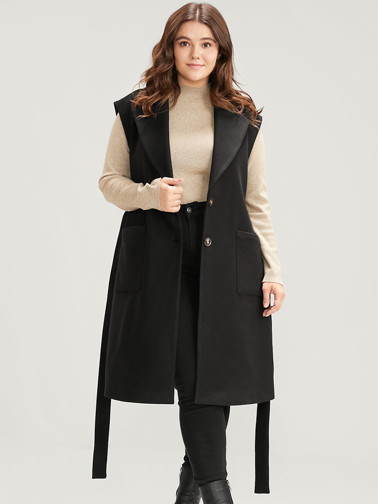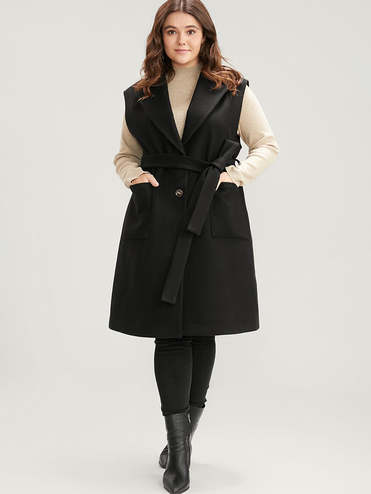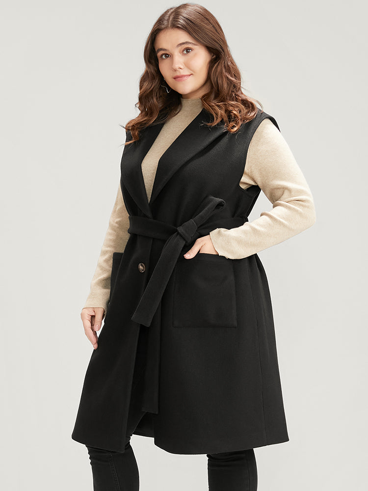 Shop Solid Suit Collar Pocket Belted Sleeveless Coat now and redefine your style with confidence at BloomChic. Tailored for mid and plus-size women. This trendy Outerwear Women, sizes 10-30. Season:Winter;Color:Black;Details:Pocket, Cross straps;Pocket:It is perfectly sized to carry a phone.;Belt:Belt;Lining:Lining