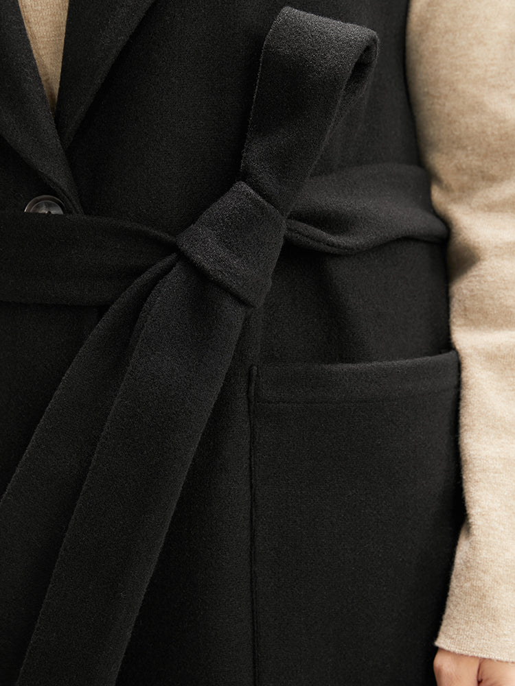 Solid Suit Collar Pocket Belted Sleeveless Coat