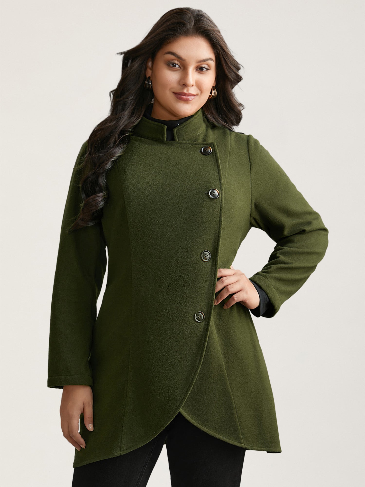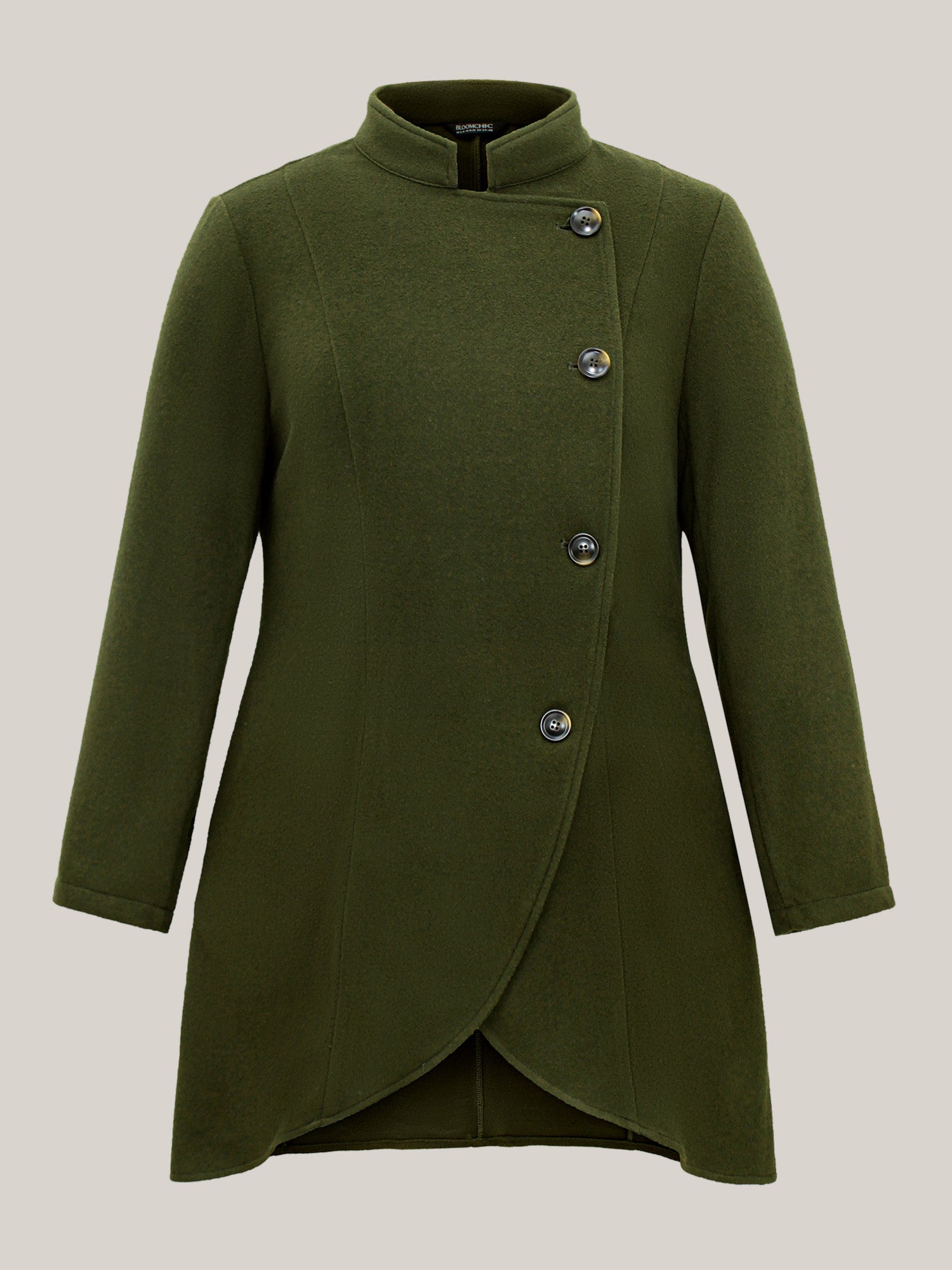 Shop Solid Wrap Button Up Asymmetrical Hem Coat now and redefine your style with confidence at BloomChic. Tailored for mid and plus-size women. This trendy Outerwear Women, sizes 10-30. Color:Black;Style:Elegant Everyday;Prints:Non;Details:Button, Asymmetrical;Pocket:No-pocket;Belt:No-belt;Closure Type:Non;Lining:No-lining